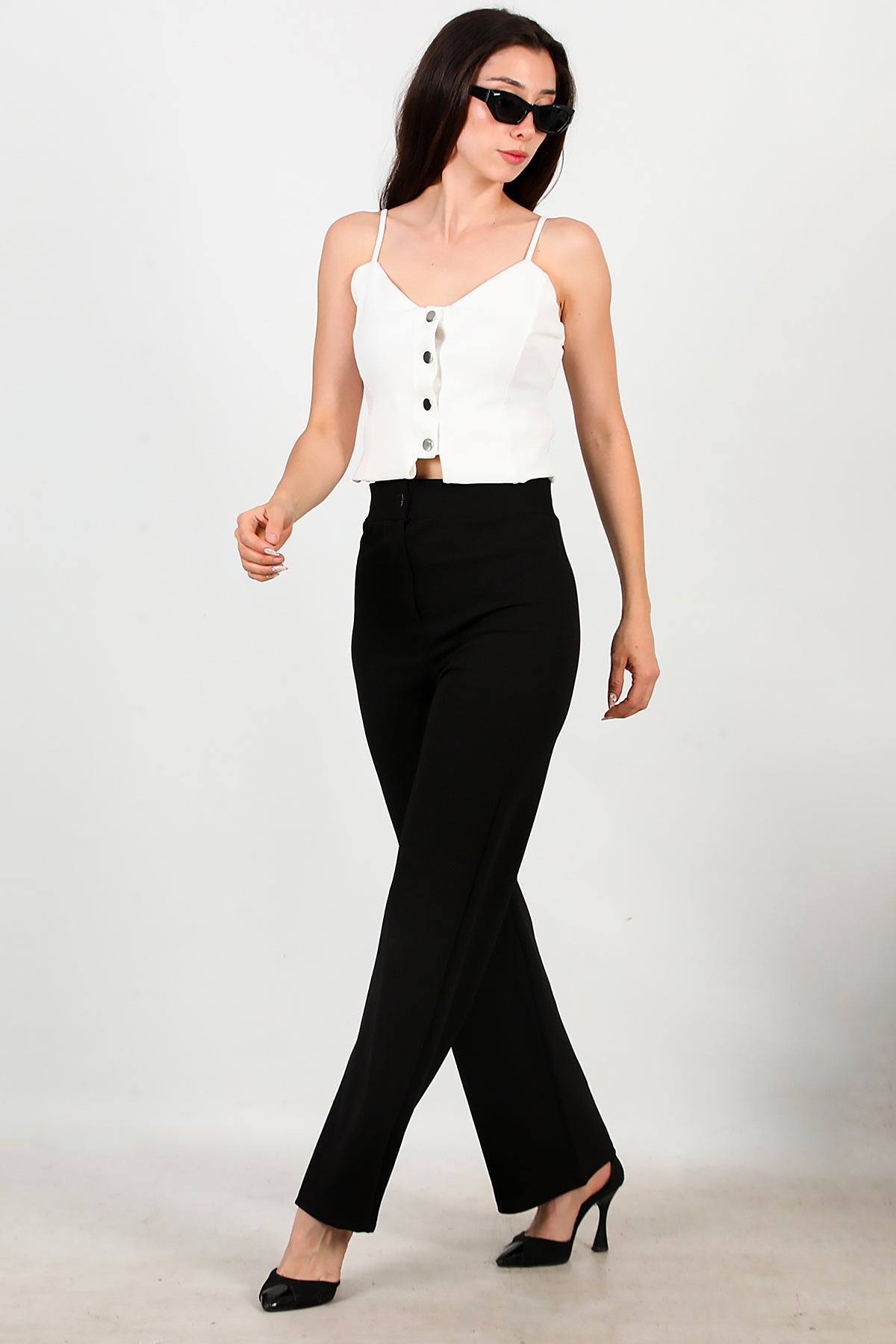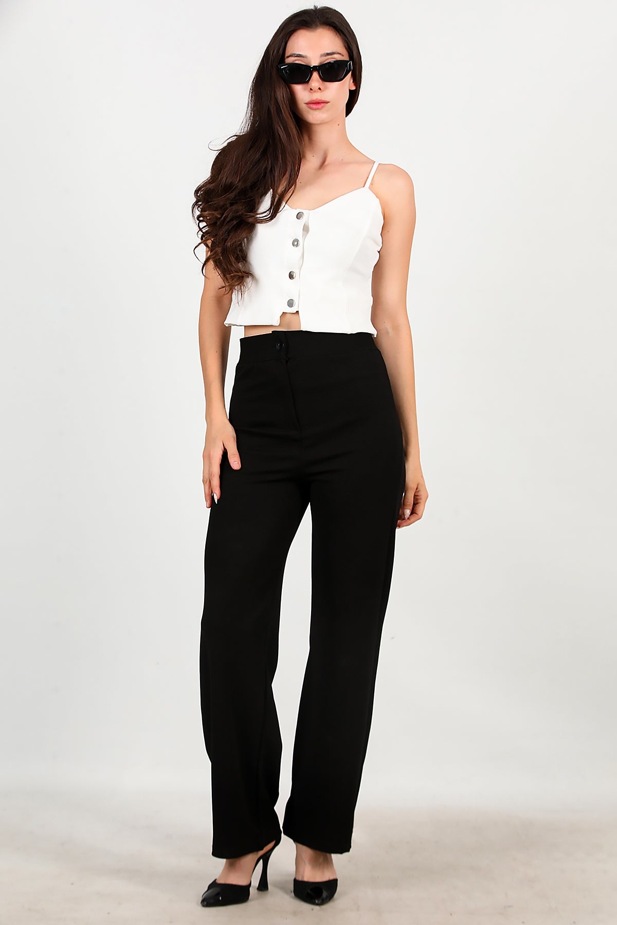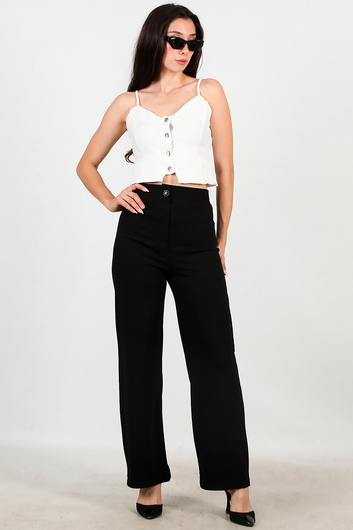 Kadın Palazzo Krep Kumaş Pantolon Siyah Siyah