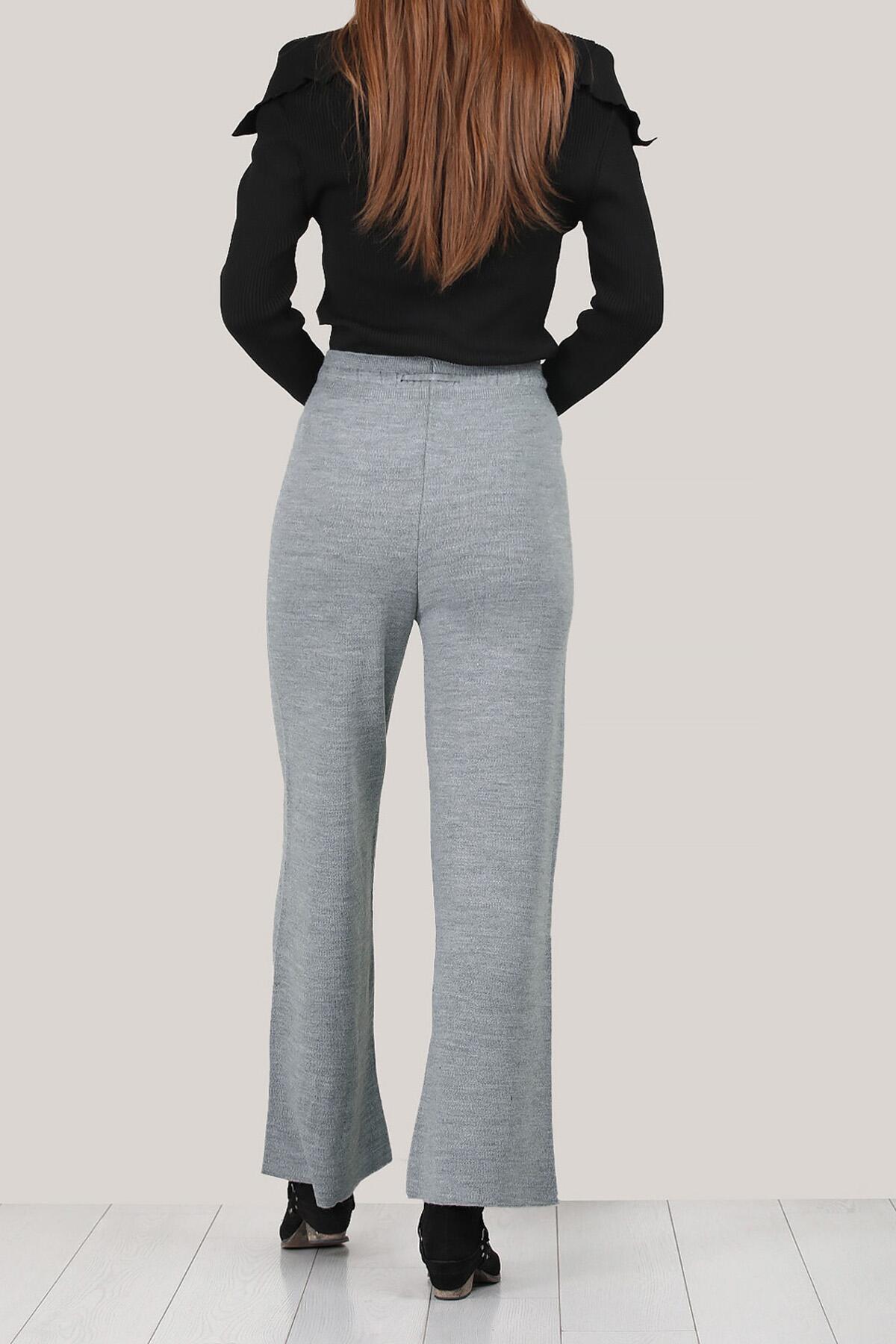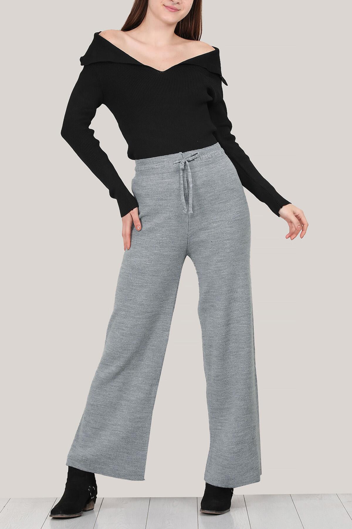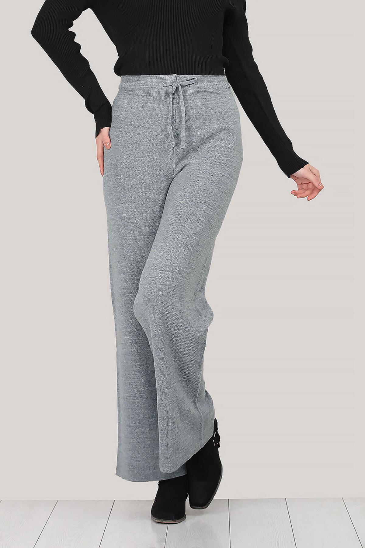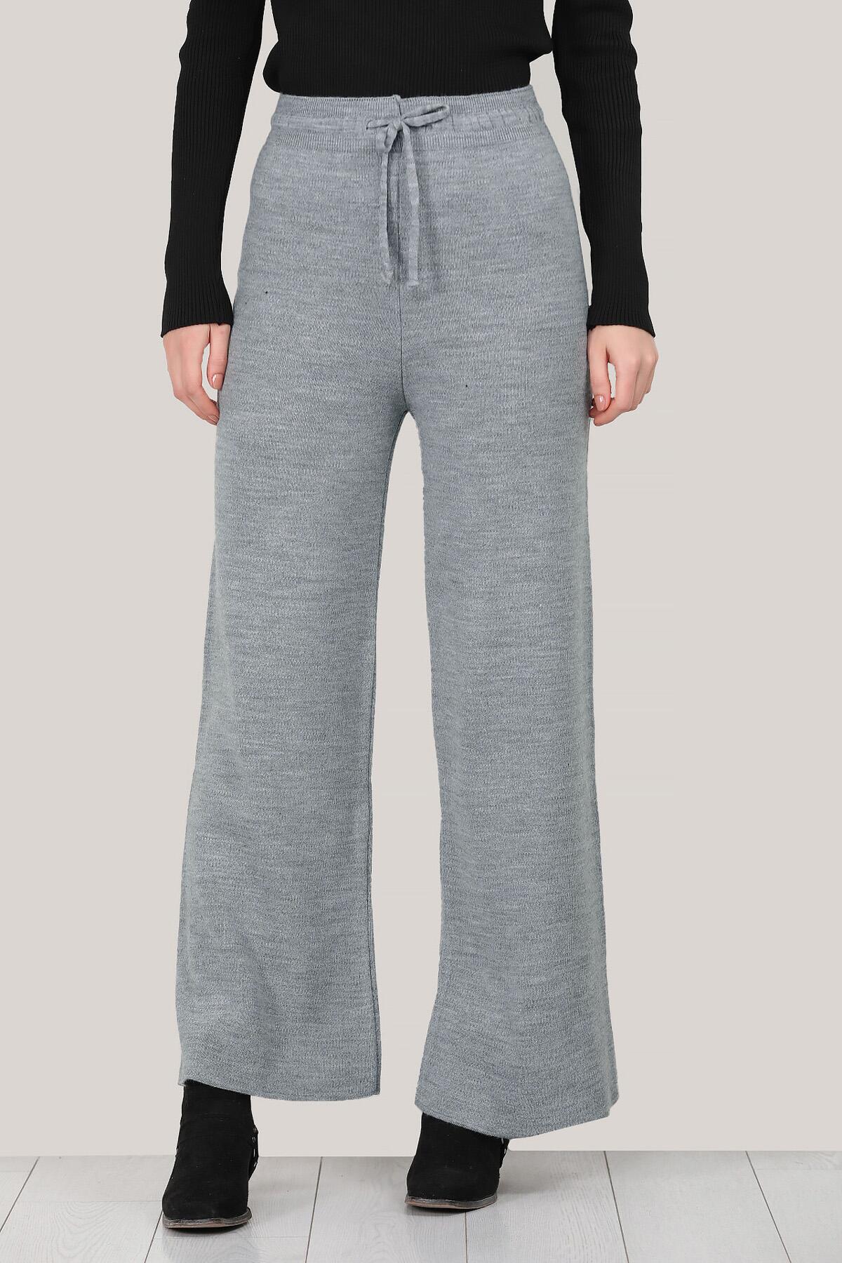 Kadın Triko Bol Paça Pantolon Gri