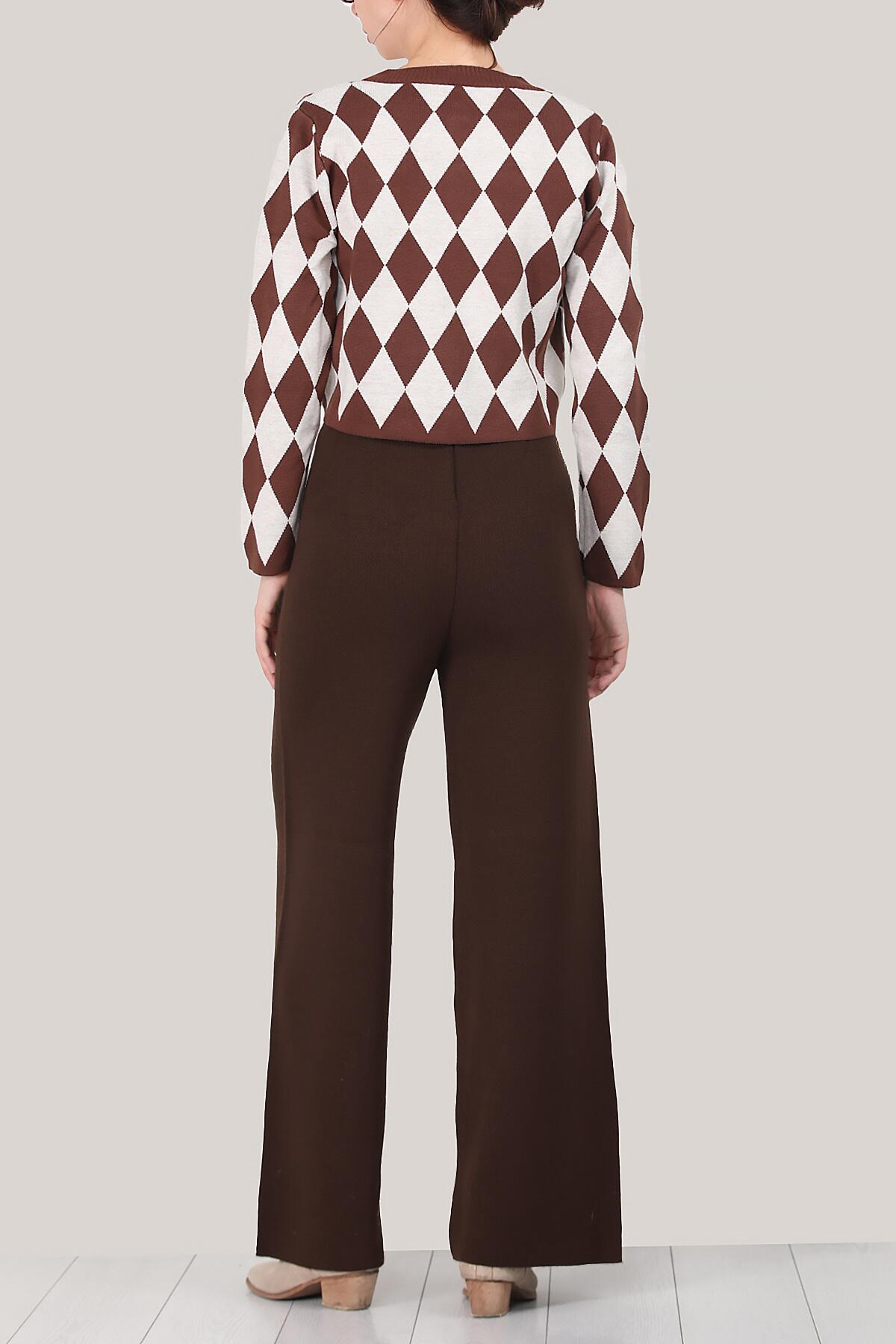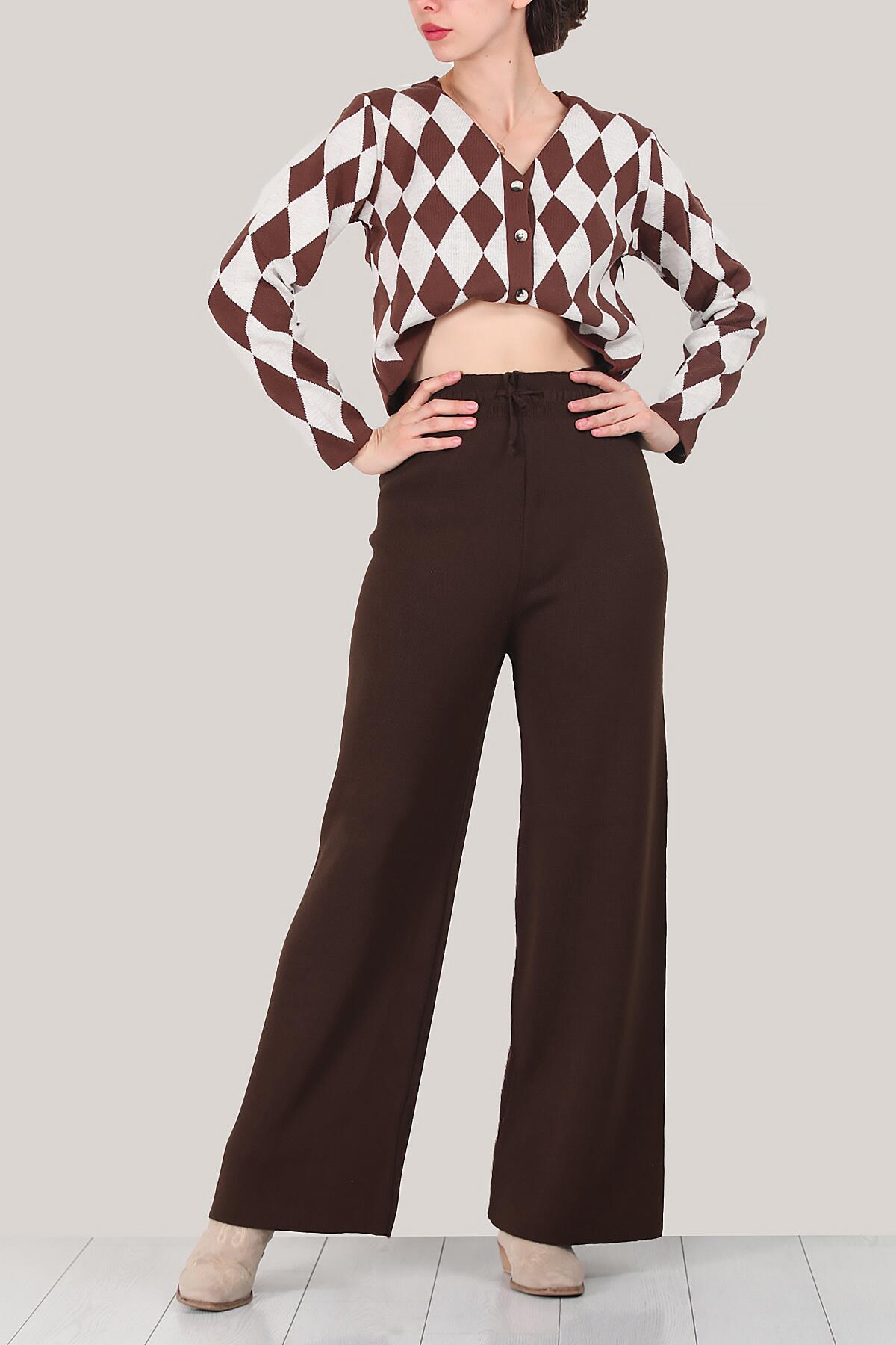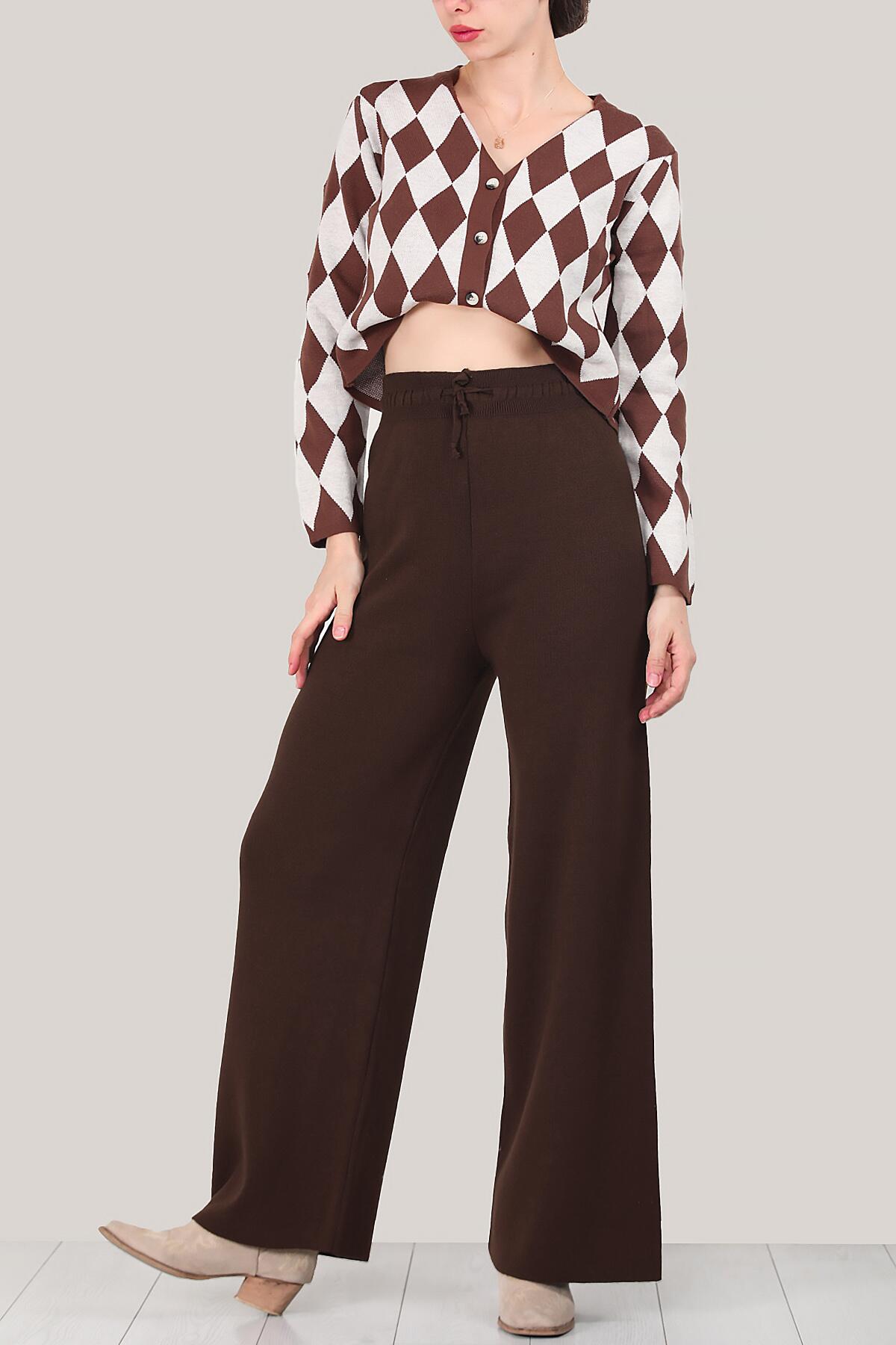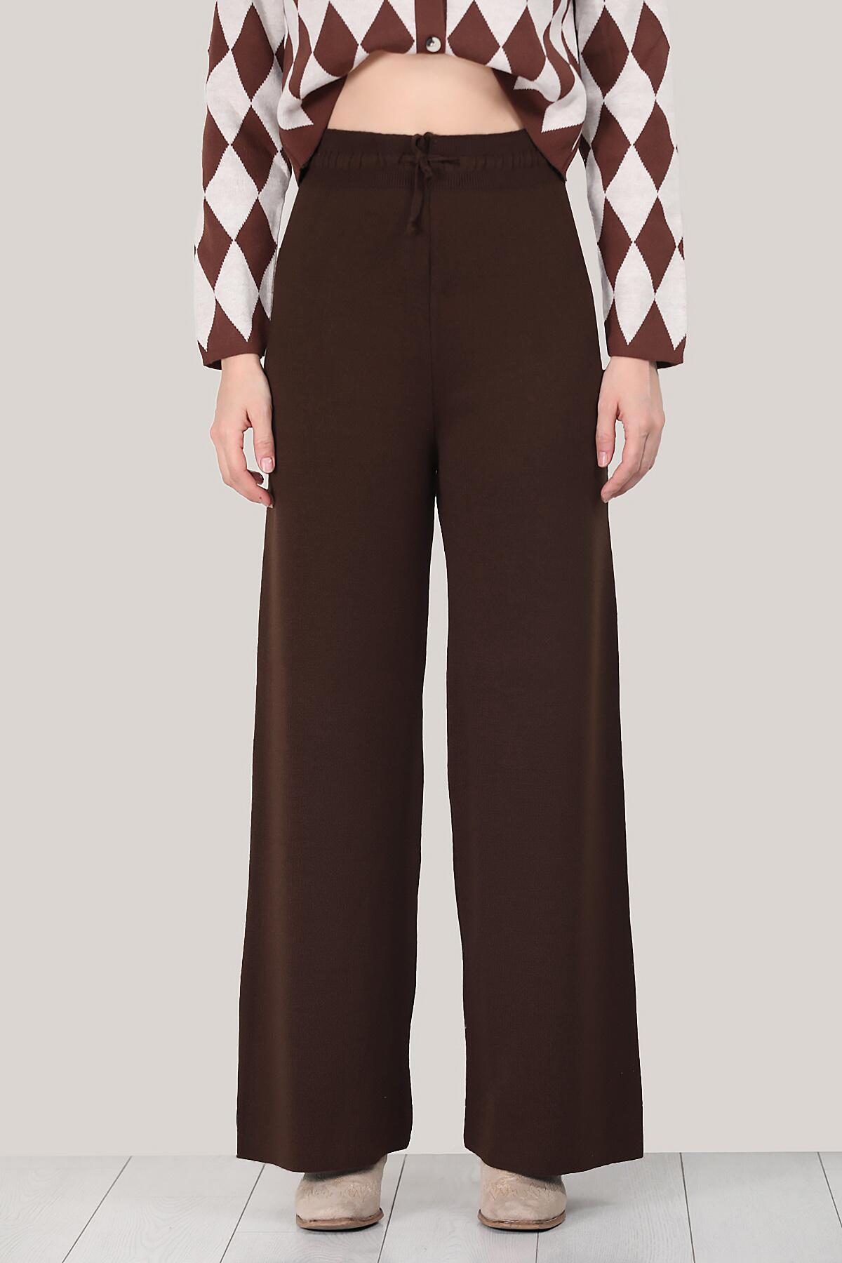 Kadın Triko Bol Paça Pantolon Kahverengi