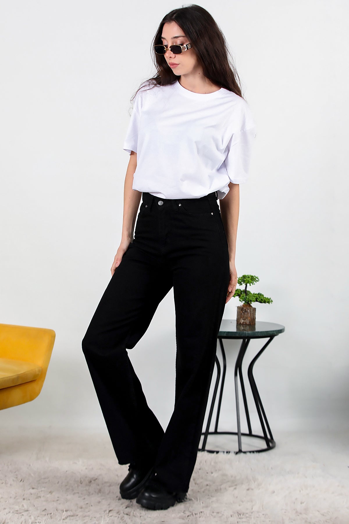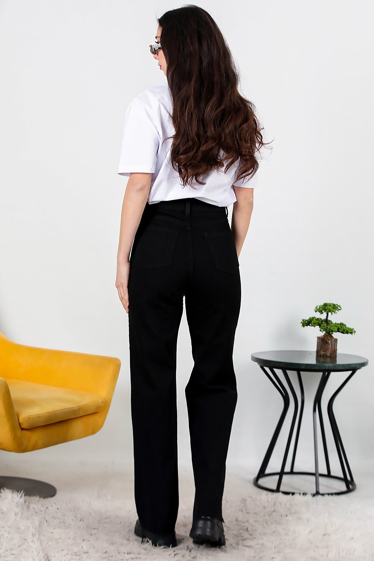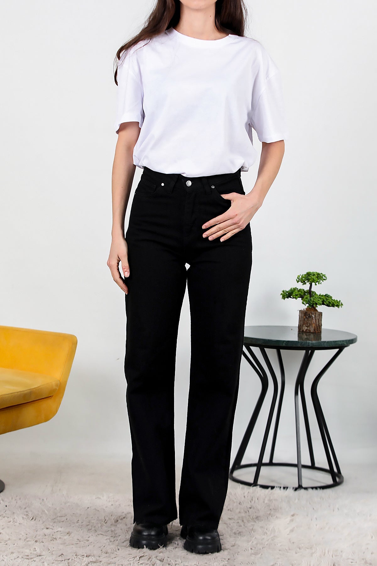 Kadın Yarım Palazza Kot Pantolon Siyah