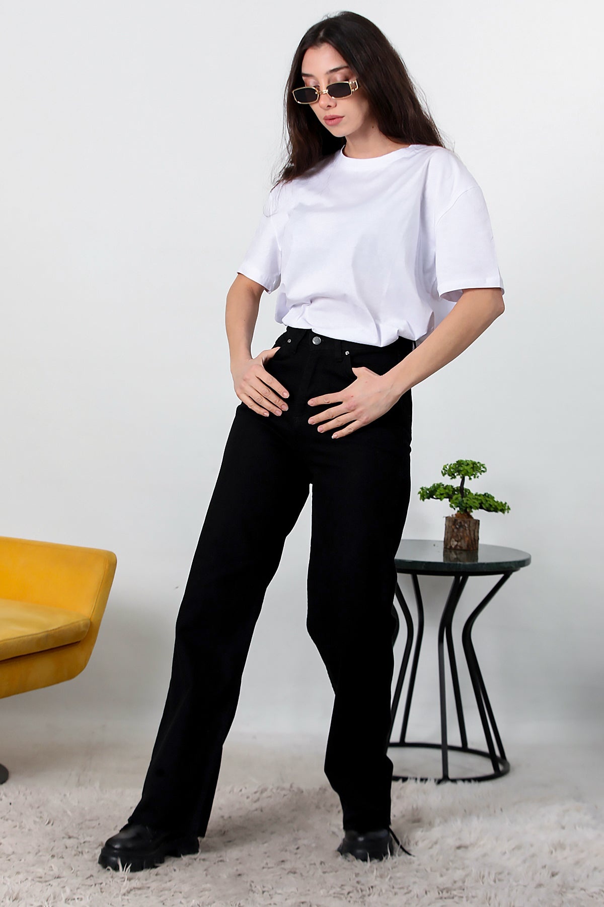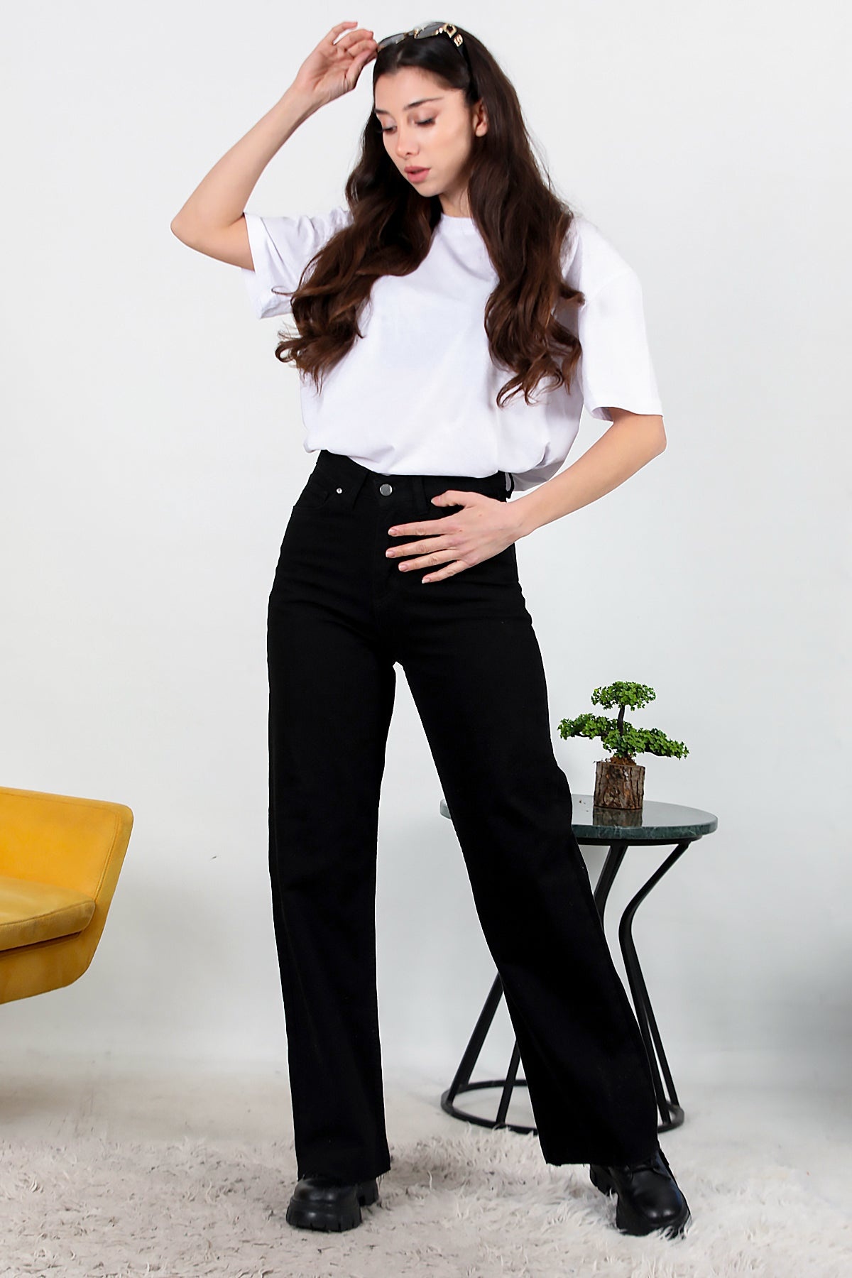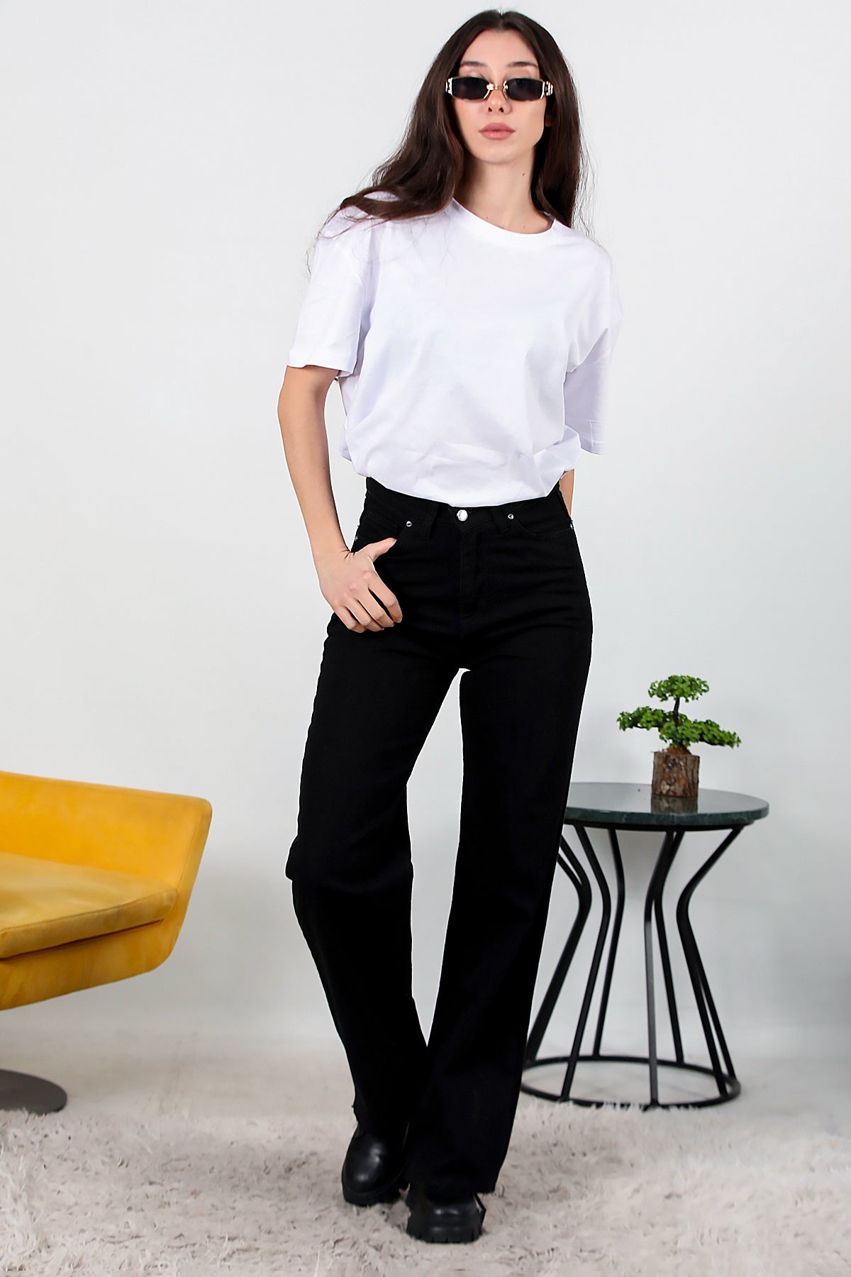 Kadın Yarım Palazza Kot Pantolon Siyah