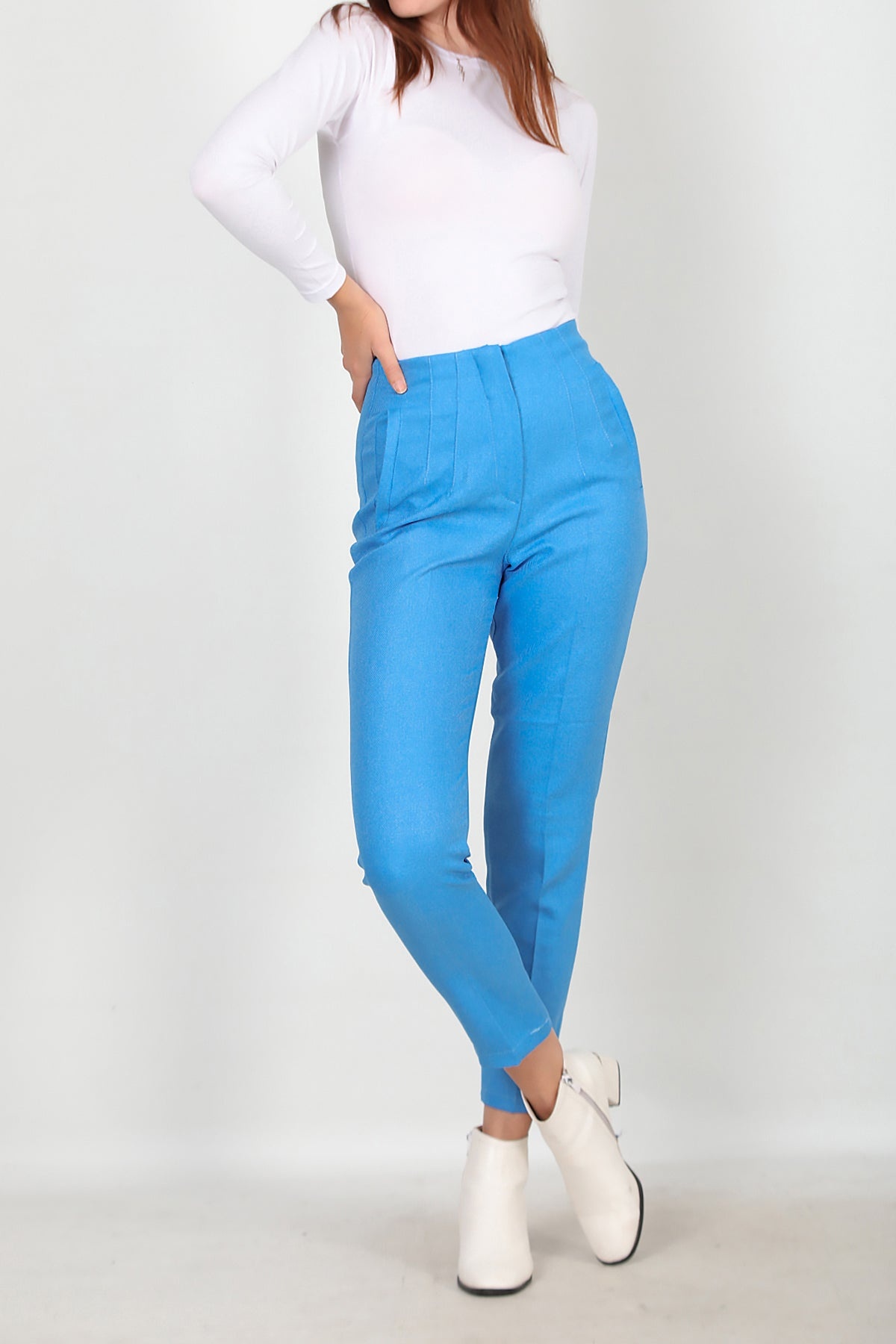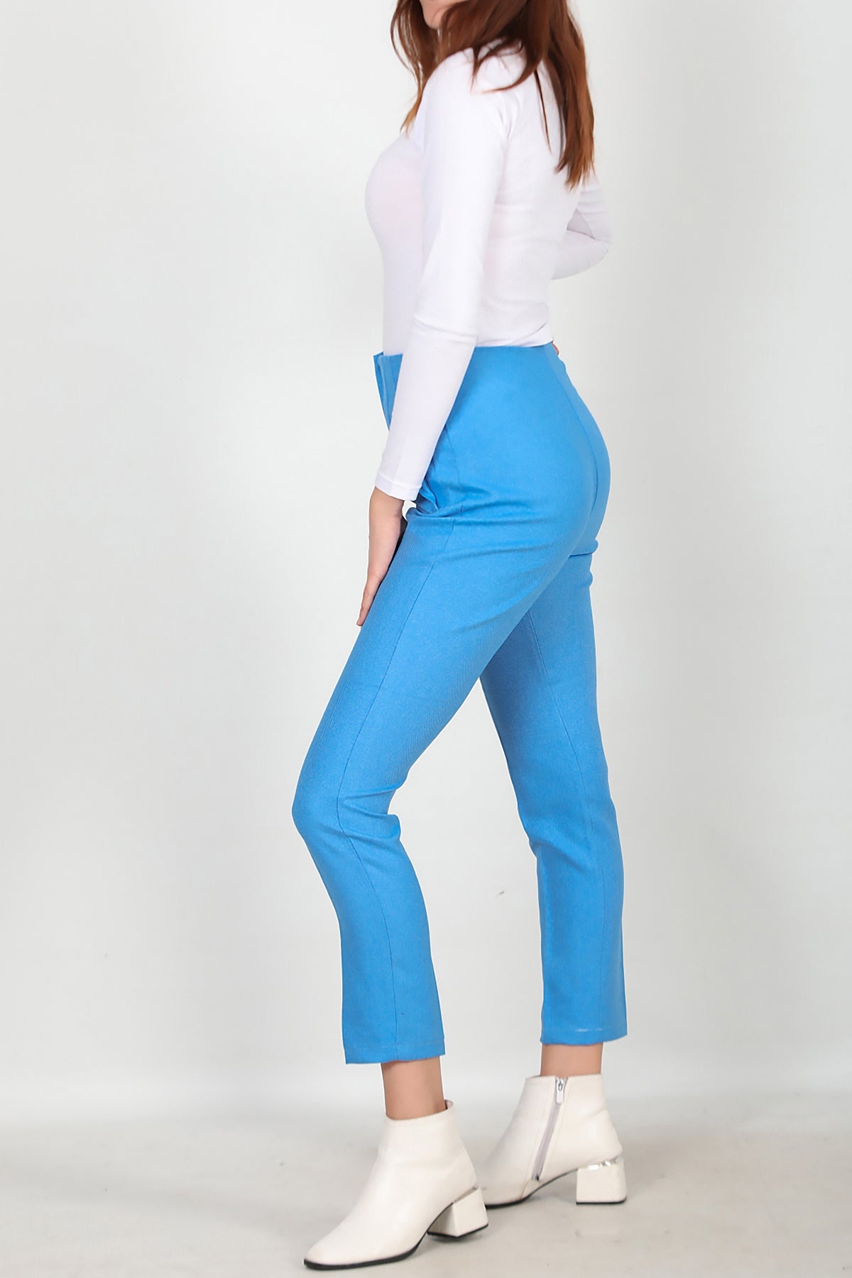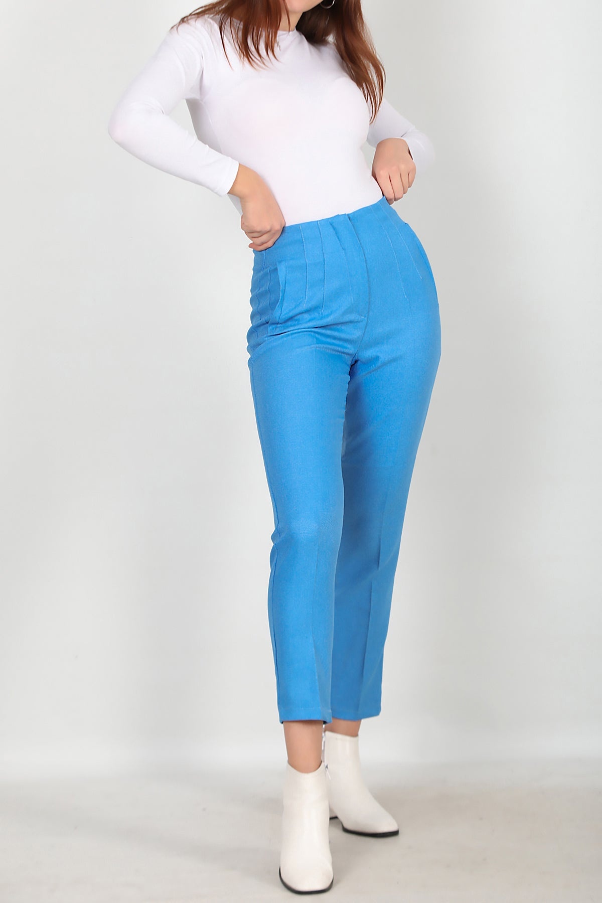 Kadın Yüksek Bel Bilek Boy Pantolon Mavi Mavi
