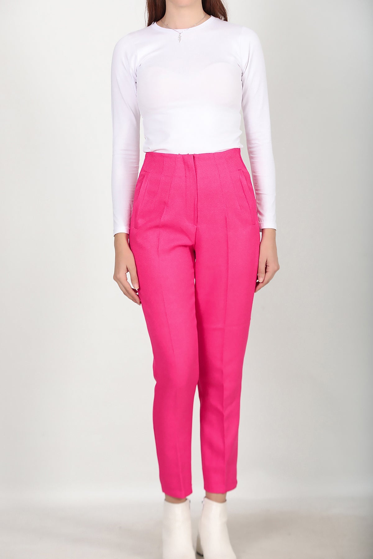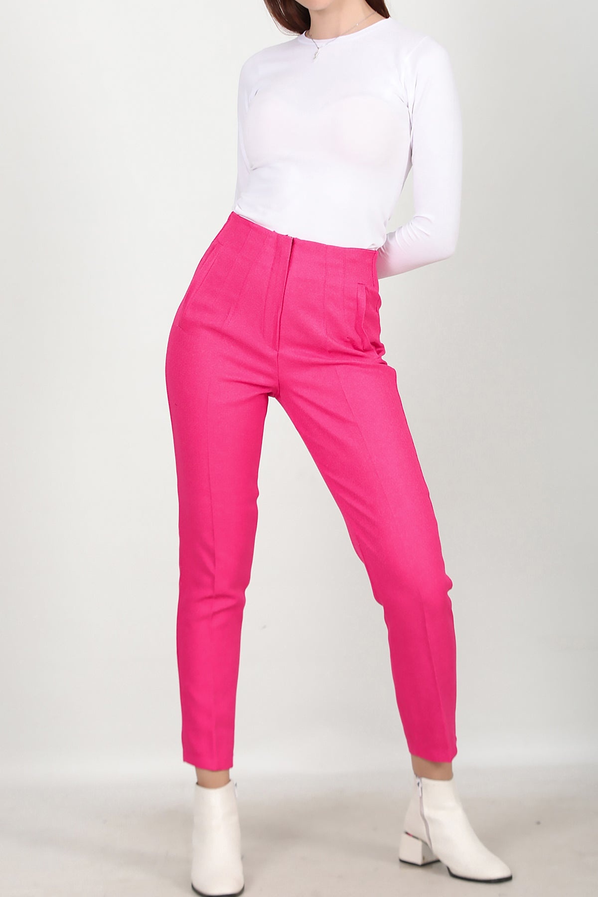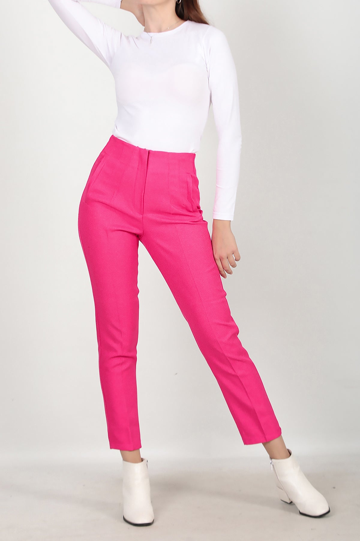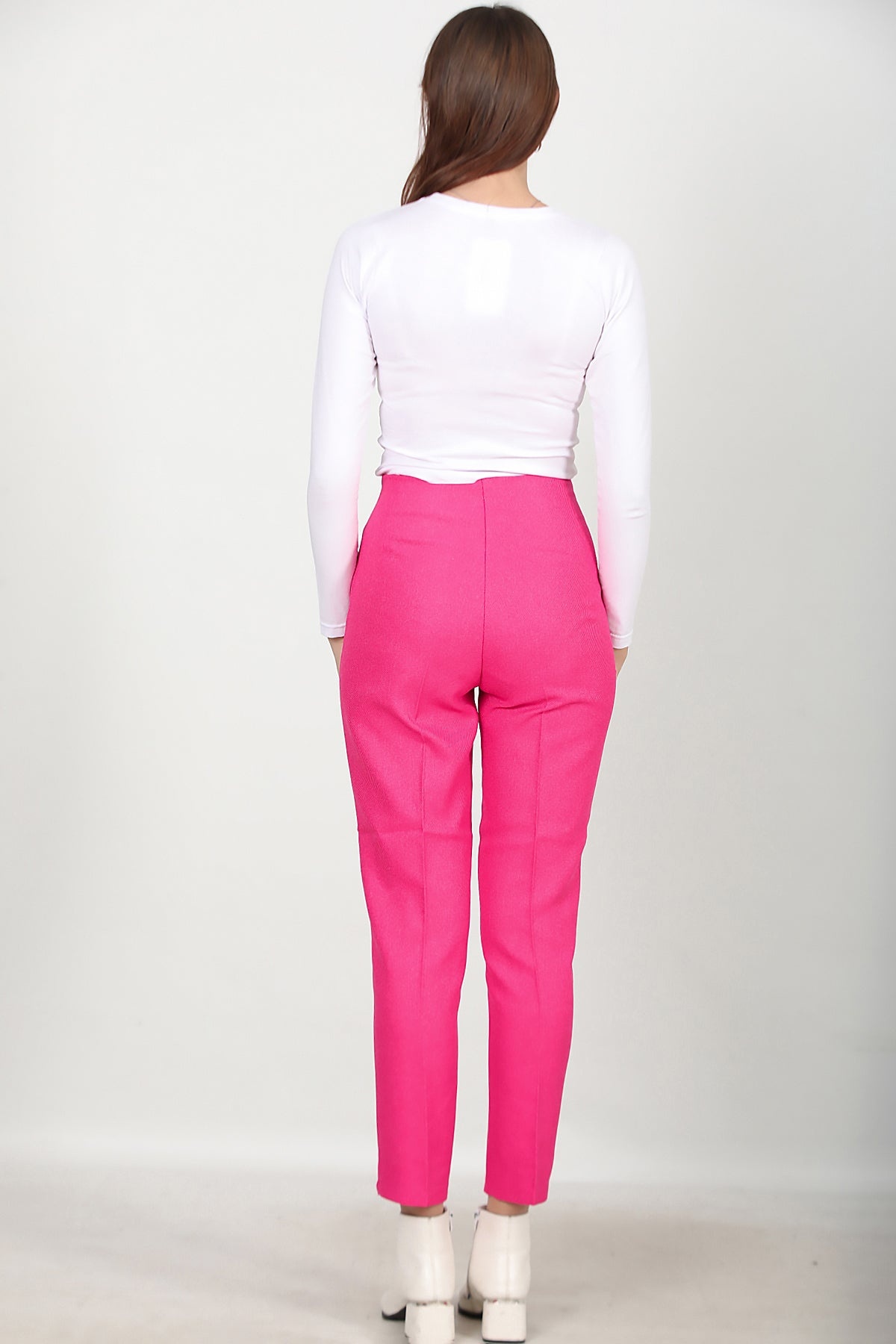 Kadın Yüksek Bel Bilek Boy Pantolon Pembe Pembe