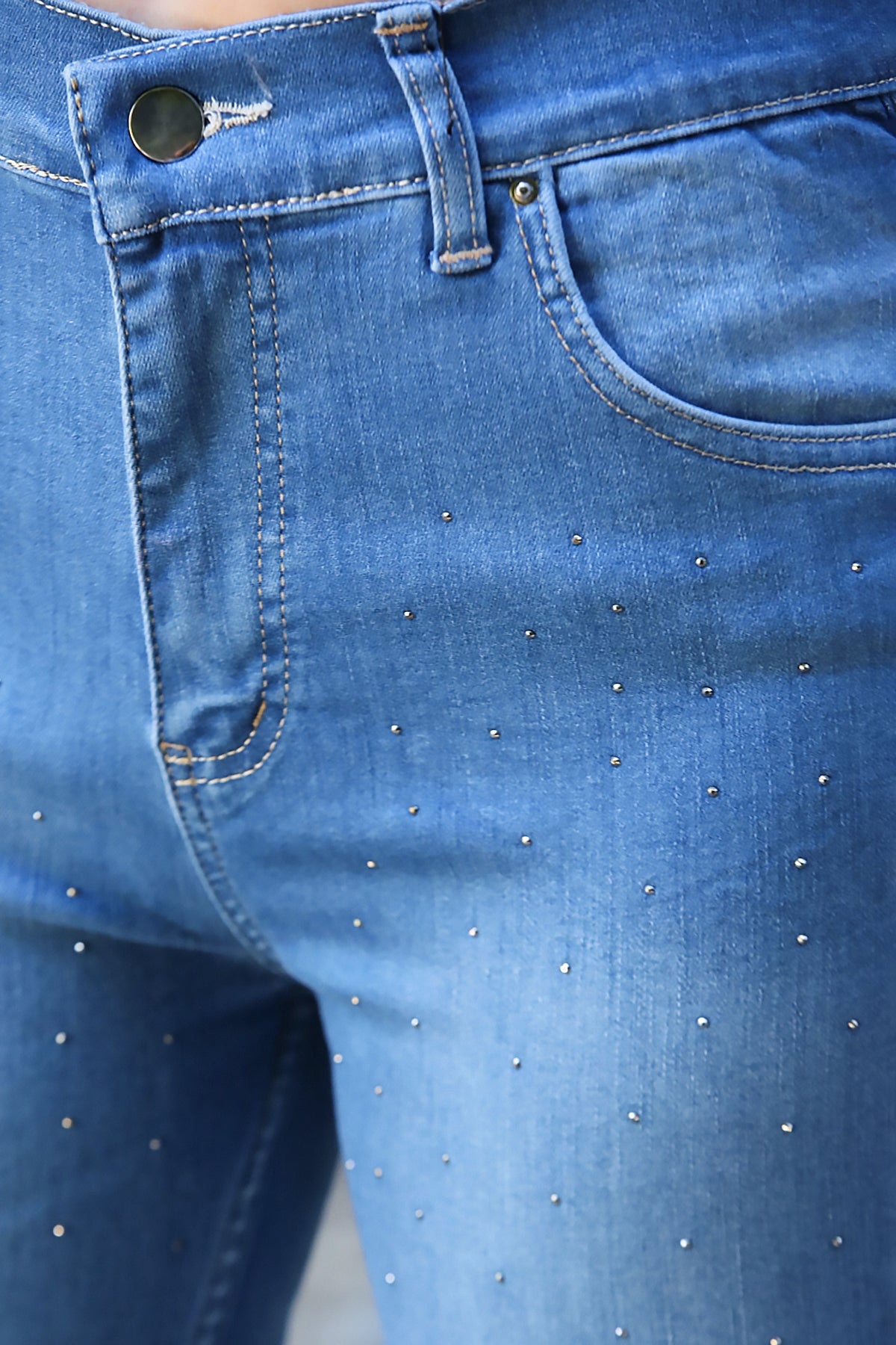 Kadın Yüksek Bel Taşlı Havuç Kot Pantolon Kot