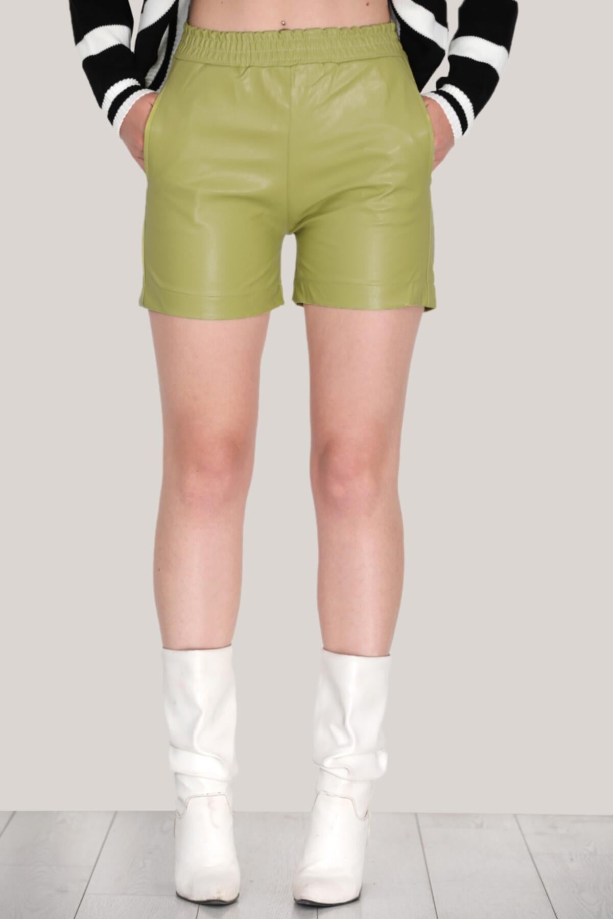 Kadın Deri Şort Yeşil