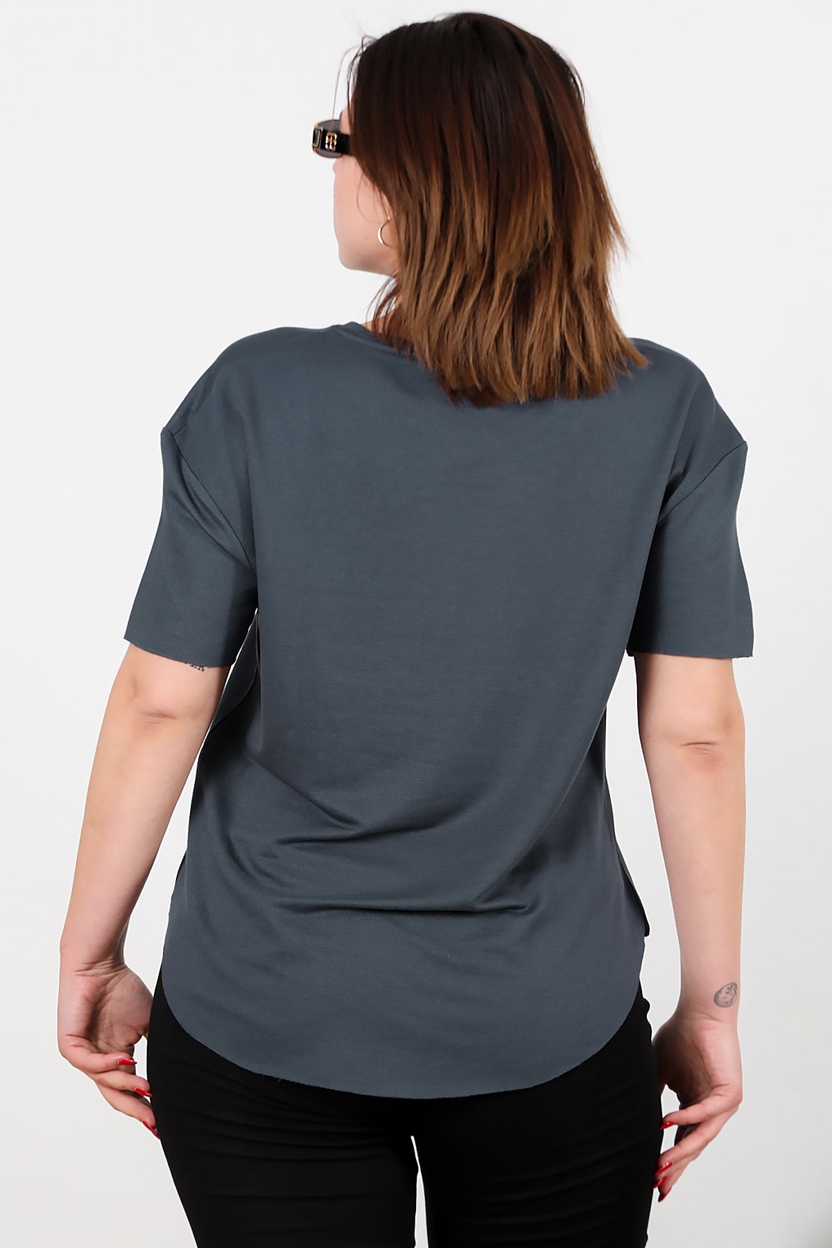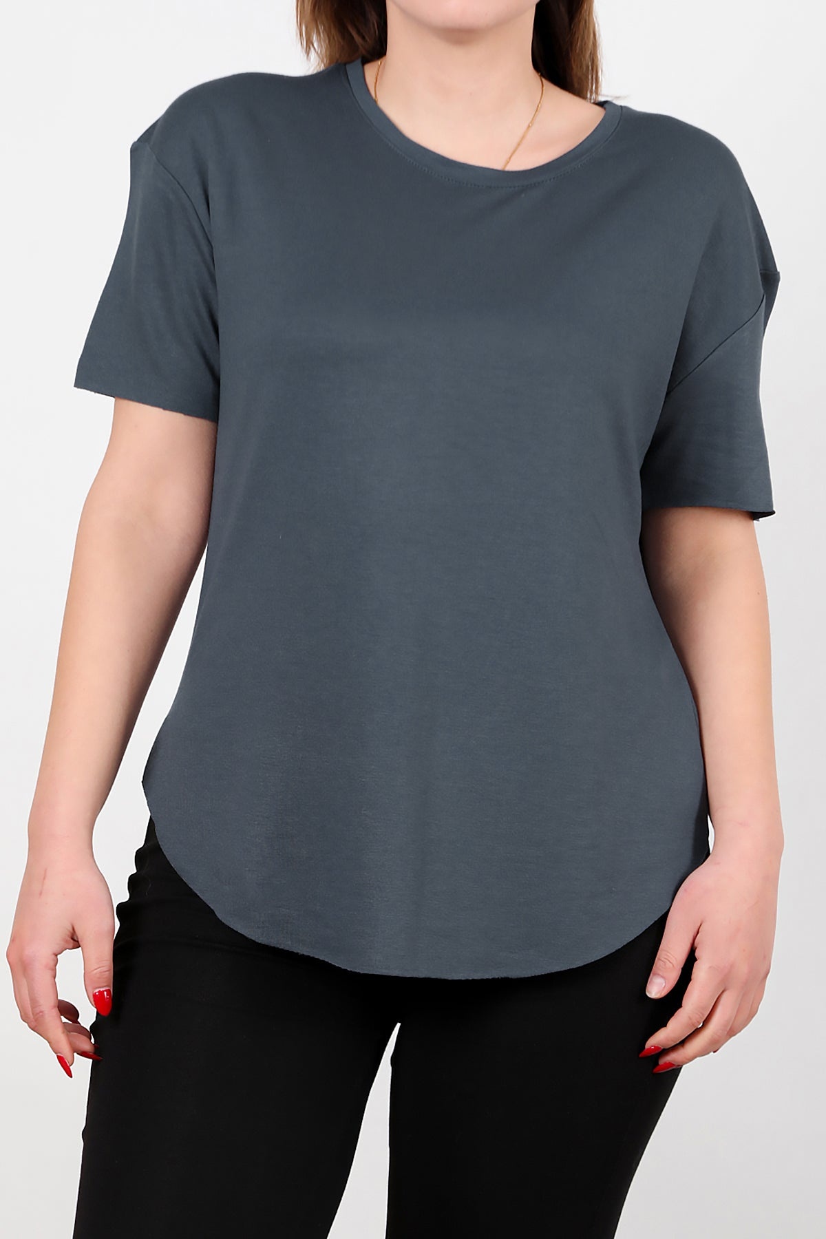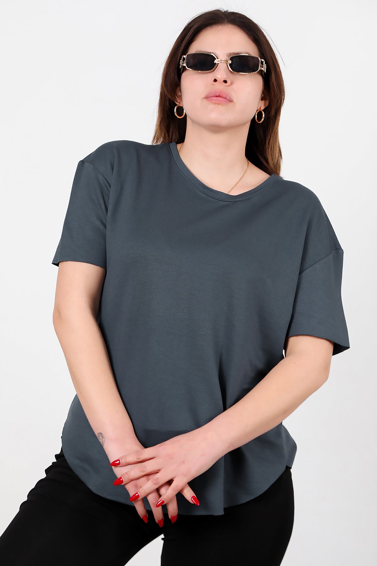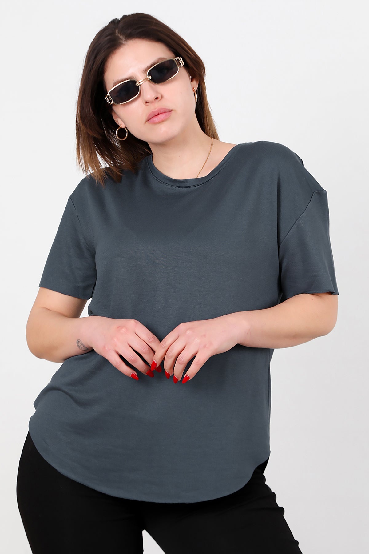Büyük Beden Eteği Oval Bisiklet Yaka Tshırt Füme