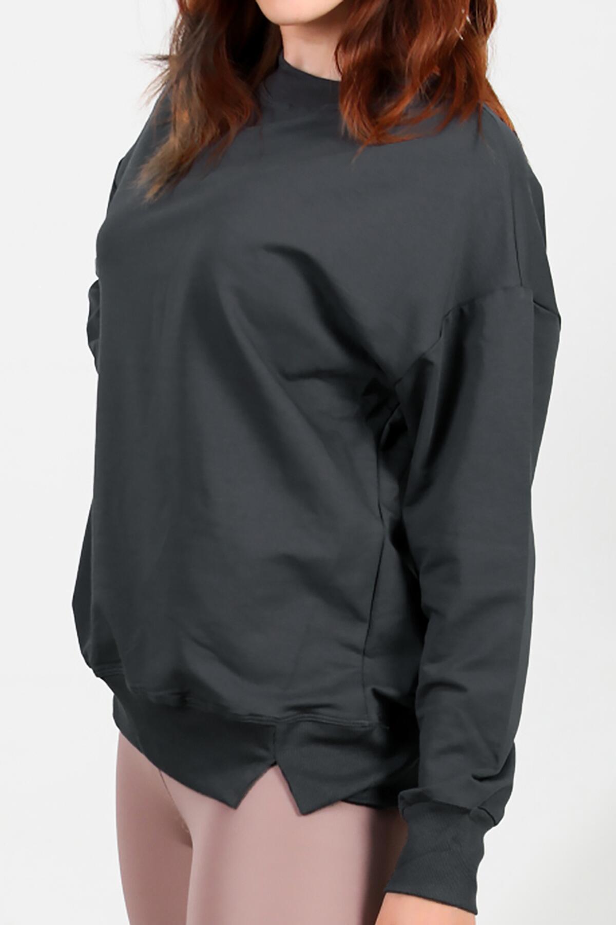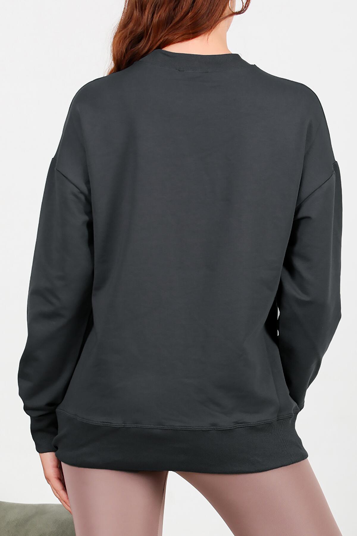 Kadın Üç İplik Kolu Çimalı Sıfır Yaka Sweat