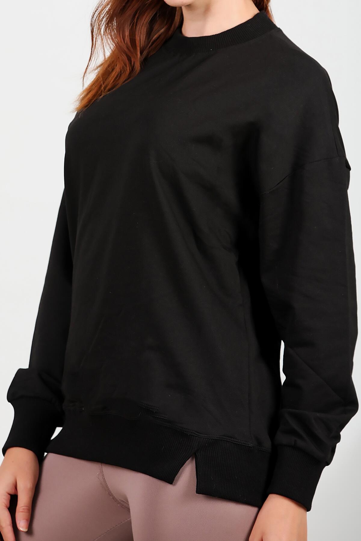 Kadın İki İplik Sıfır Yaka Sweat Siyah