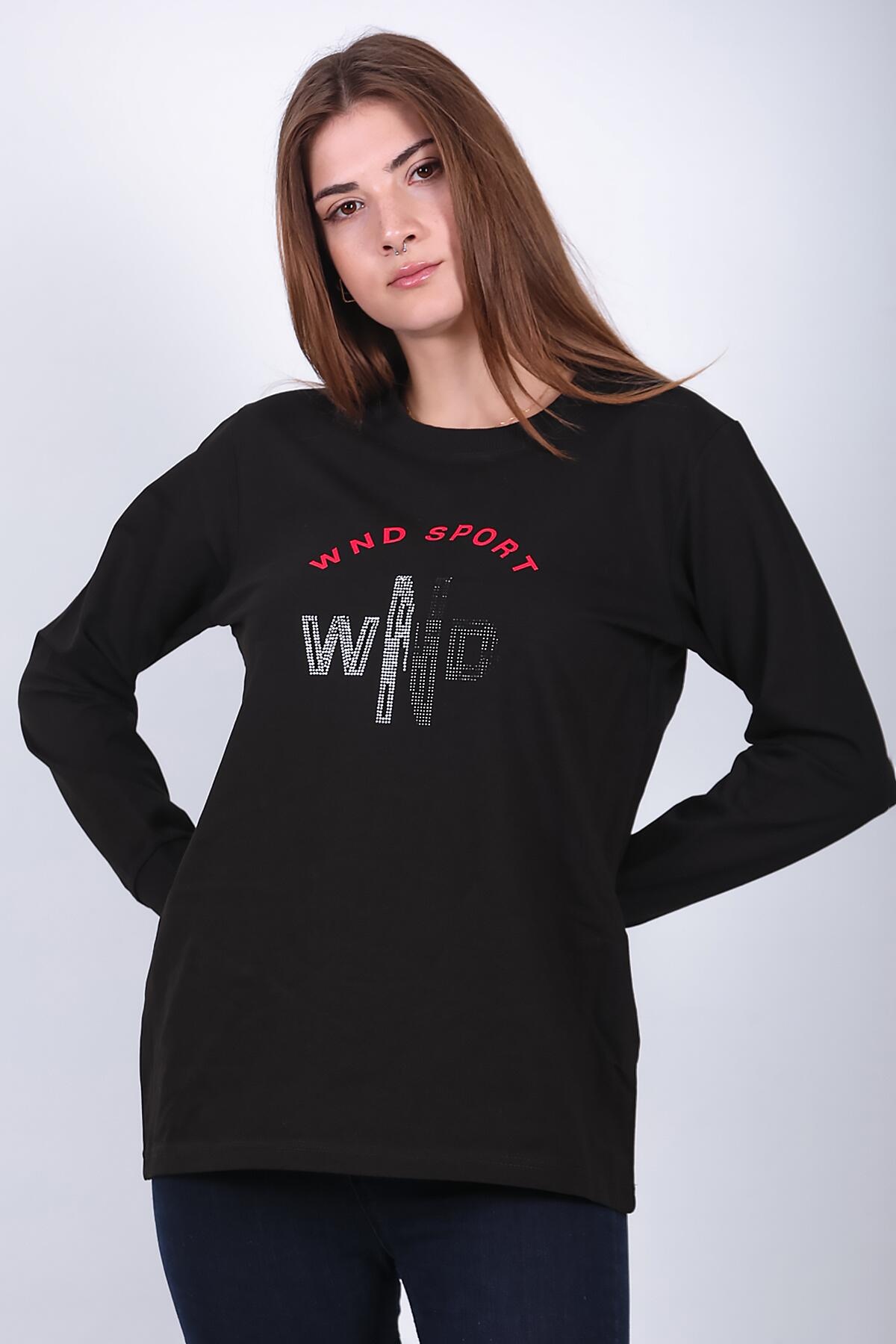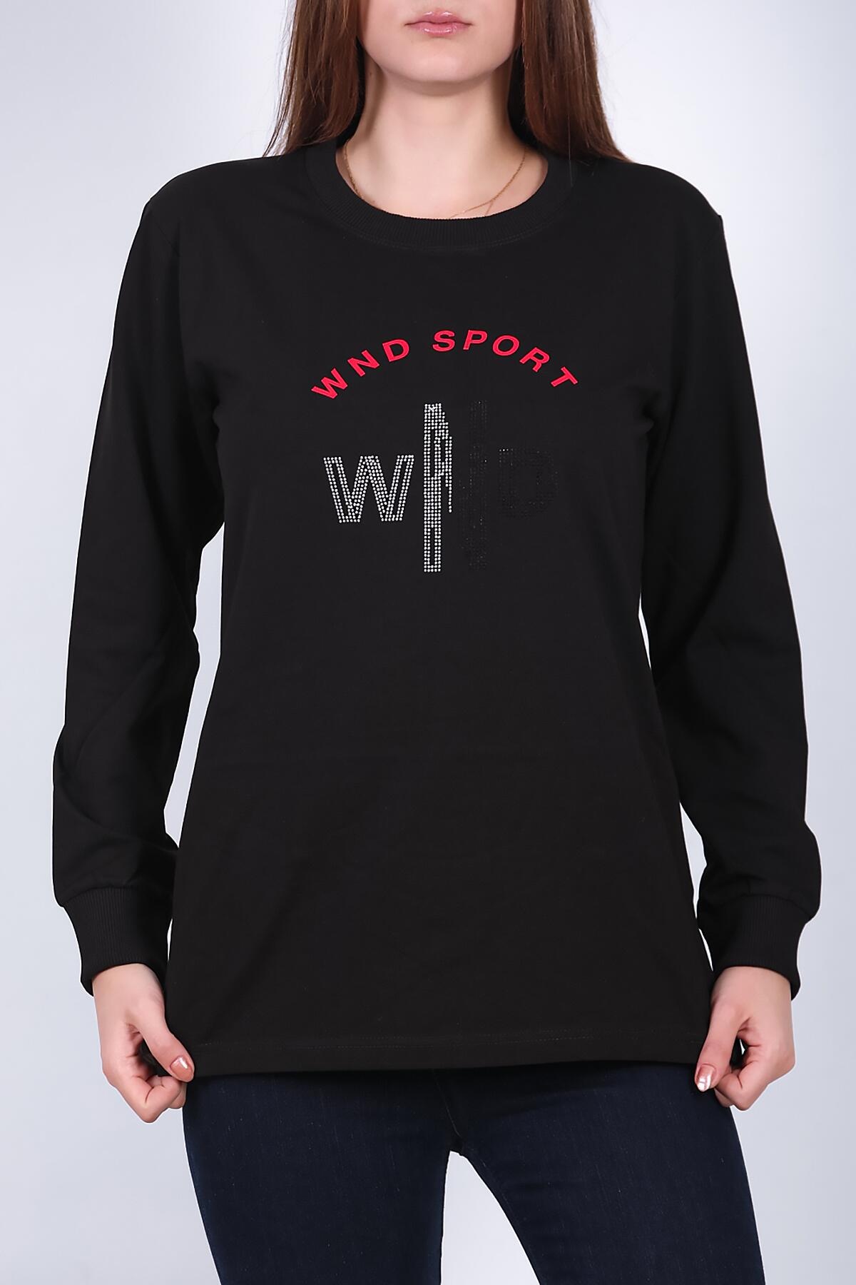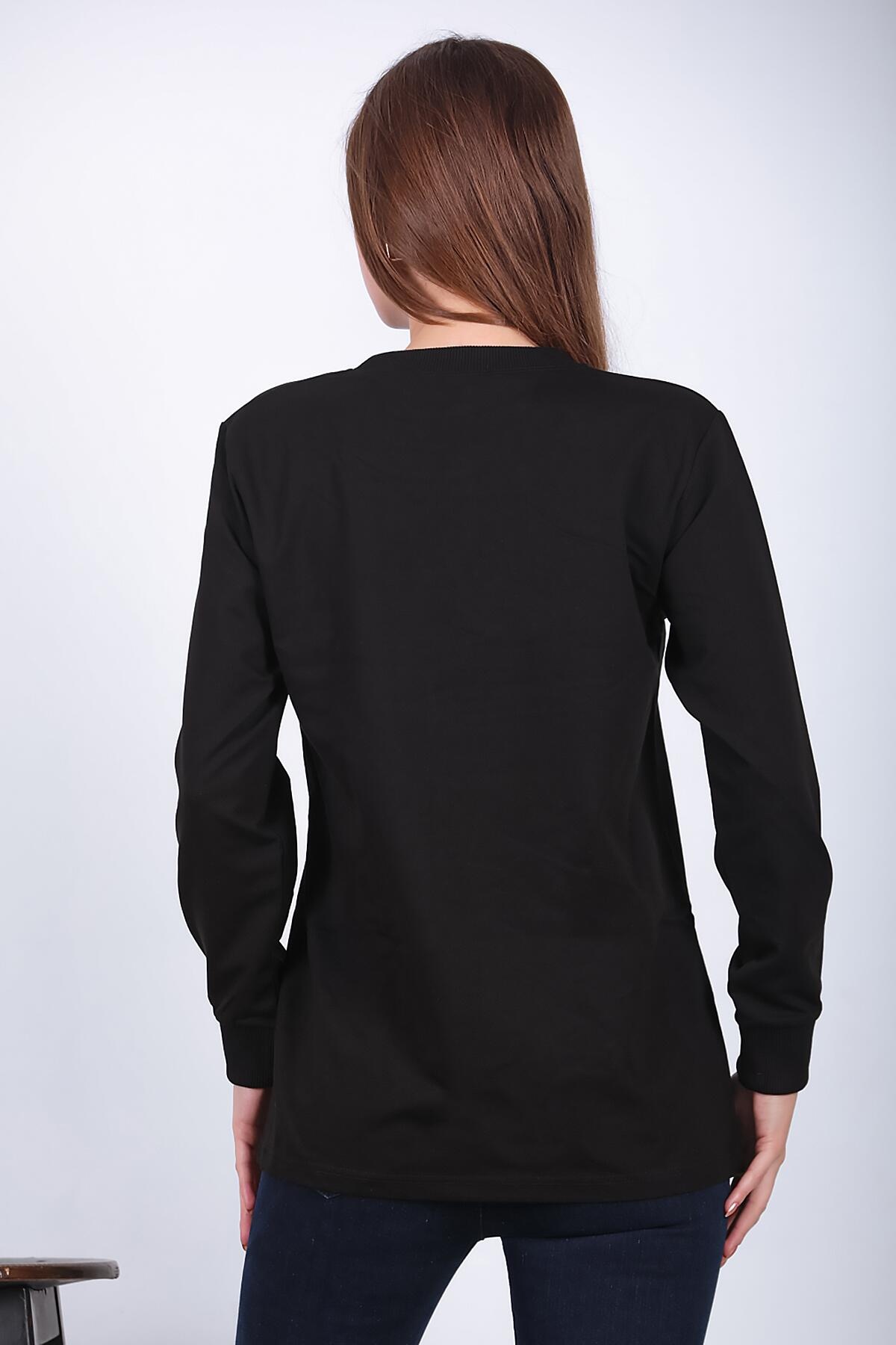 Kadın Bisiklet Yaka Baskılı Sweat Siyah