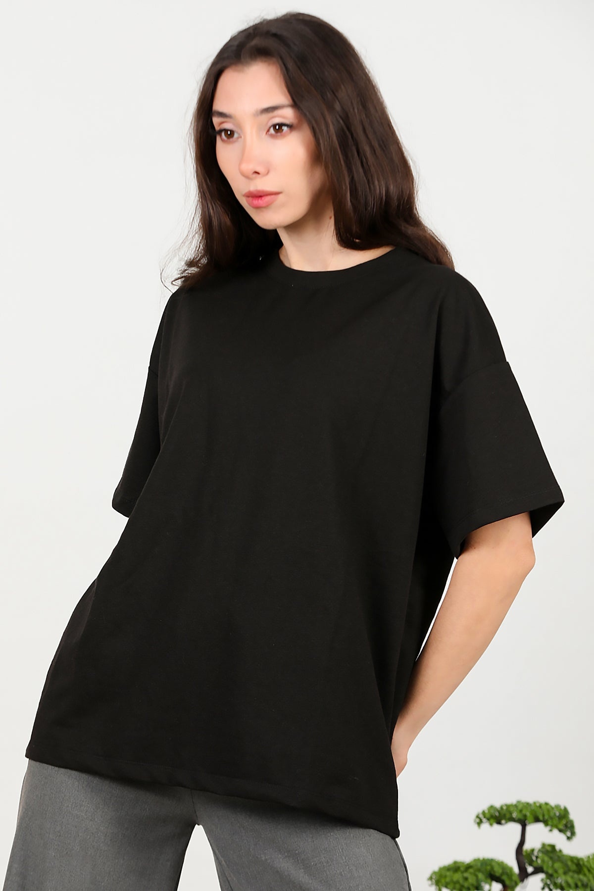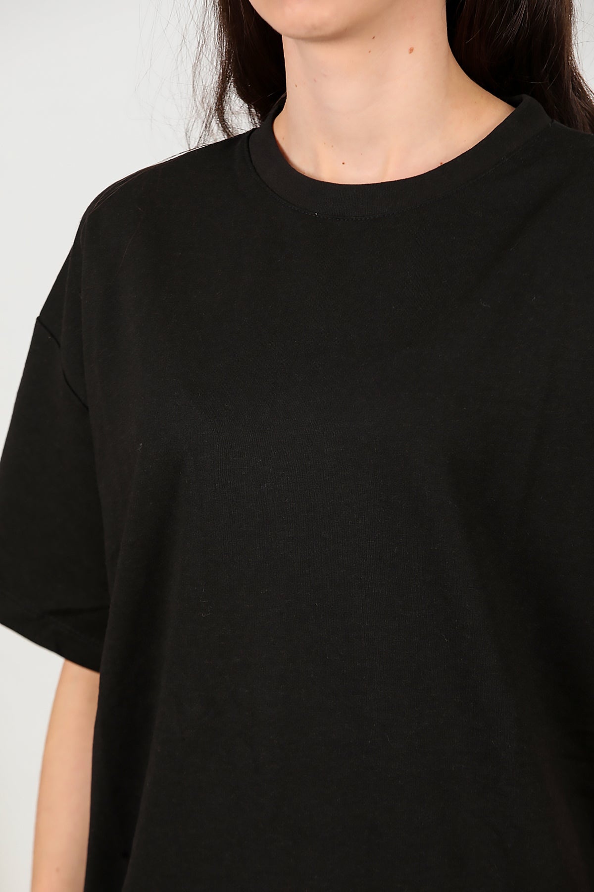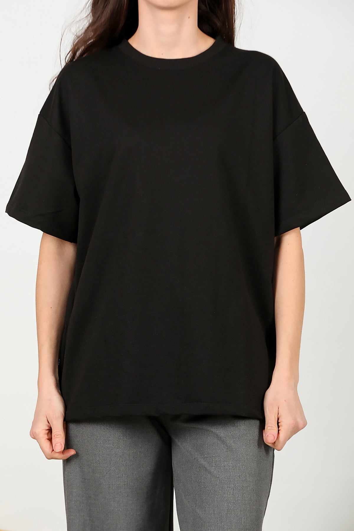 Kadın Bisiklet Yaka Oversize İki İplik Tshirt Siyah