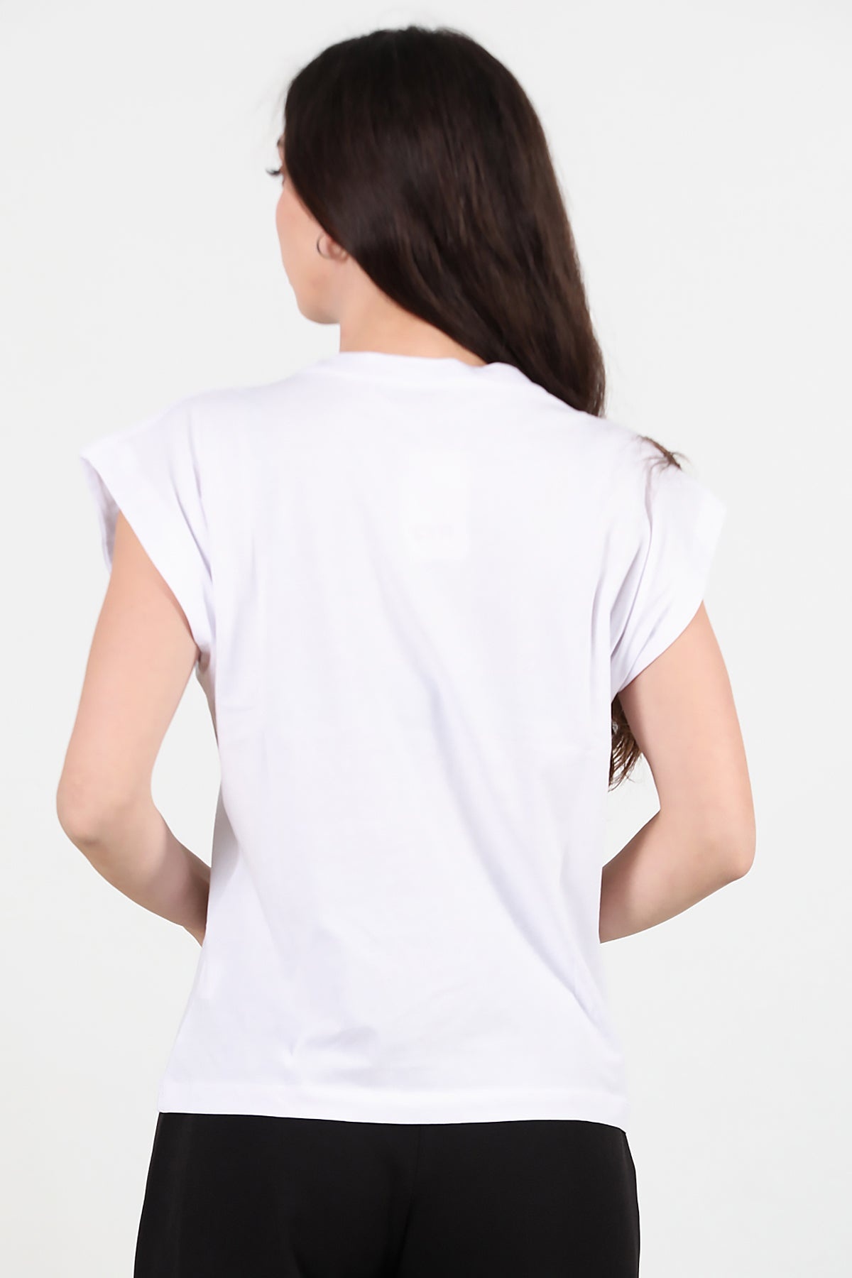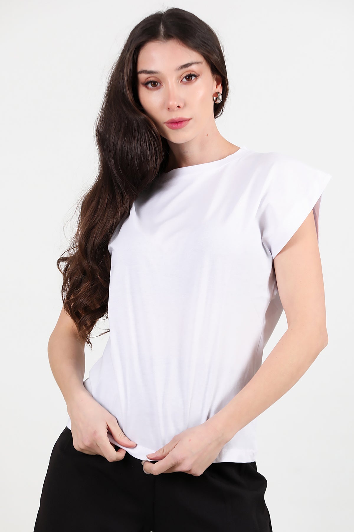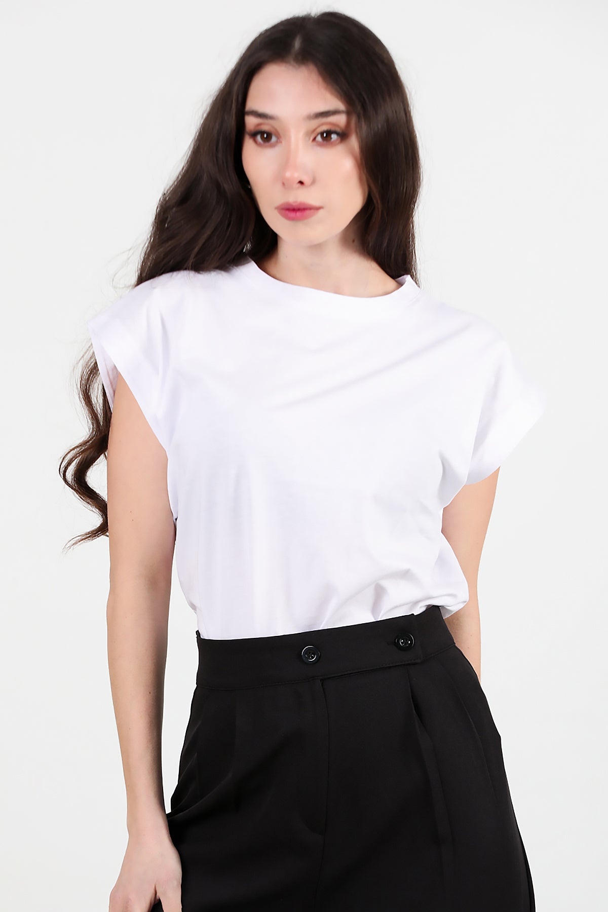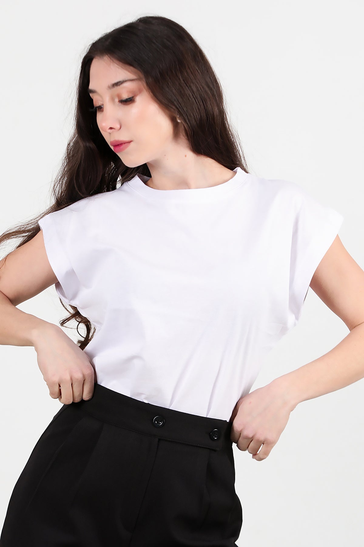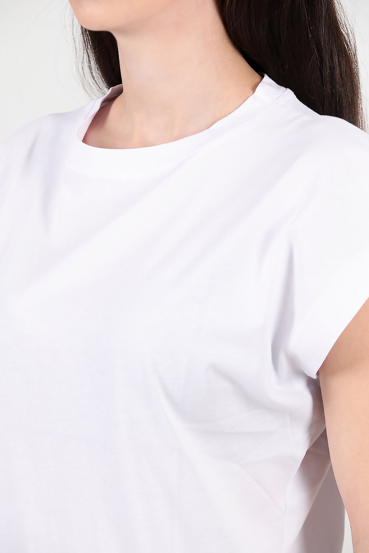 Kadın Bisiklet Yaka Oversize T-shirt Ekru