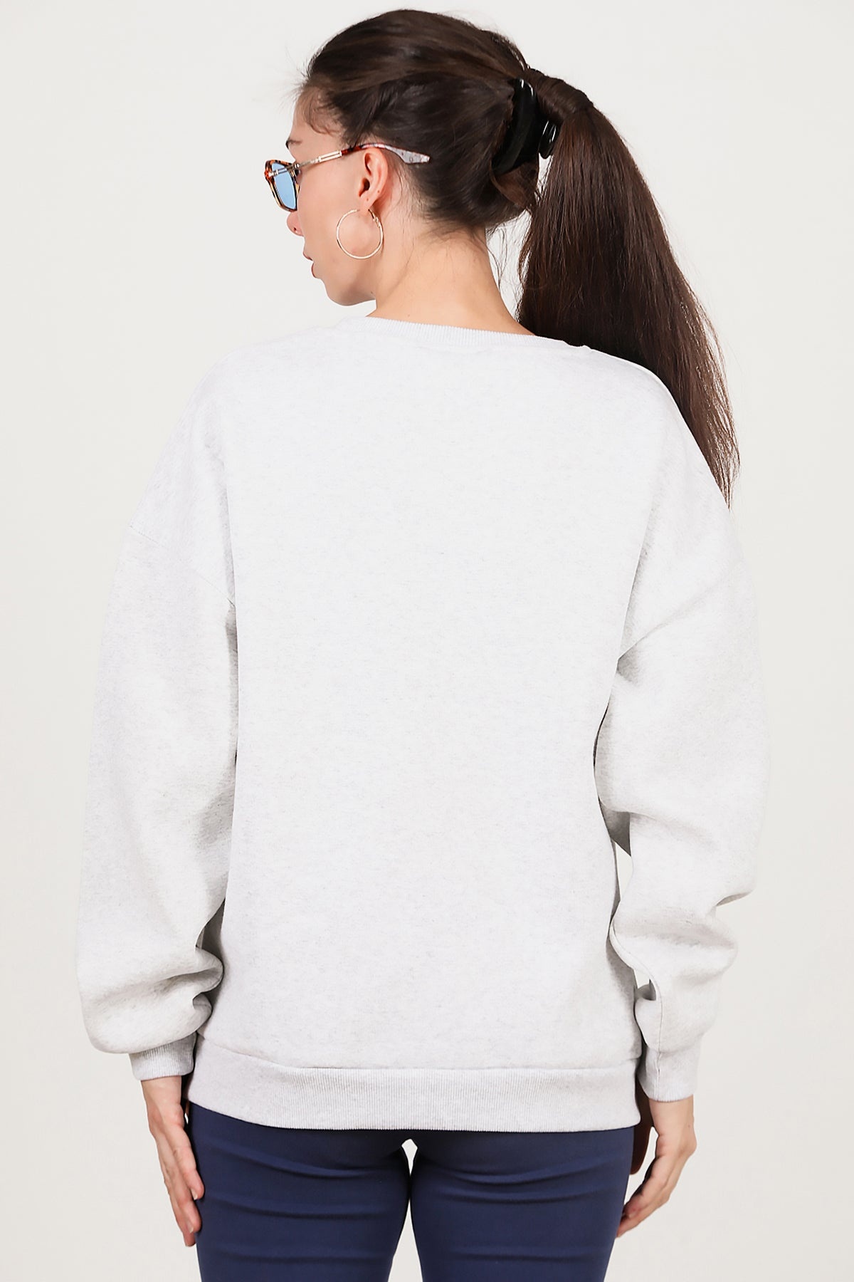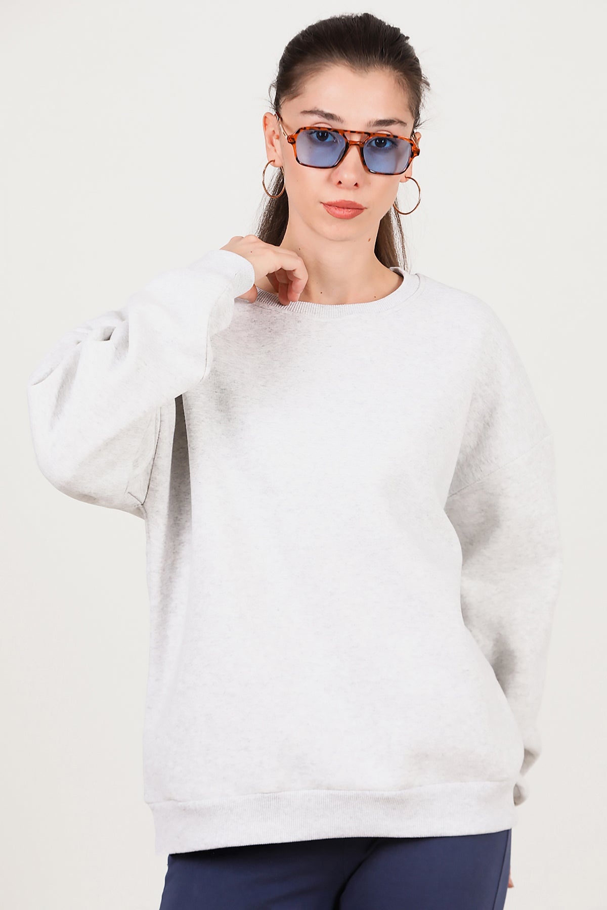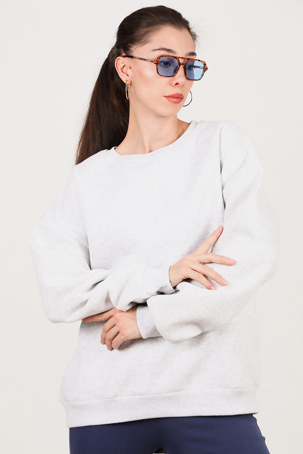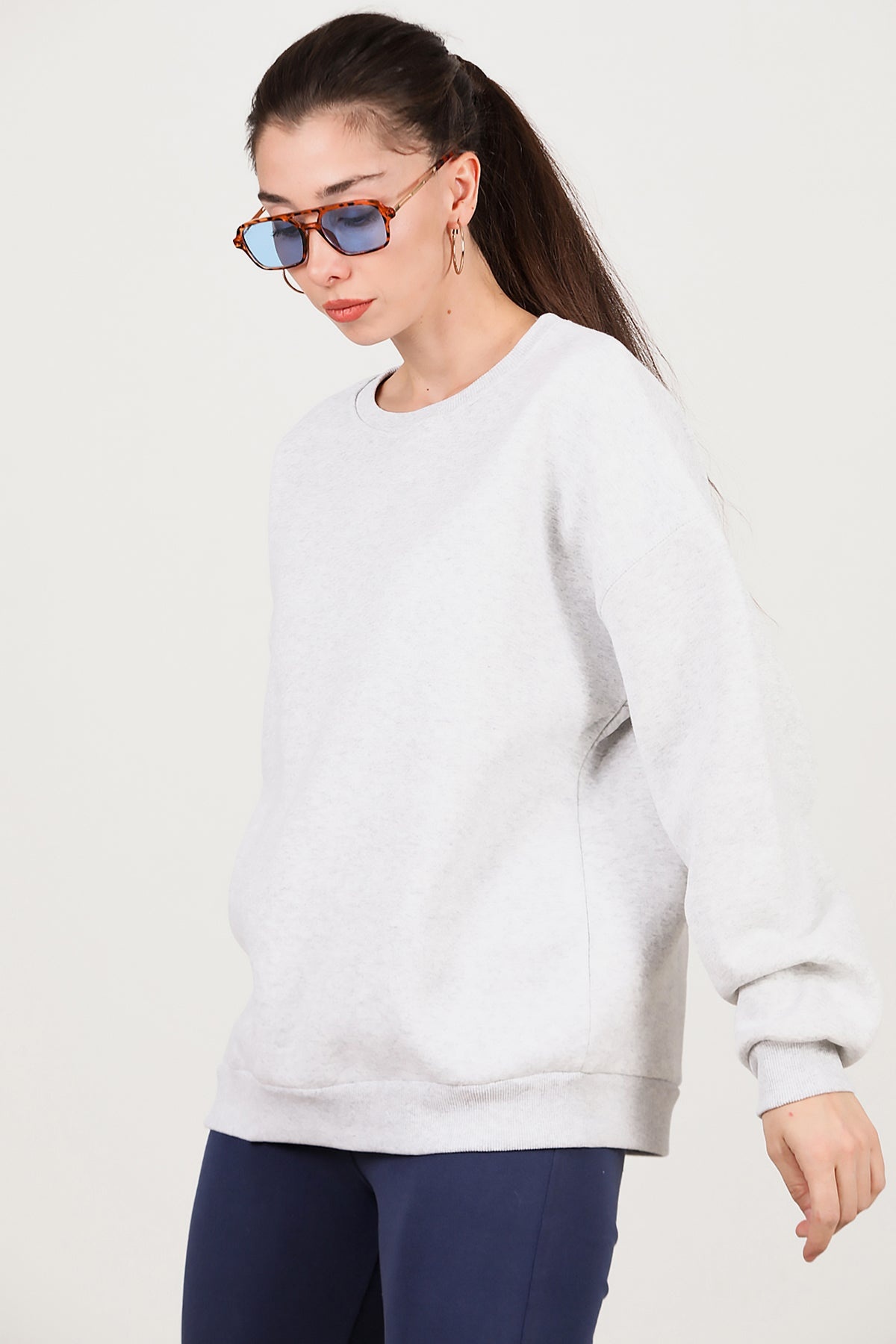 Kadın Bisiklet Yaka Üç İplik Oversize Sweat Açık Gri