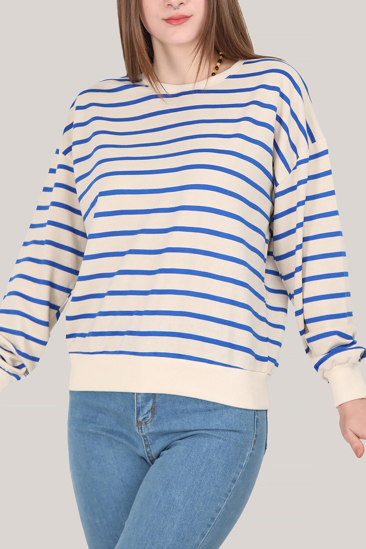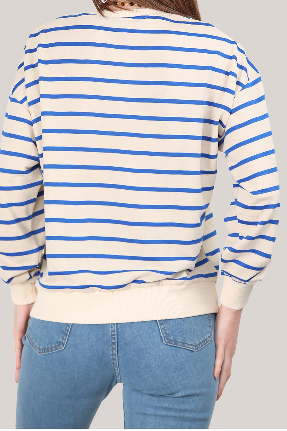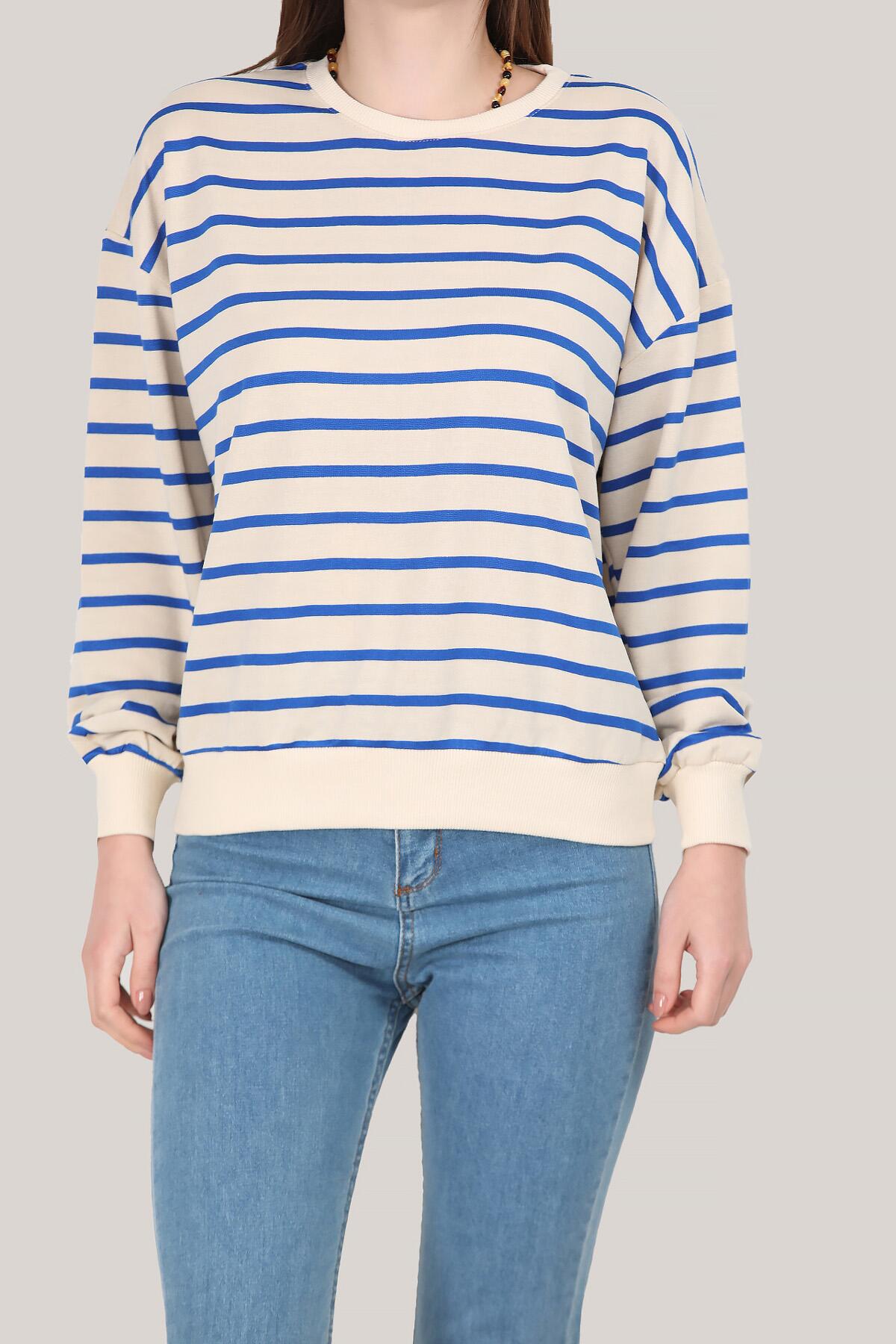 Kadın Bisiklet Yaka Yatay Çizgili Kolları Lastikli Sweat Saks