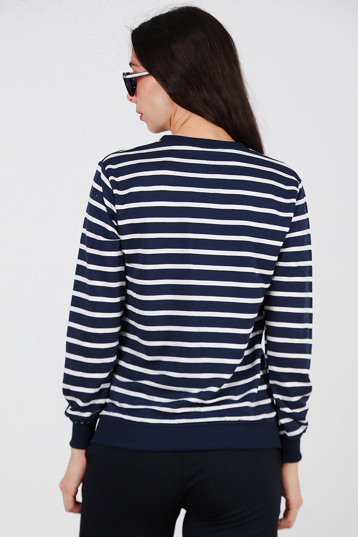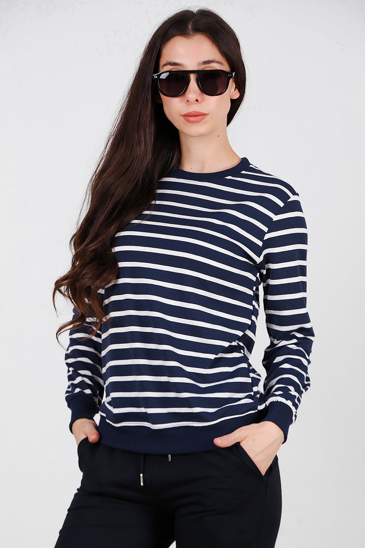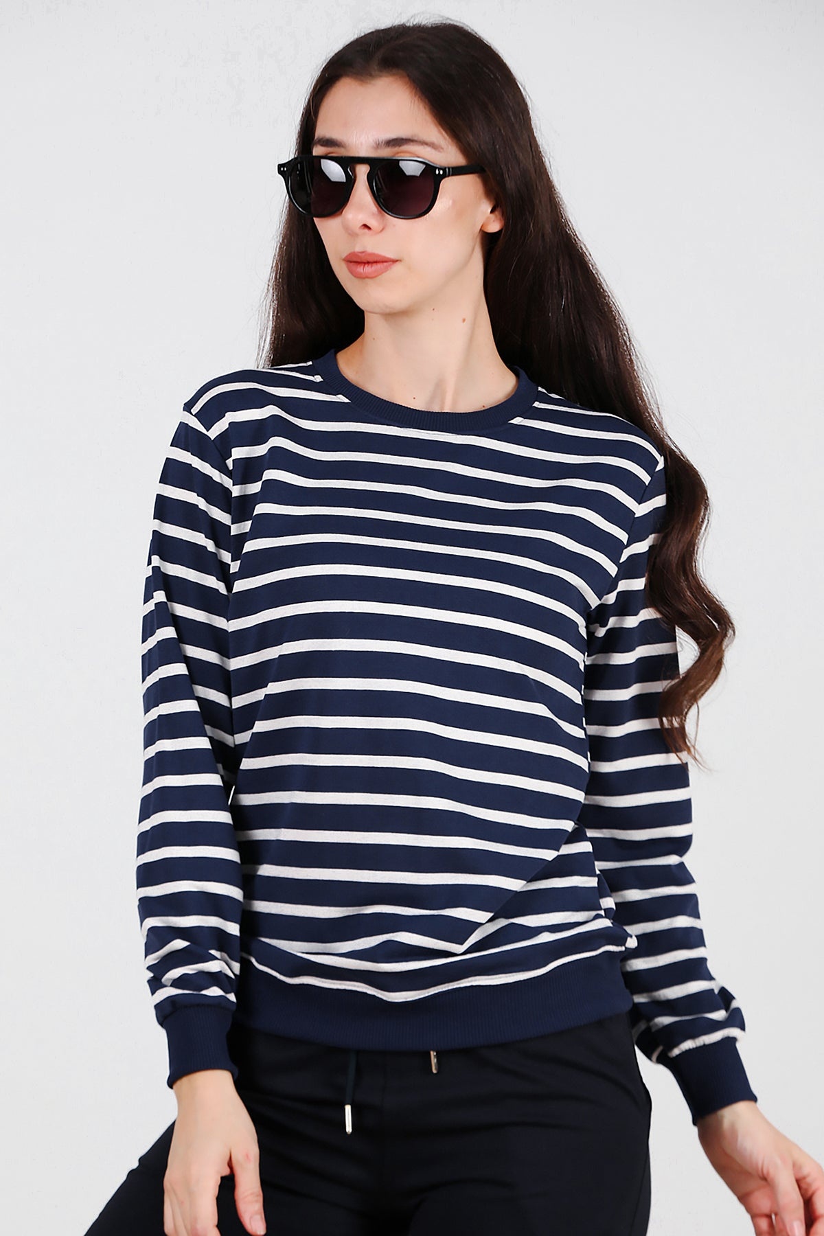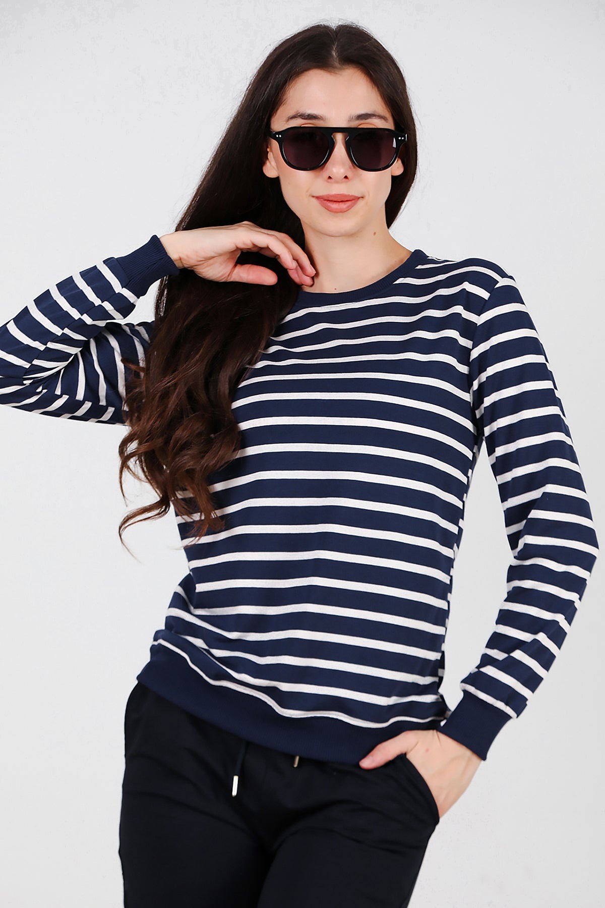 Kadın Çizgili Bisiklet Yaka Sweet Lacivert