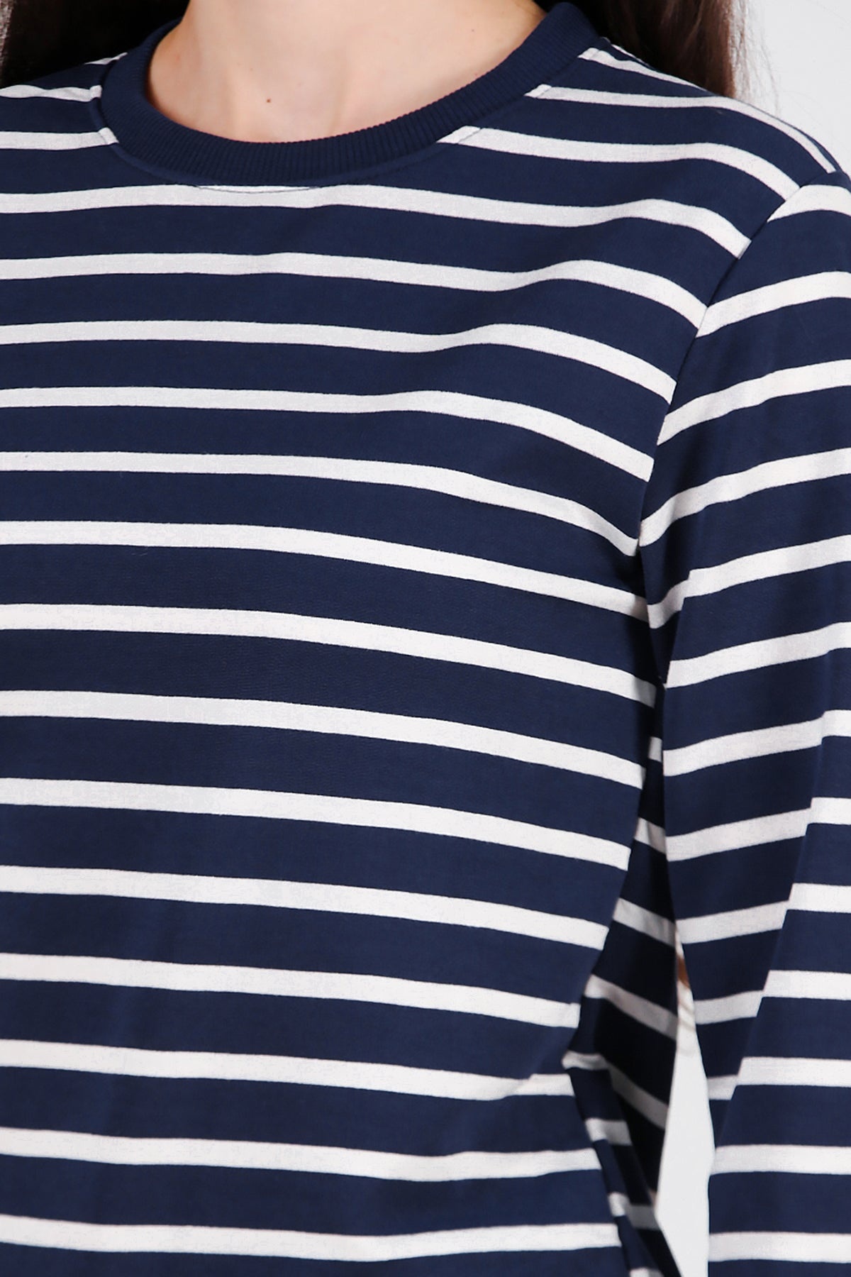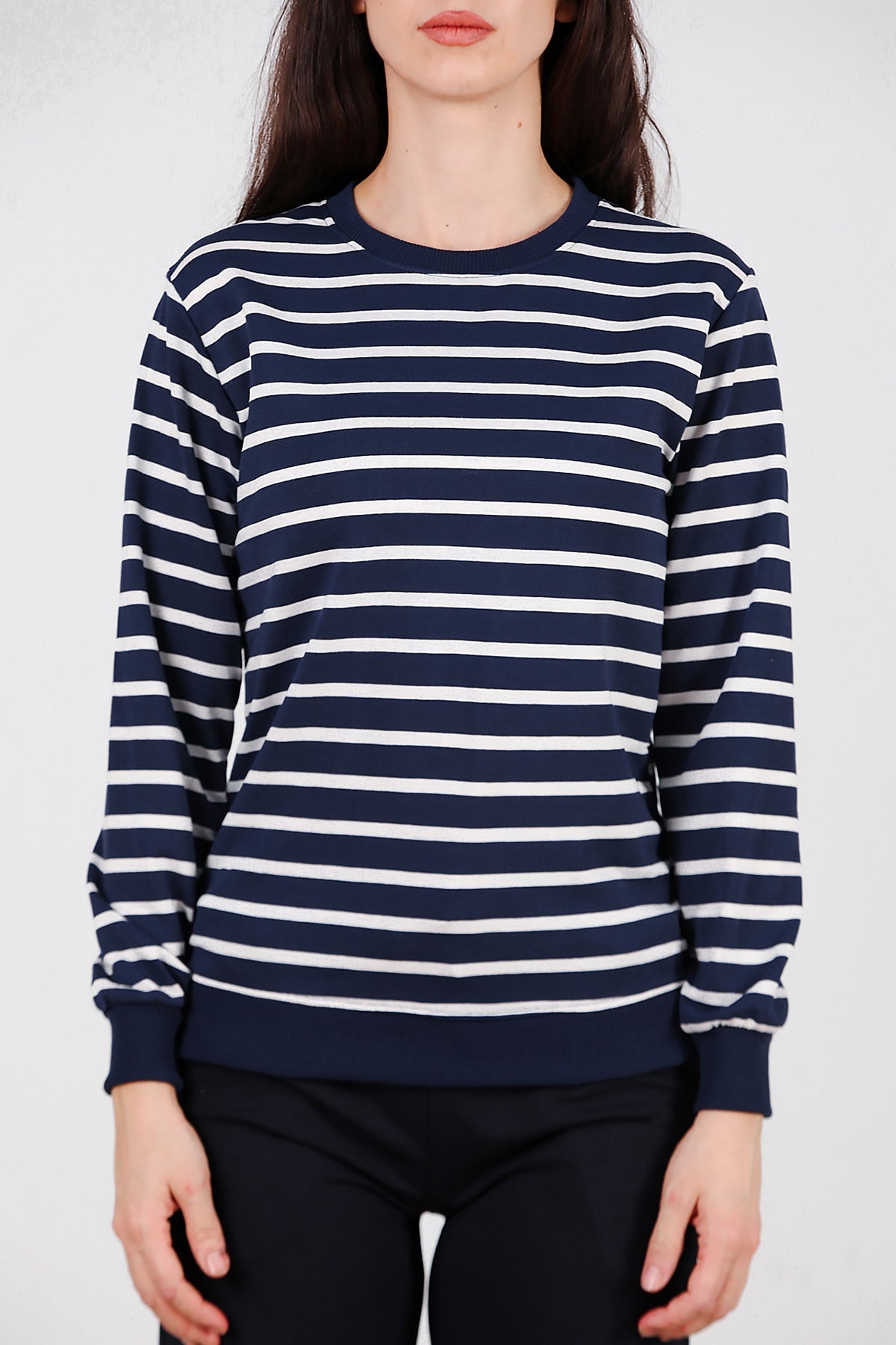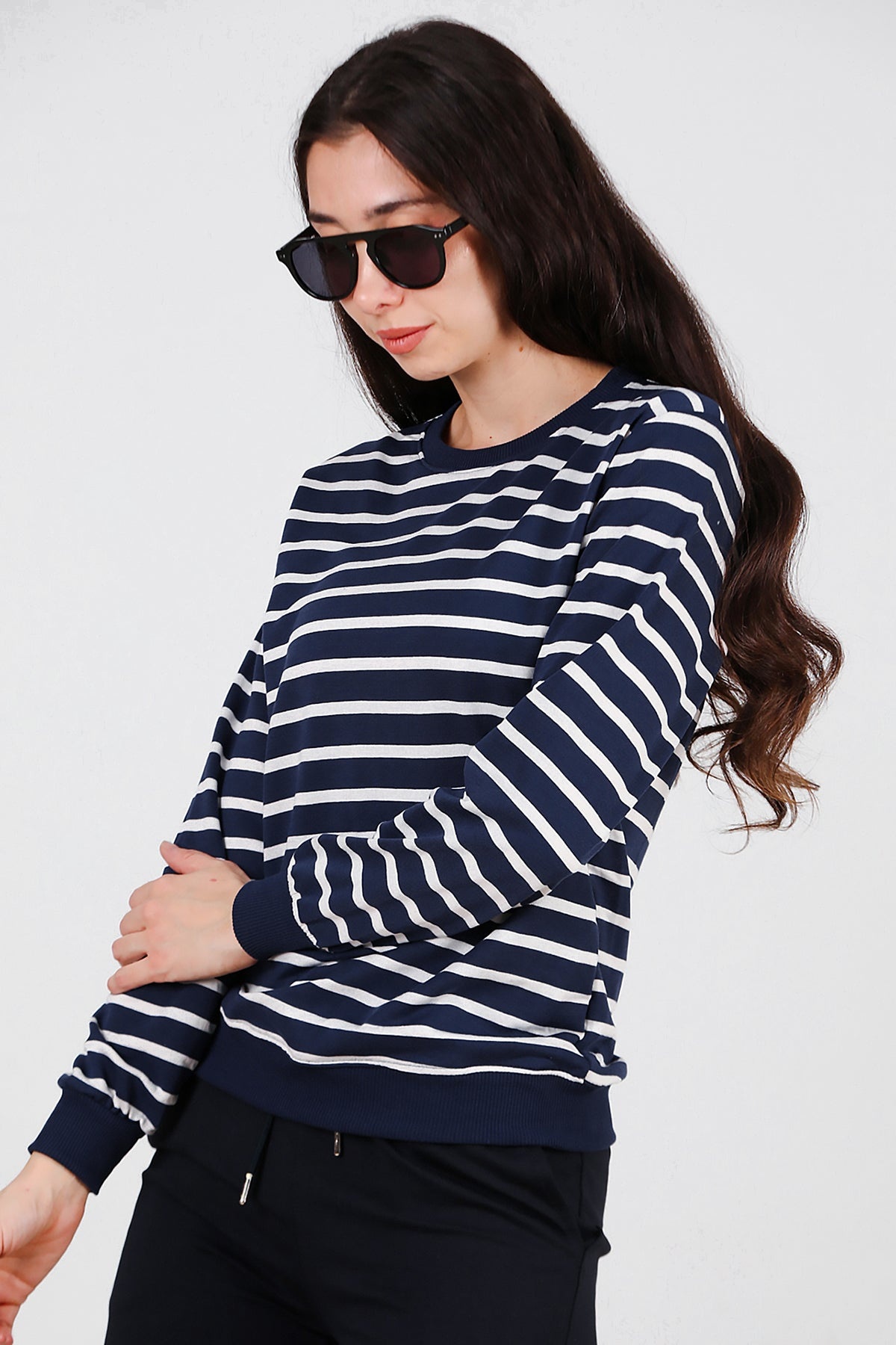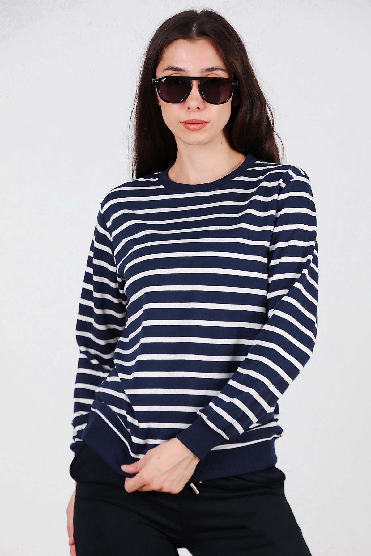 Kadın Çizgili Bisiklet Yaka Sweet Lacivert