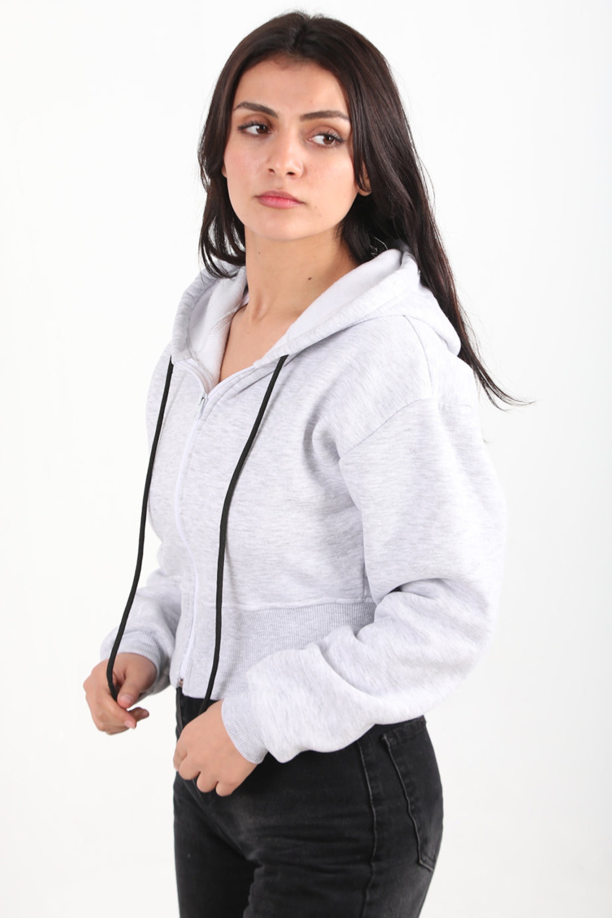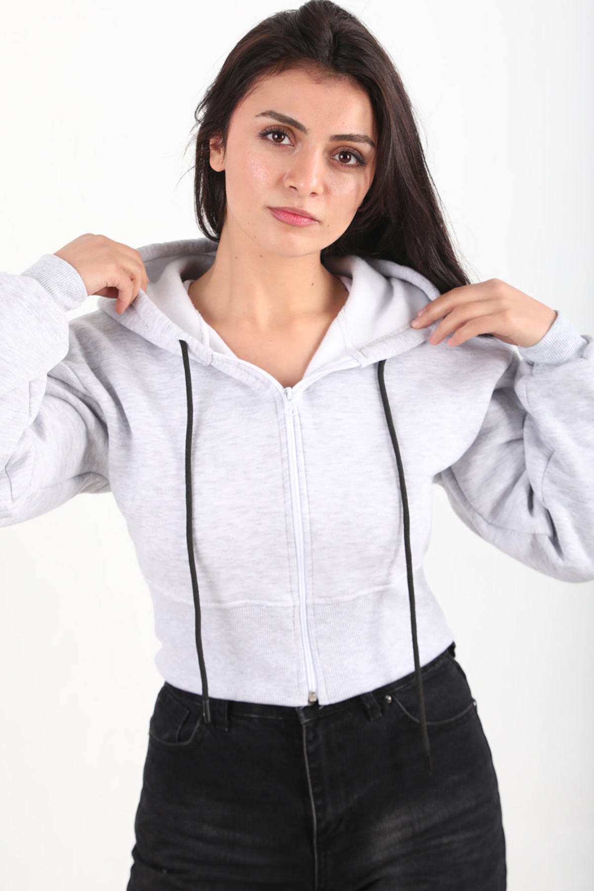 Kadın Fermuarlı Crop Sweat Açık Gri