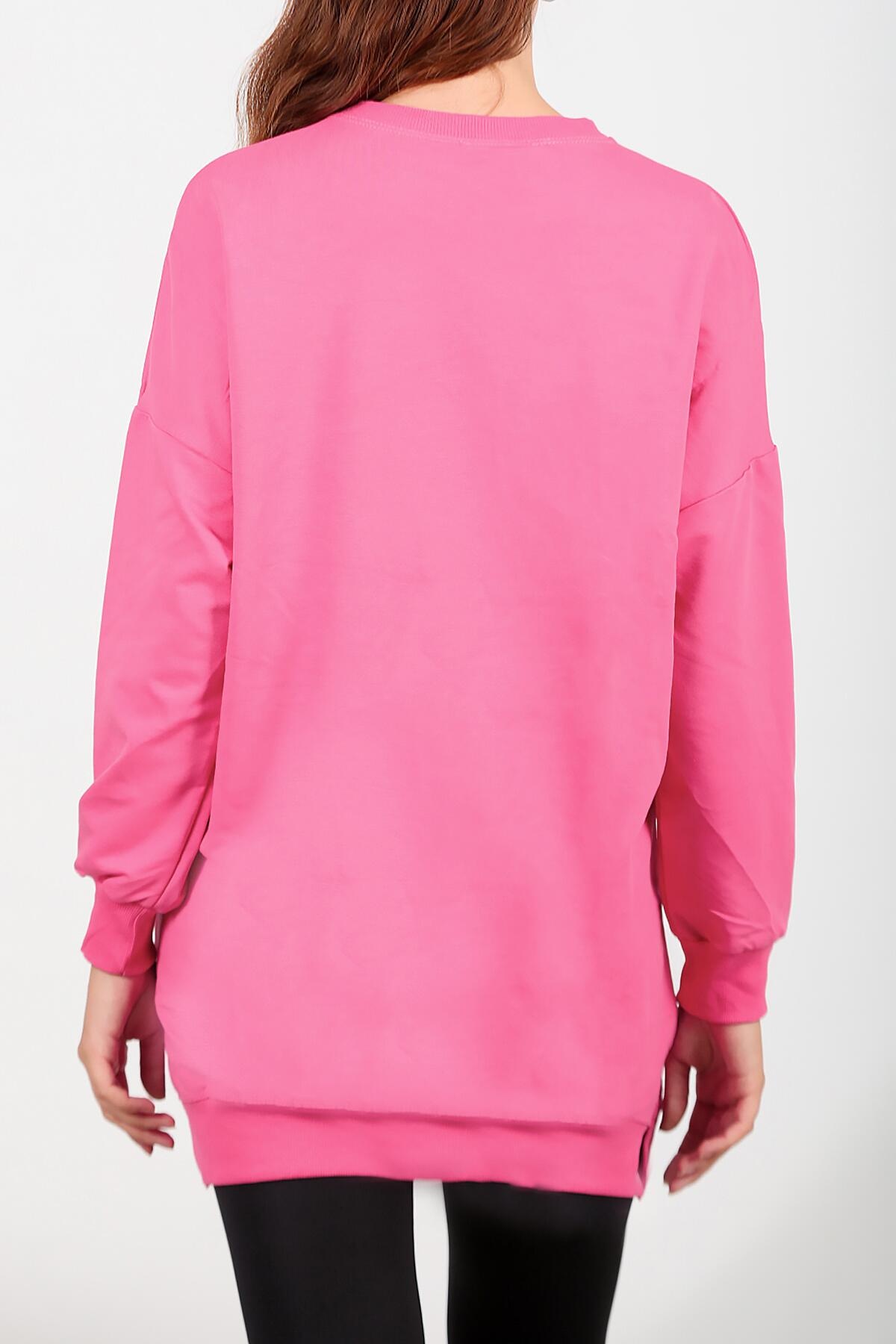 Kadın İki İplik Sıfır Yaka Armalı Tunik Pembe