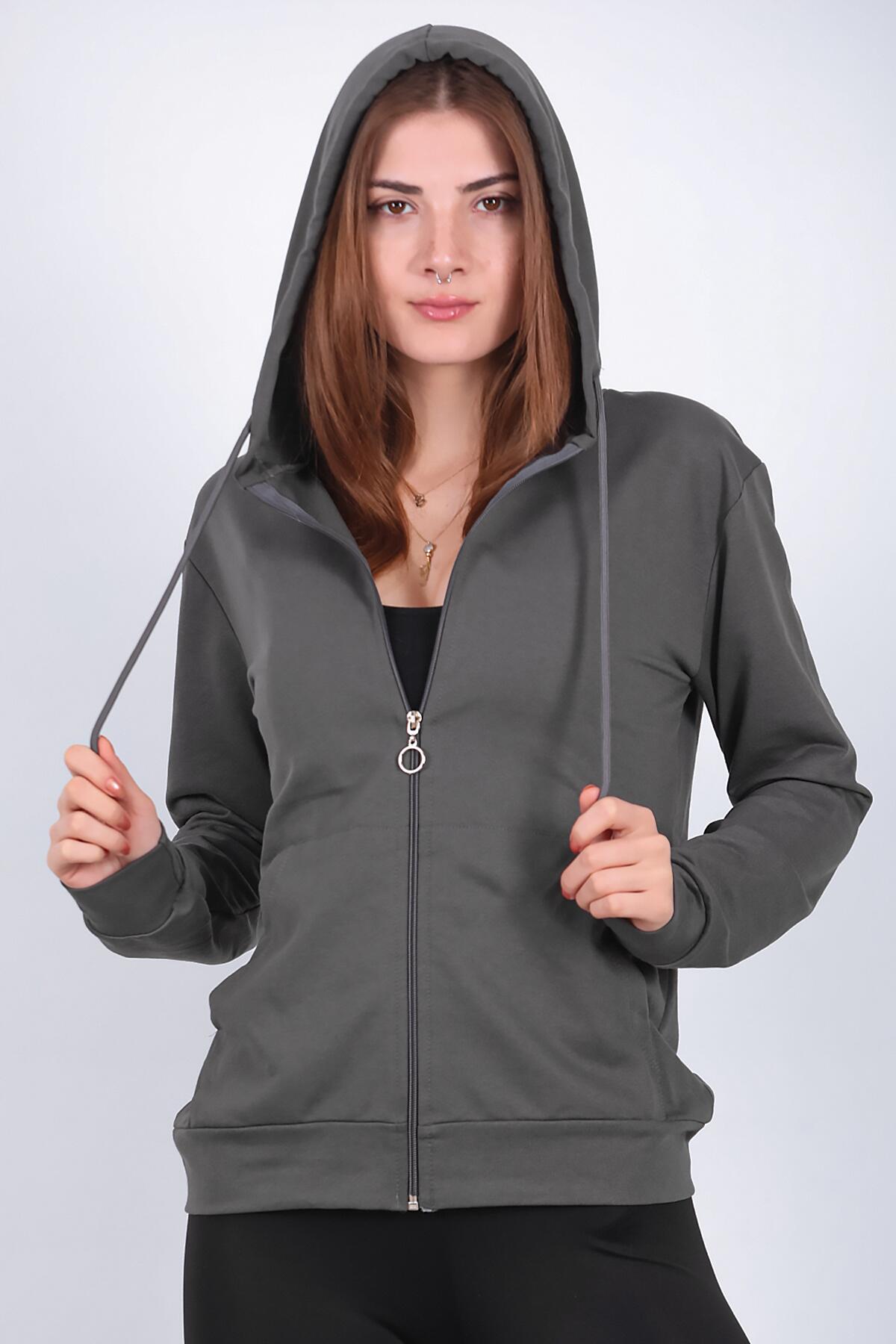 Kadın Kapşonlu Fermuarlı Sweat Füme