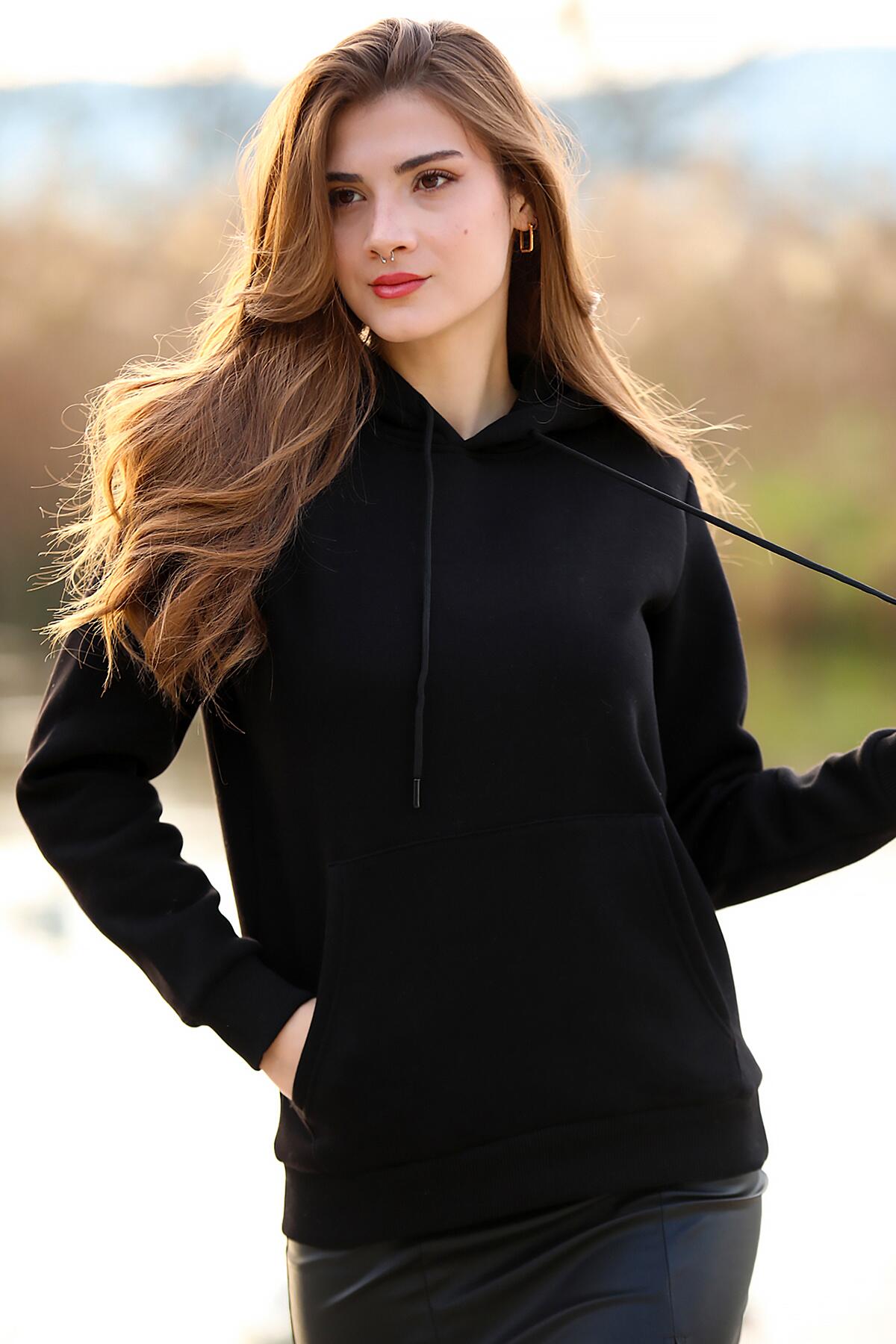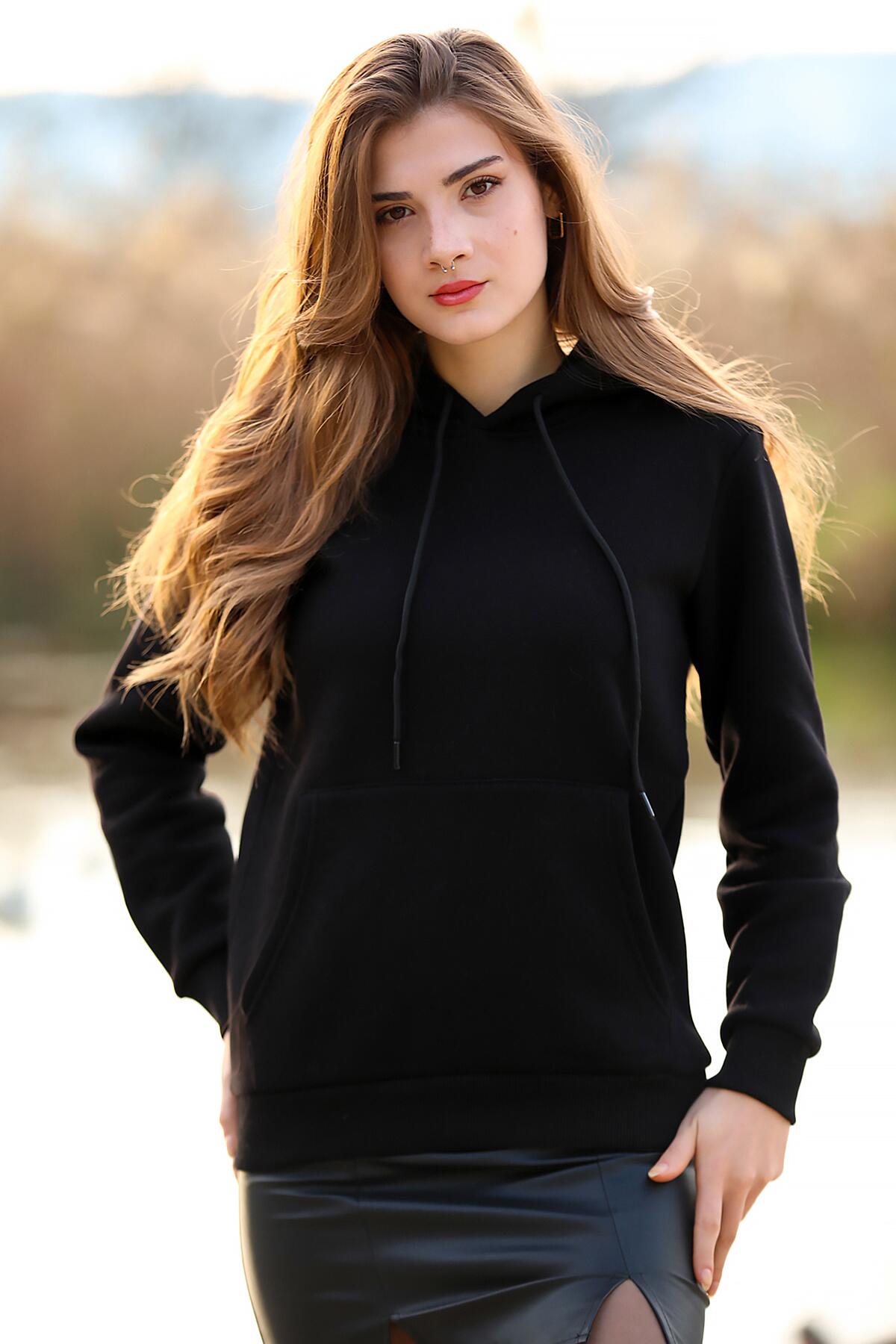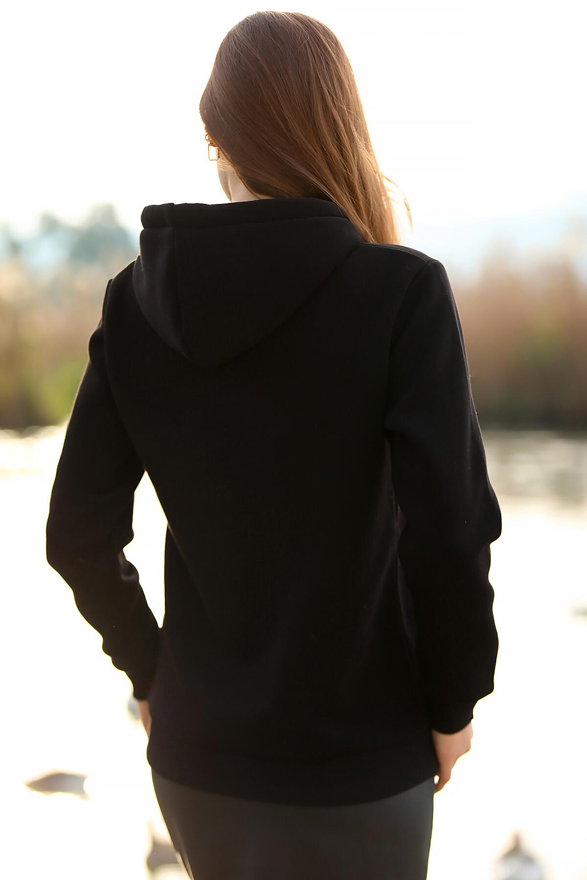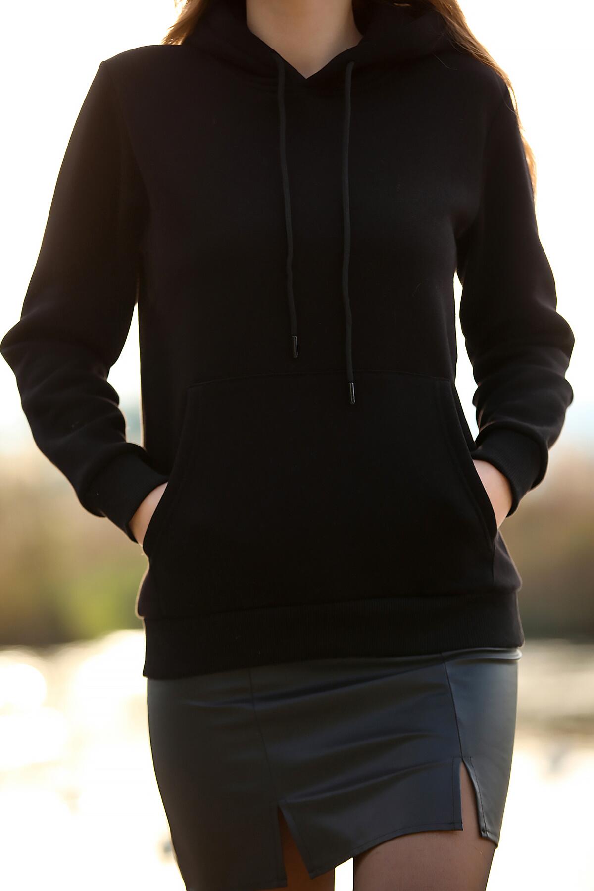 Kadın Kapşonlu Sweat Siyah