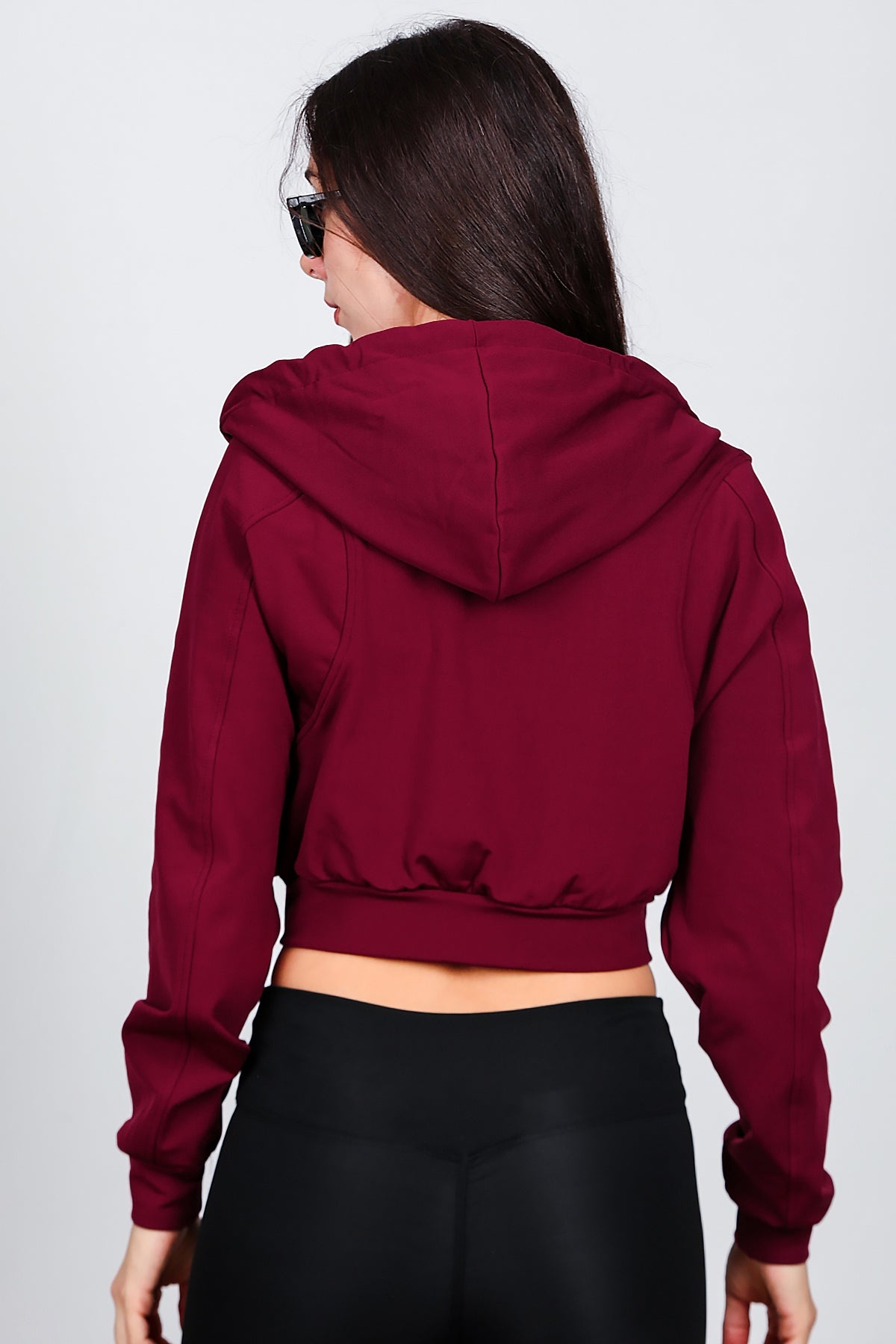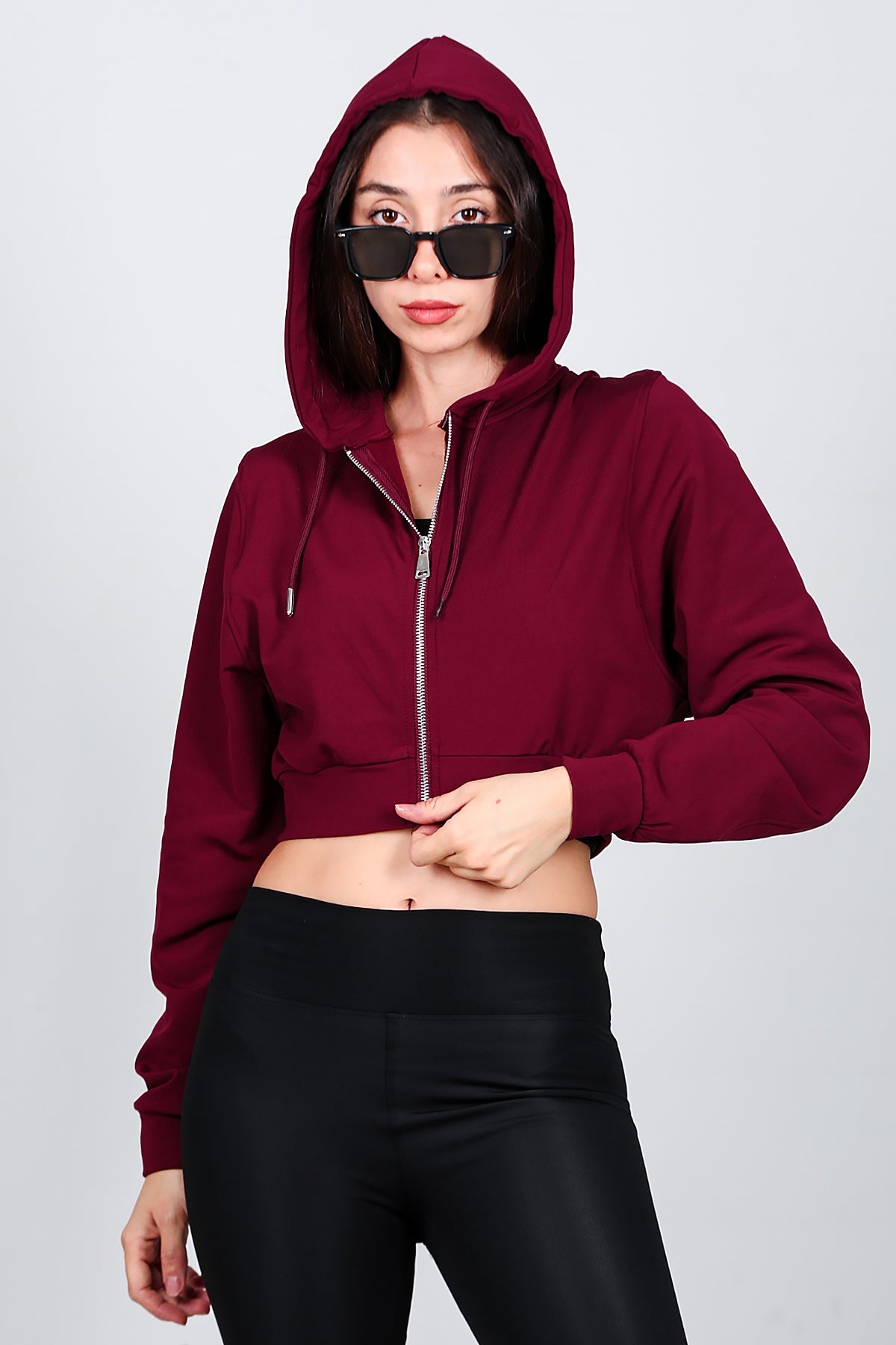 Kadın Kopşonlu Crop Sweat Bordo