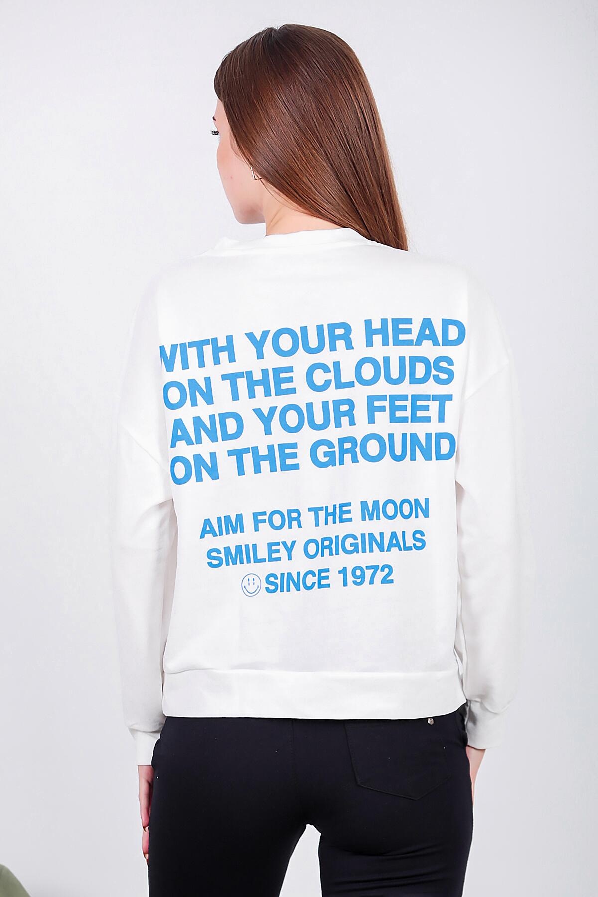 Kadın Ön Ve Arka Baskılı Sweat Beyaz
