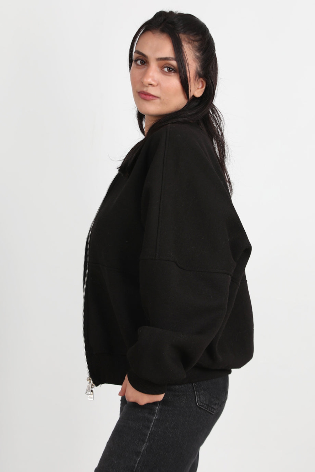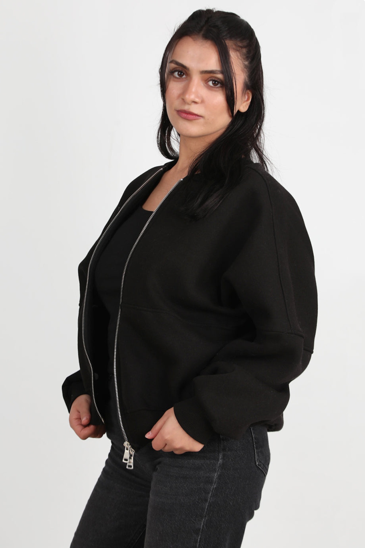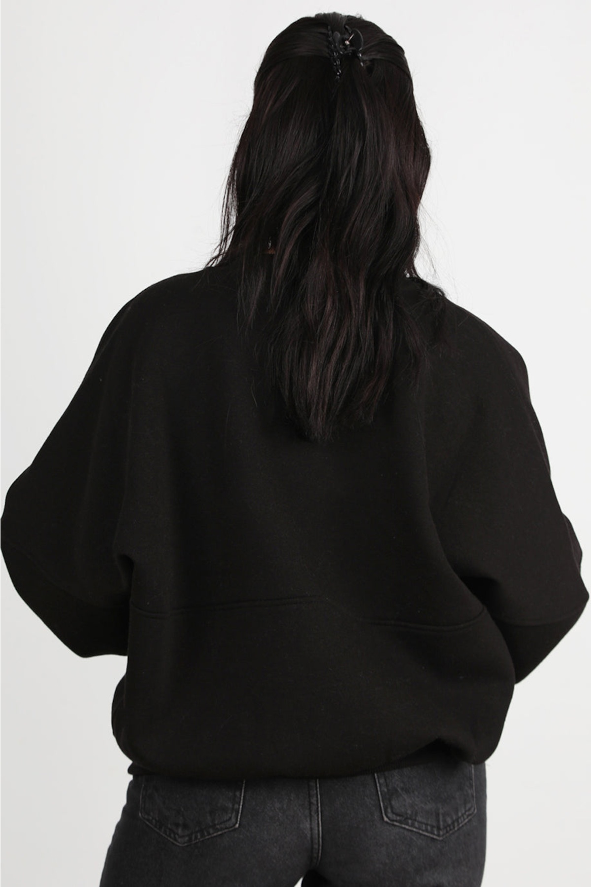 Kadın Önü Fermuarlı Parçalı Sweat Siyah