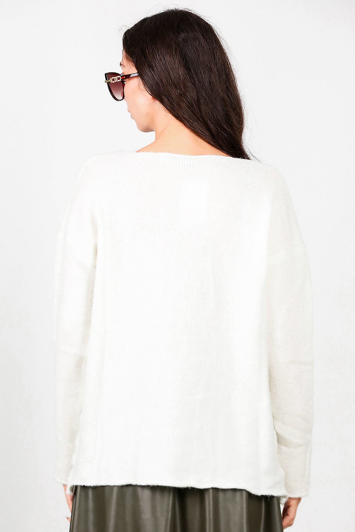 Kadın Oversize Triko Kazak Ekru