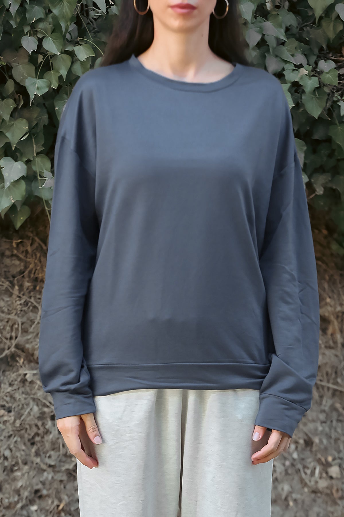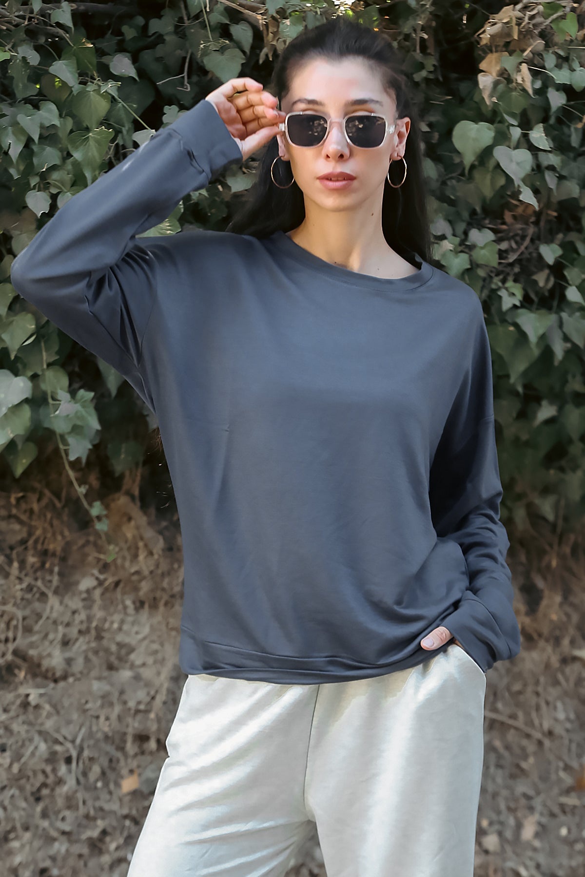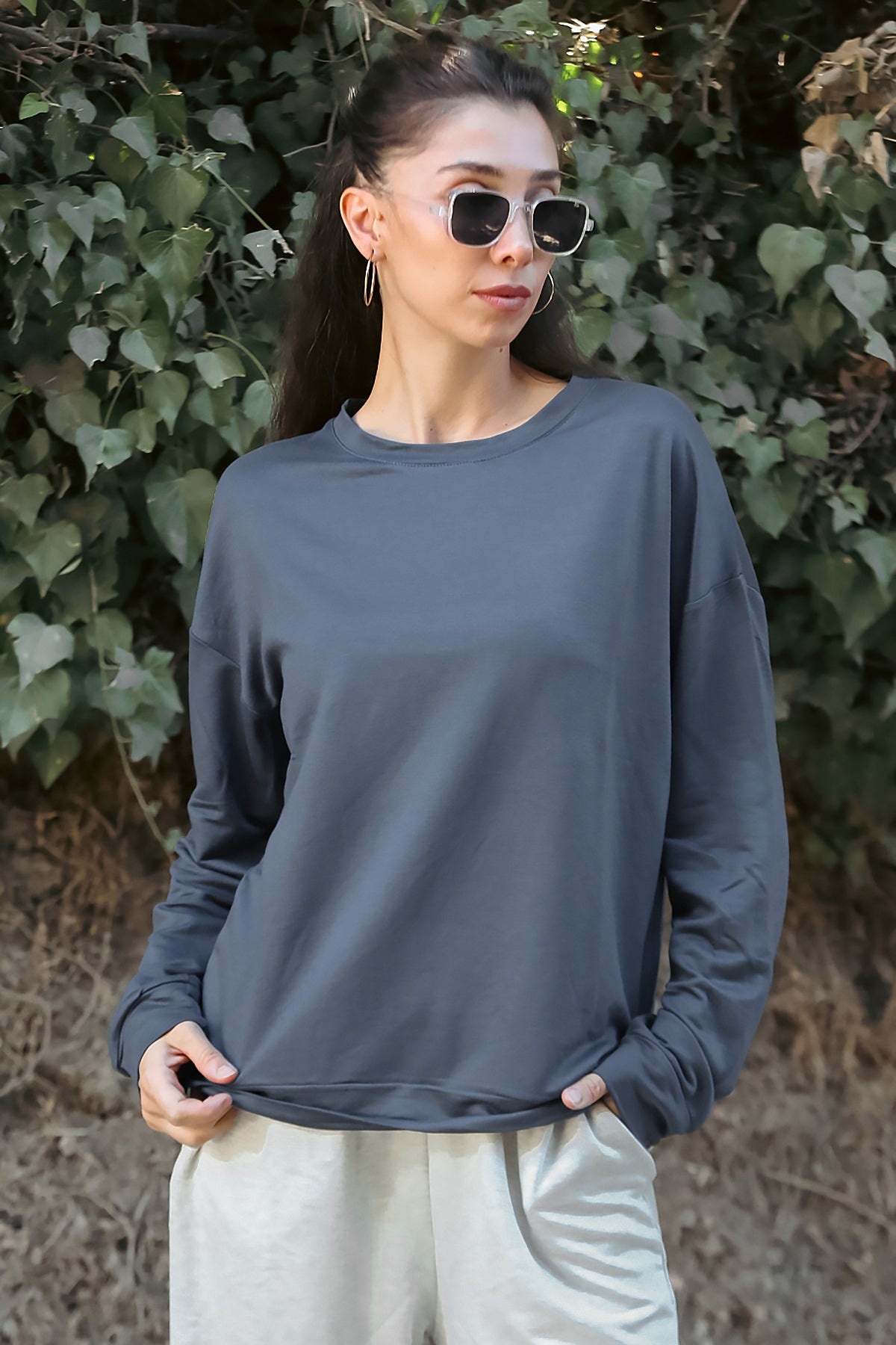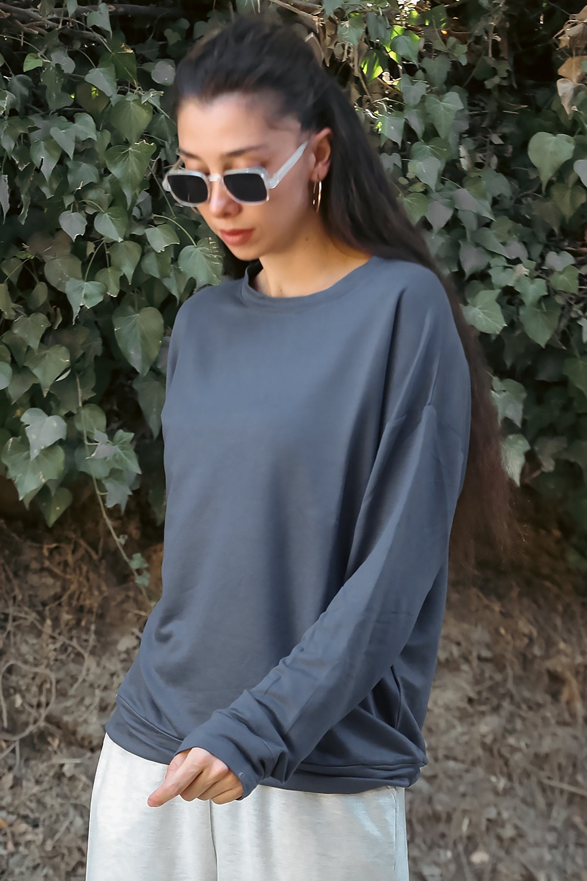 Kadın Owersize Bisiklet Yaka Sweet Füme