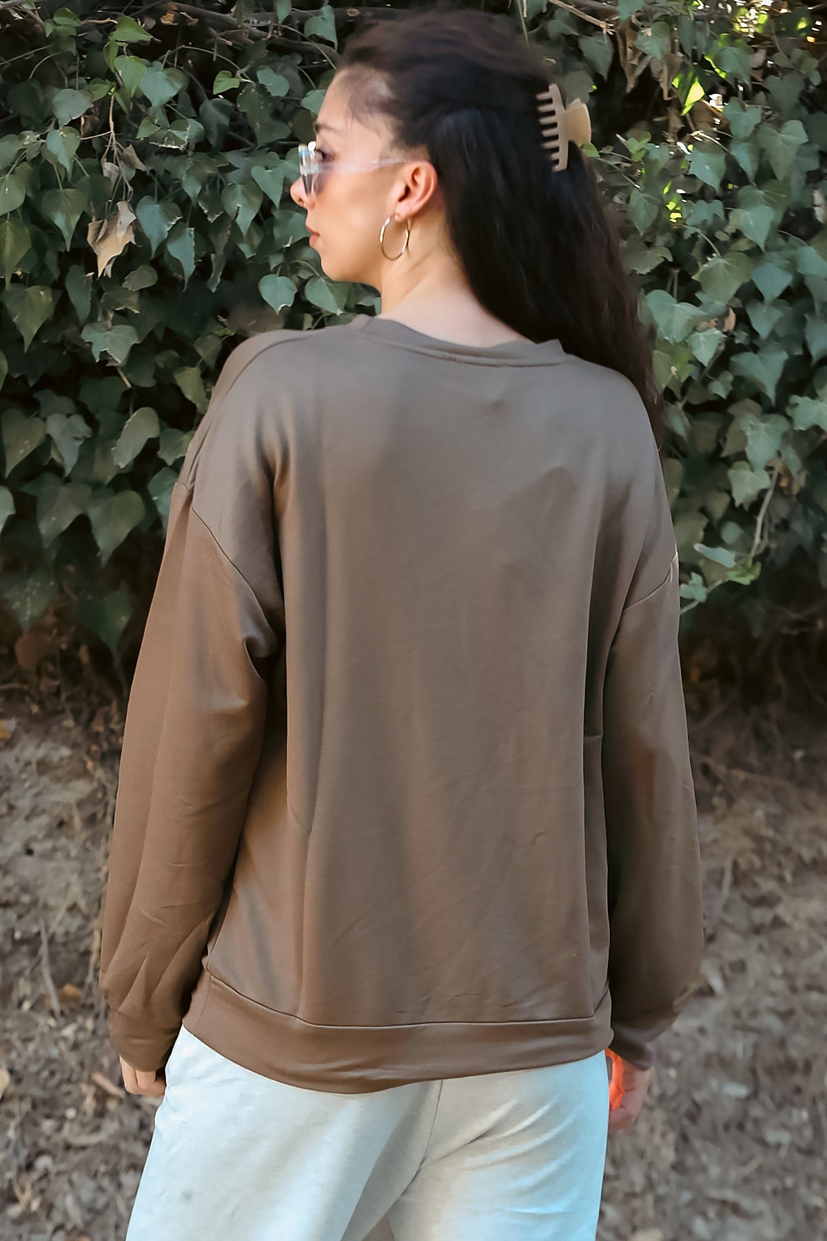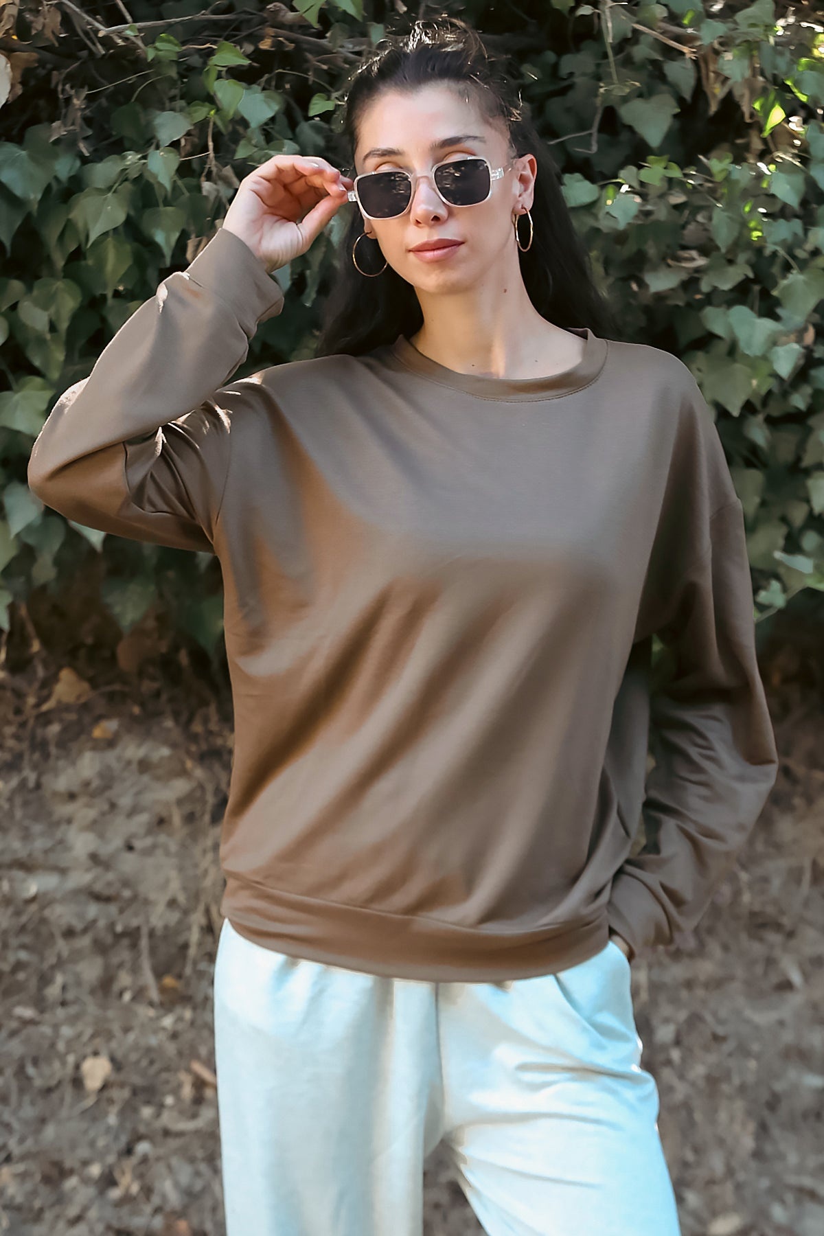 Kadın Owersize Bisiklet Yaka Sweet Kahverengi