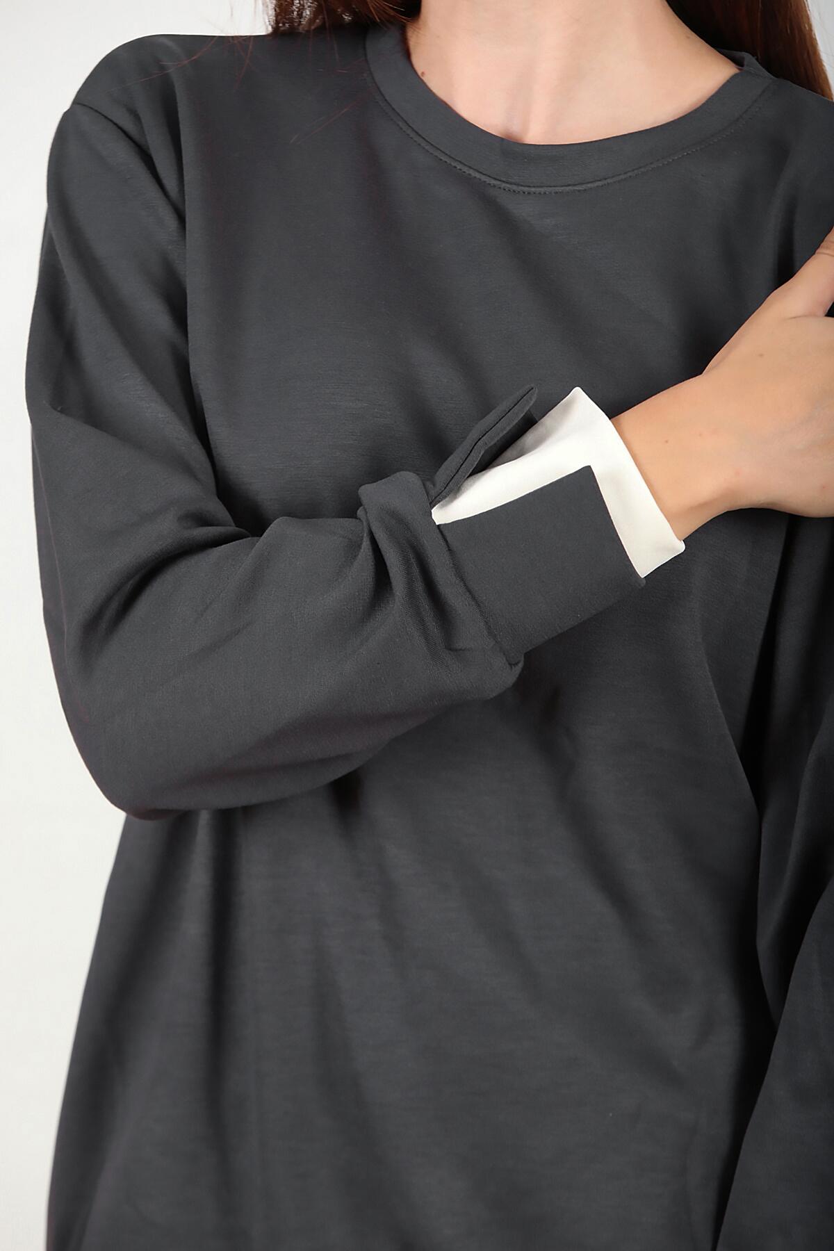 Kadın Bisiklet Yaka Oversize Tshırt