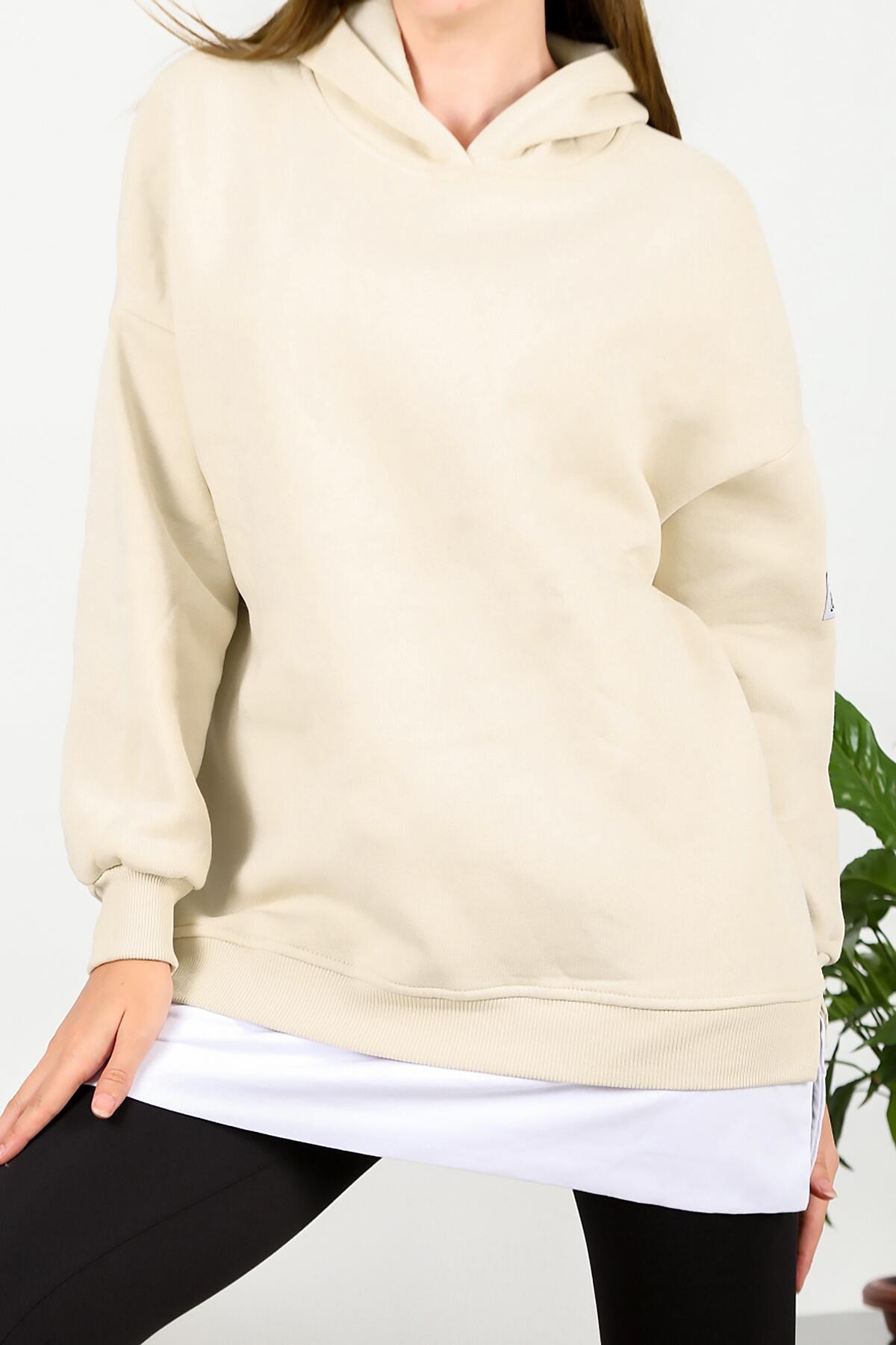 Kadın Üç İplik Arma Detay Garnili Sweat Bej