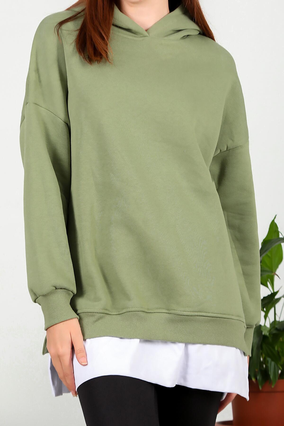 Kadın Üç İplik Arma Detay Garnili Sweat Haki