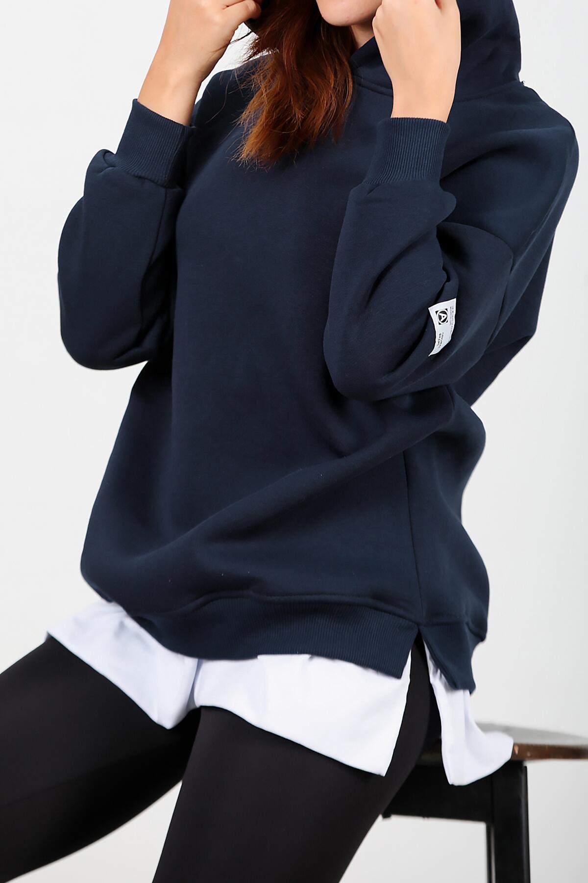 Kadın Üç İplik Arma Detay Garnili Sweat Lacivert