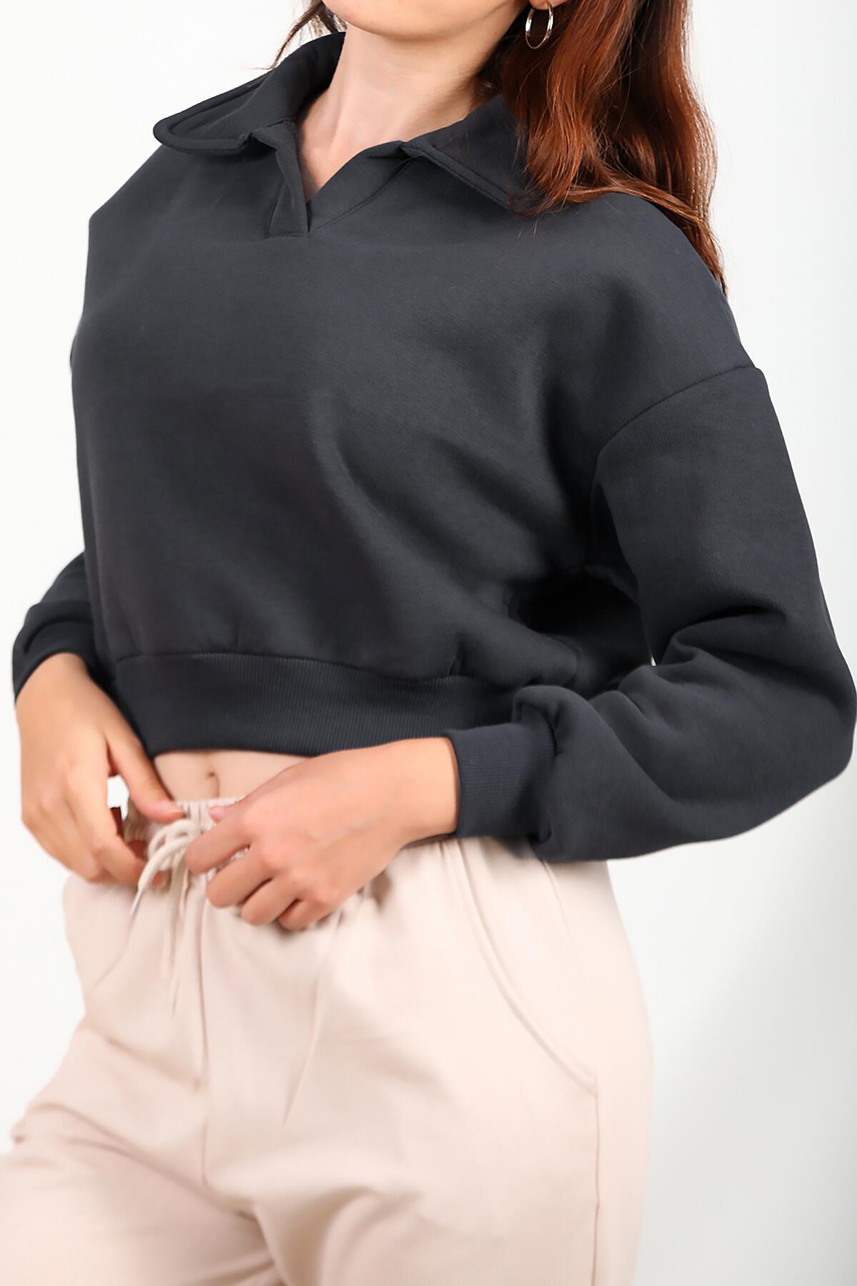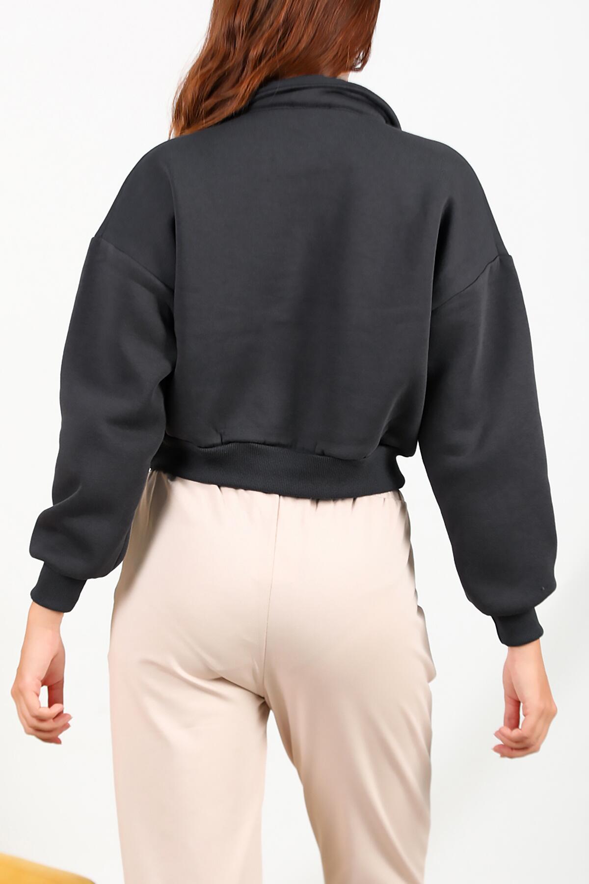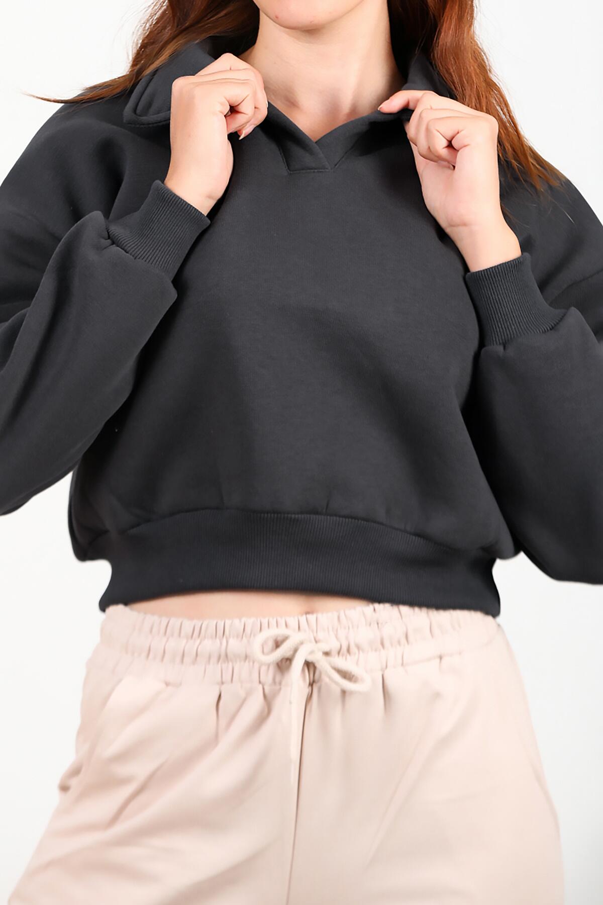 Kadın Üç İplik Kısa Sweat Füme
