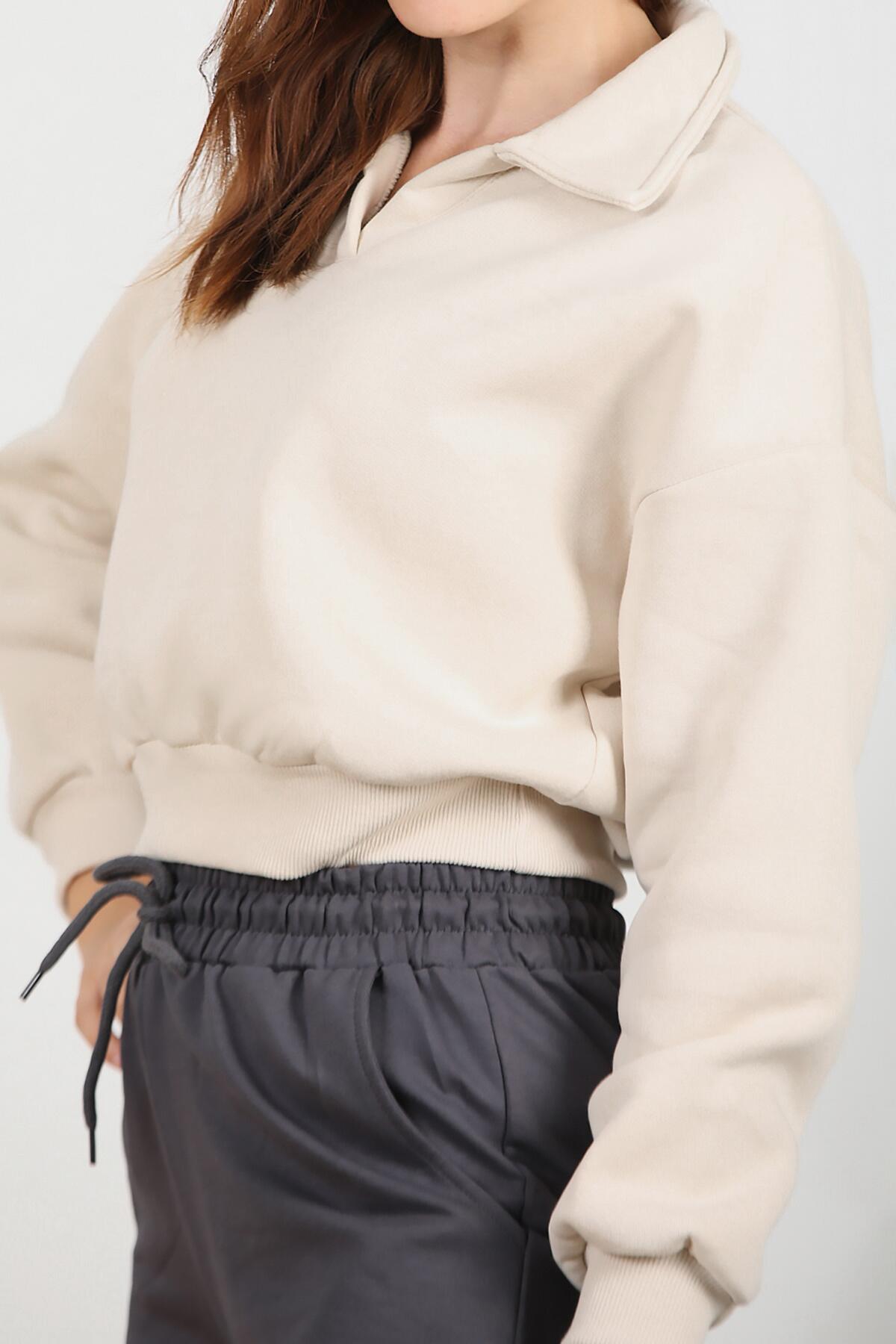Kadın Bisiklet Yaka Şardonlu Sweat