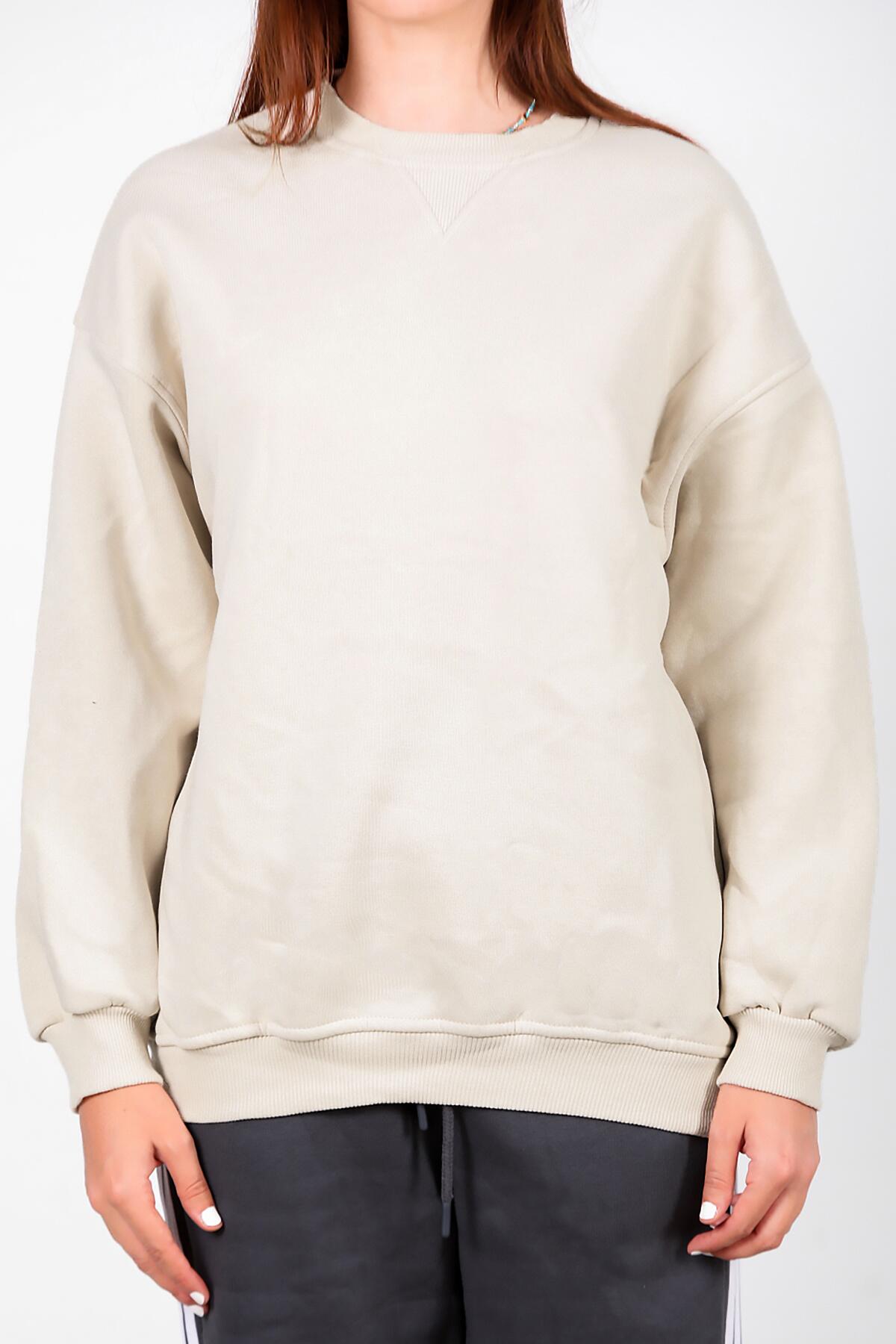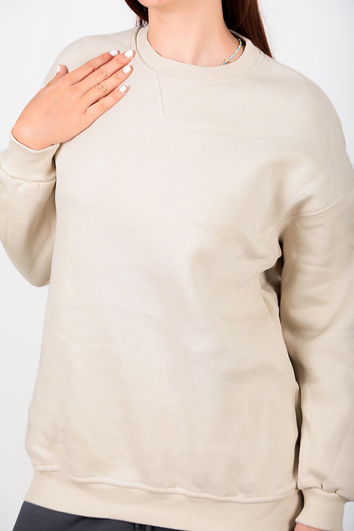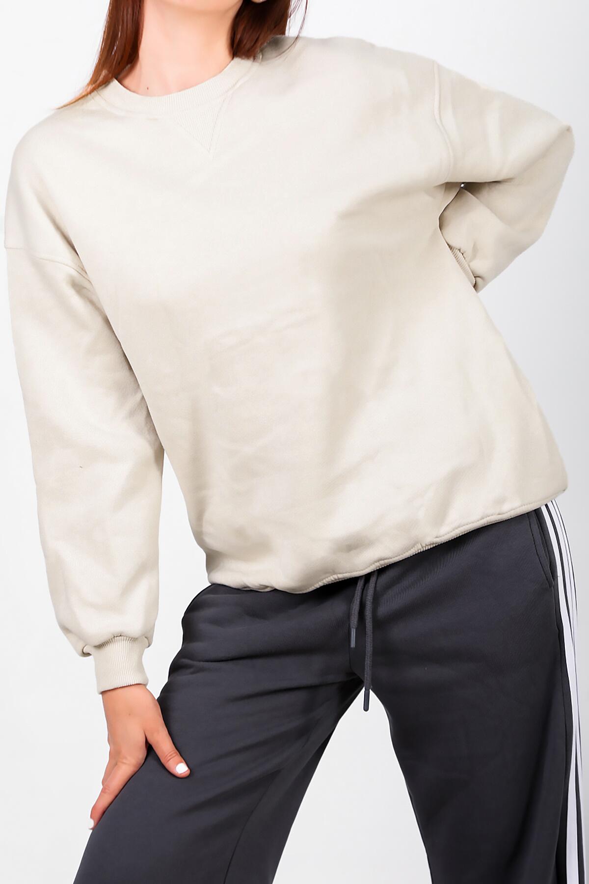 Kadın Üç İplik Sıfır Yaka Sweat Taş