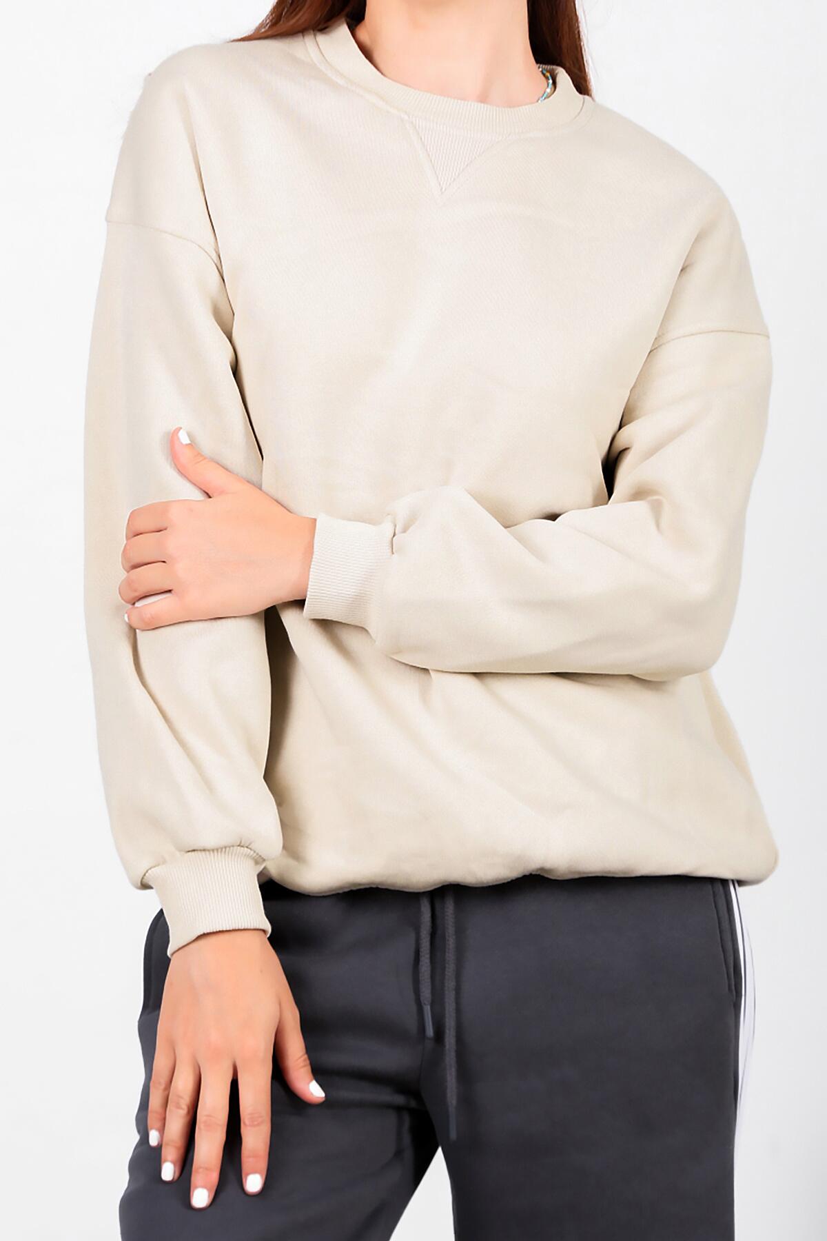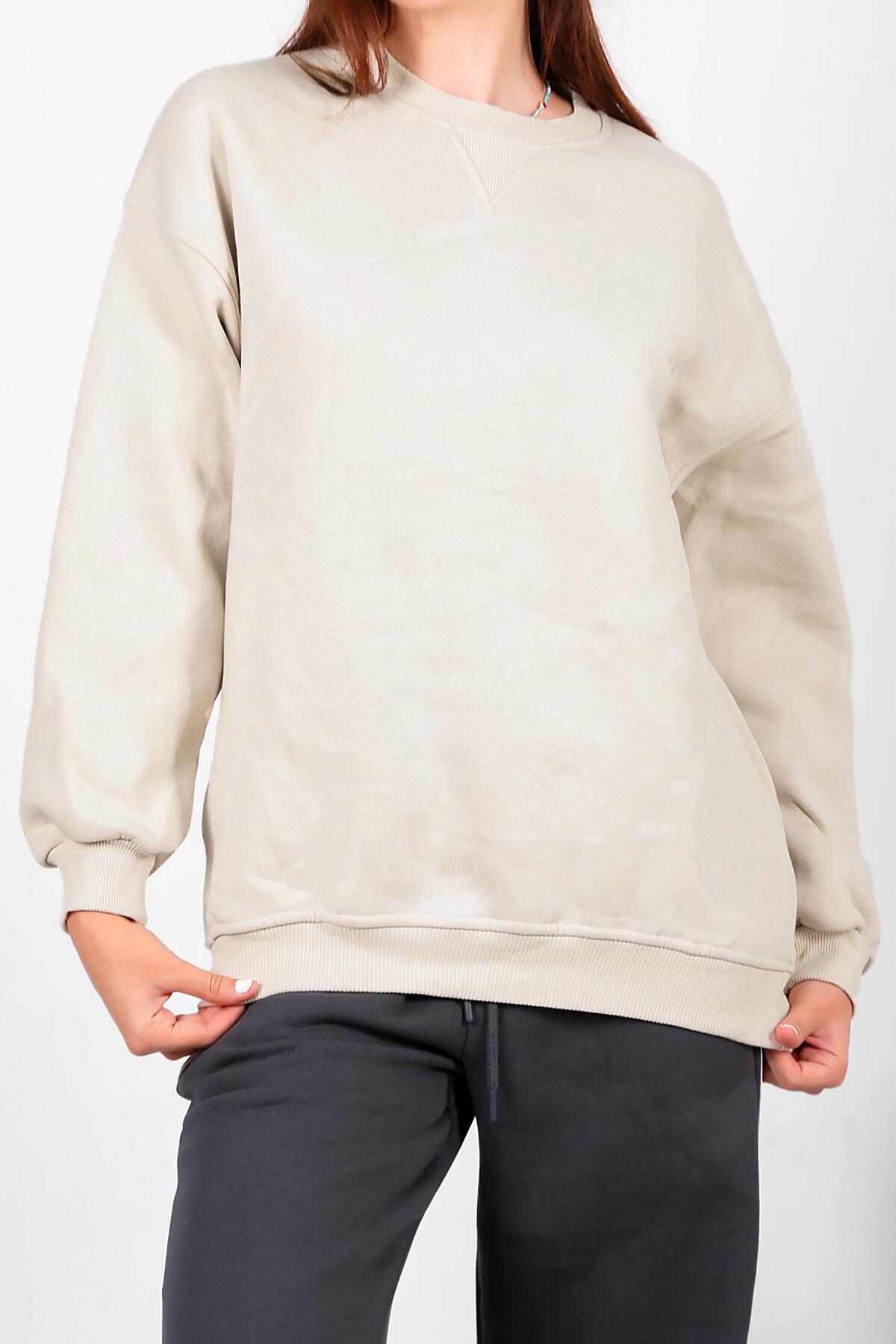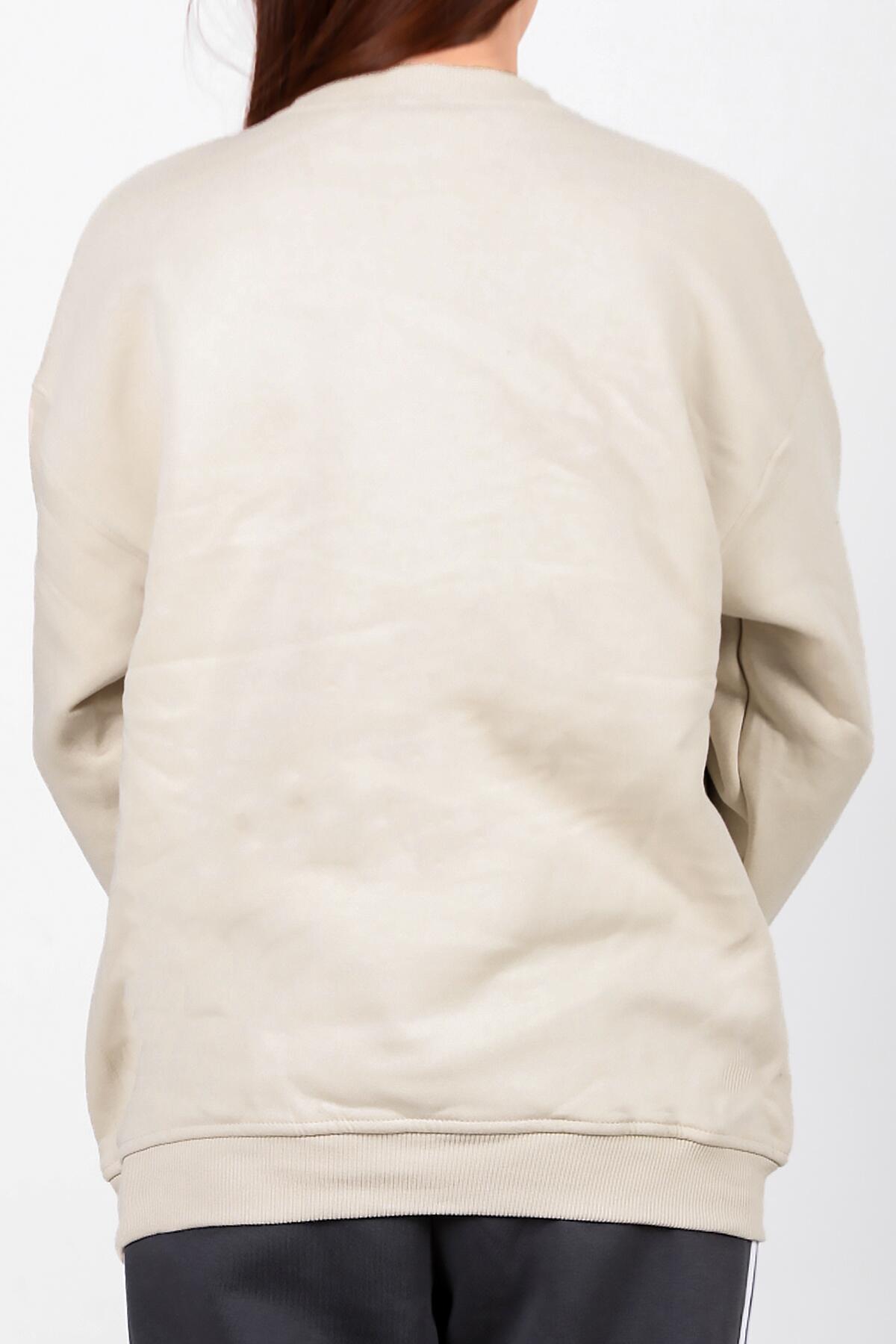 Kadın Üç İplik Sıfır Yaka Sweat Taş