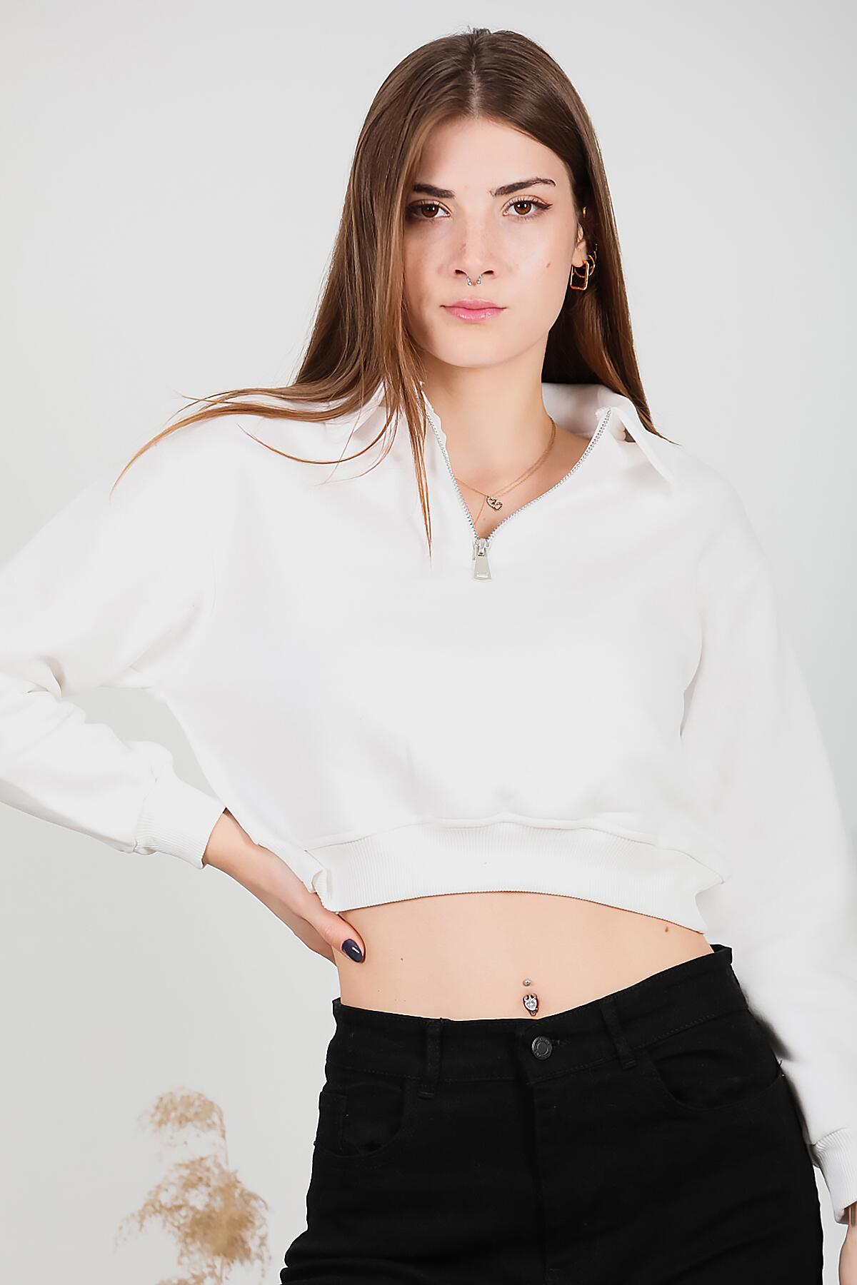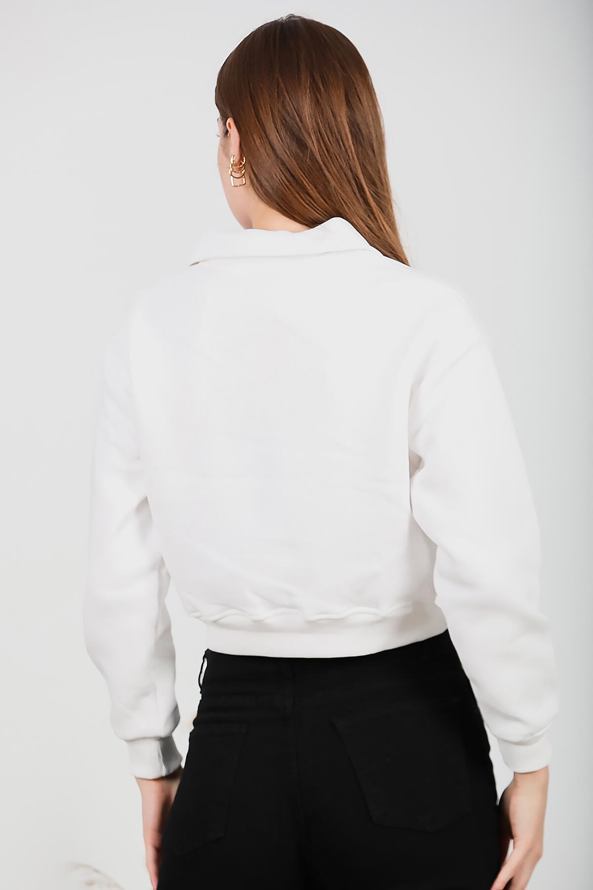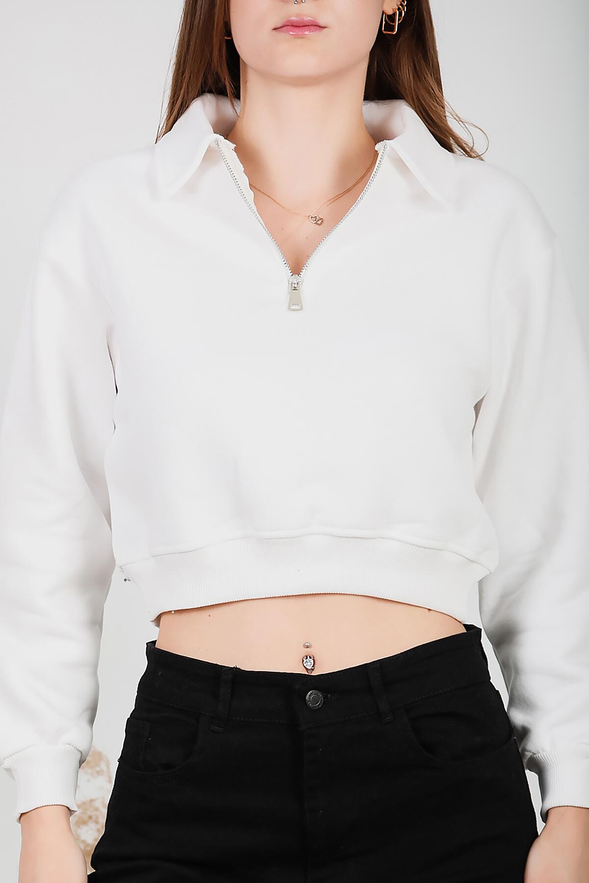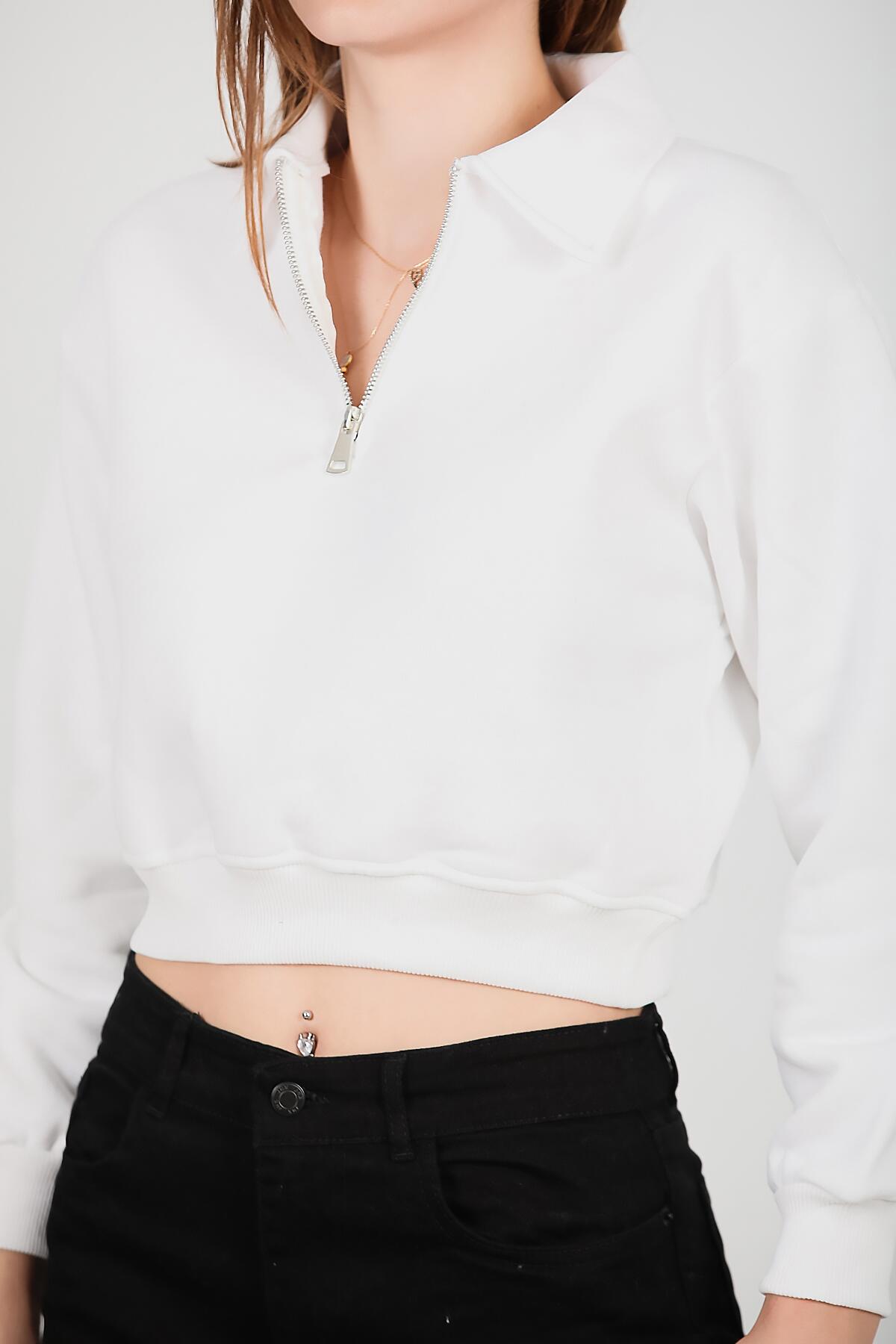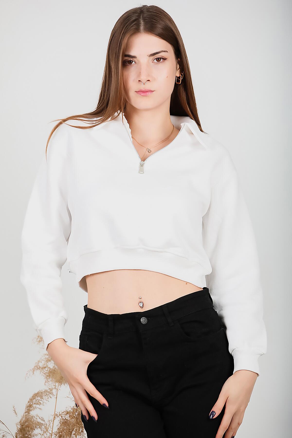 Kadın Yarım Fermuarlı Kadın Sweat Ekru