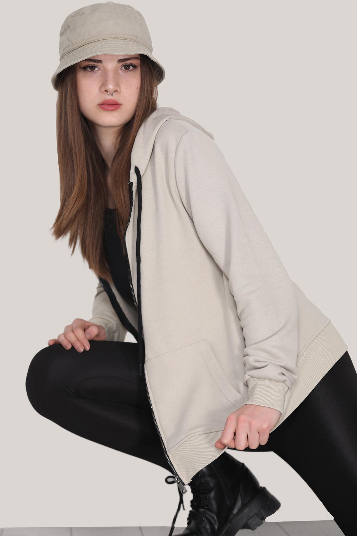 Unisex Fermuarlı Sweat Taş
