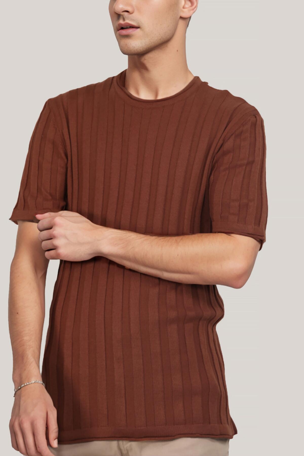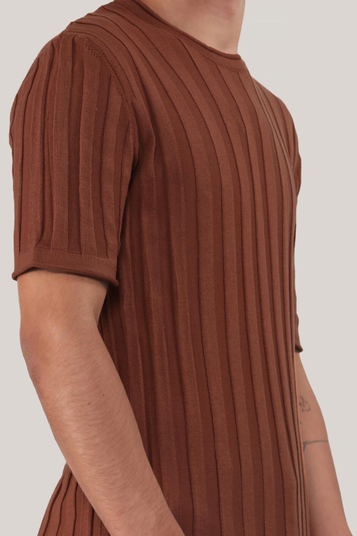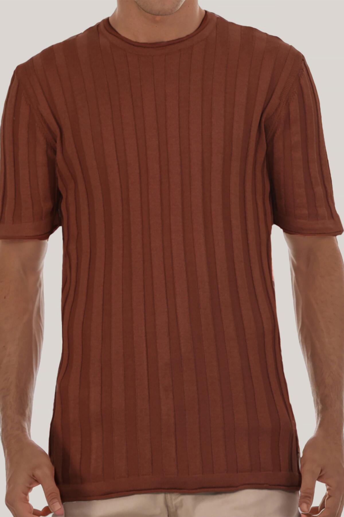 Erkek Bisiklet Yaka Kısa Kol Triko Kiremit
