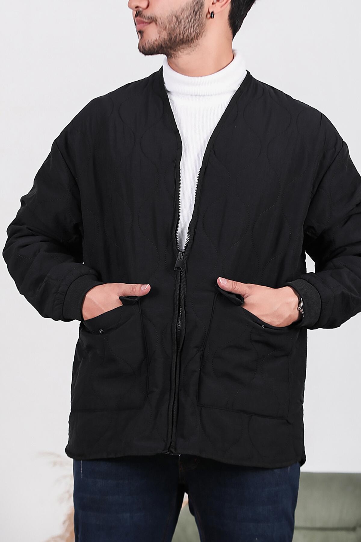 Erkek Kapitone Mont Siyah