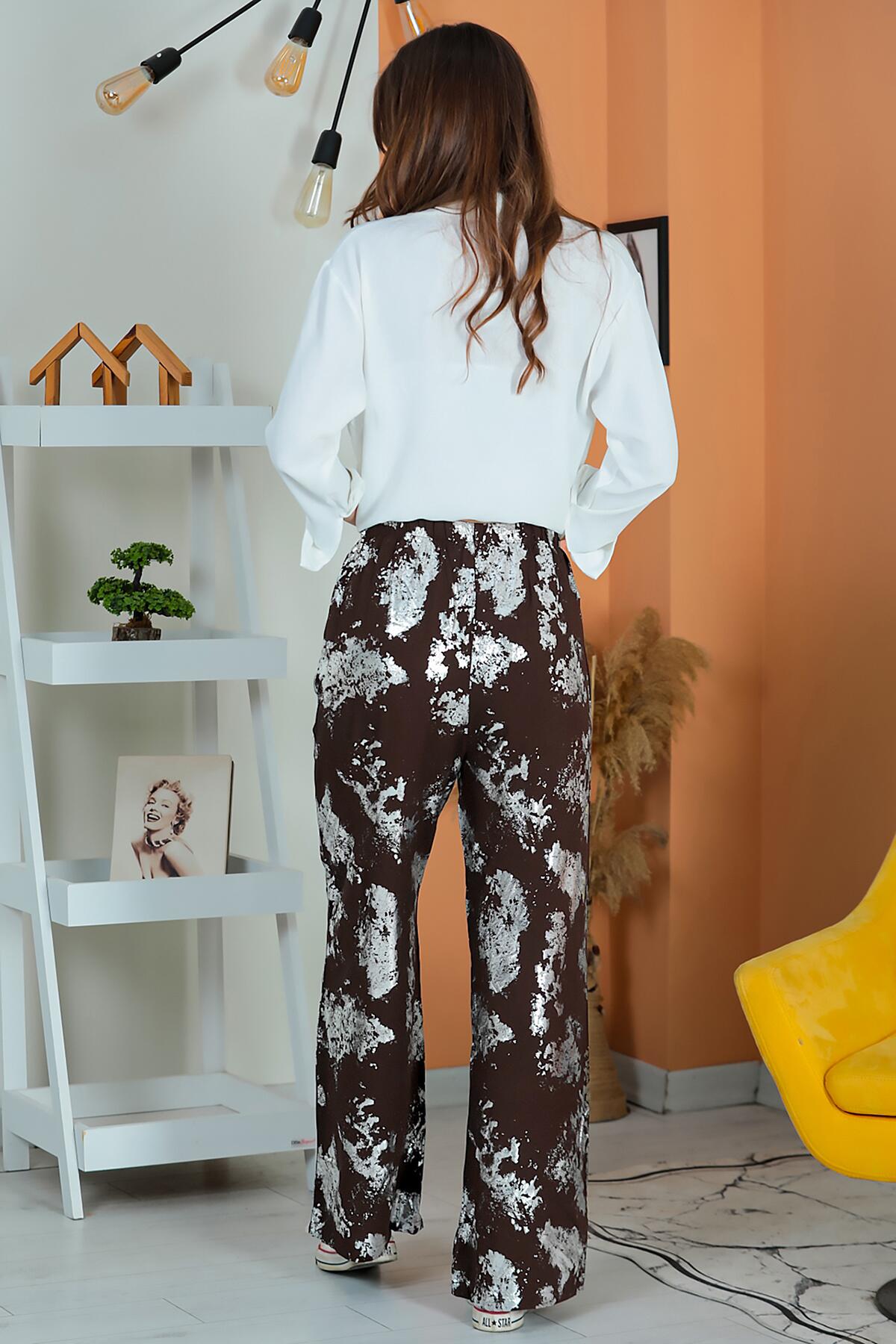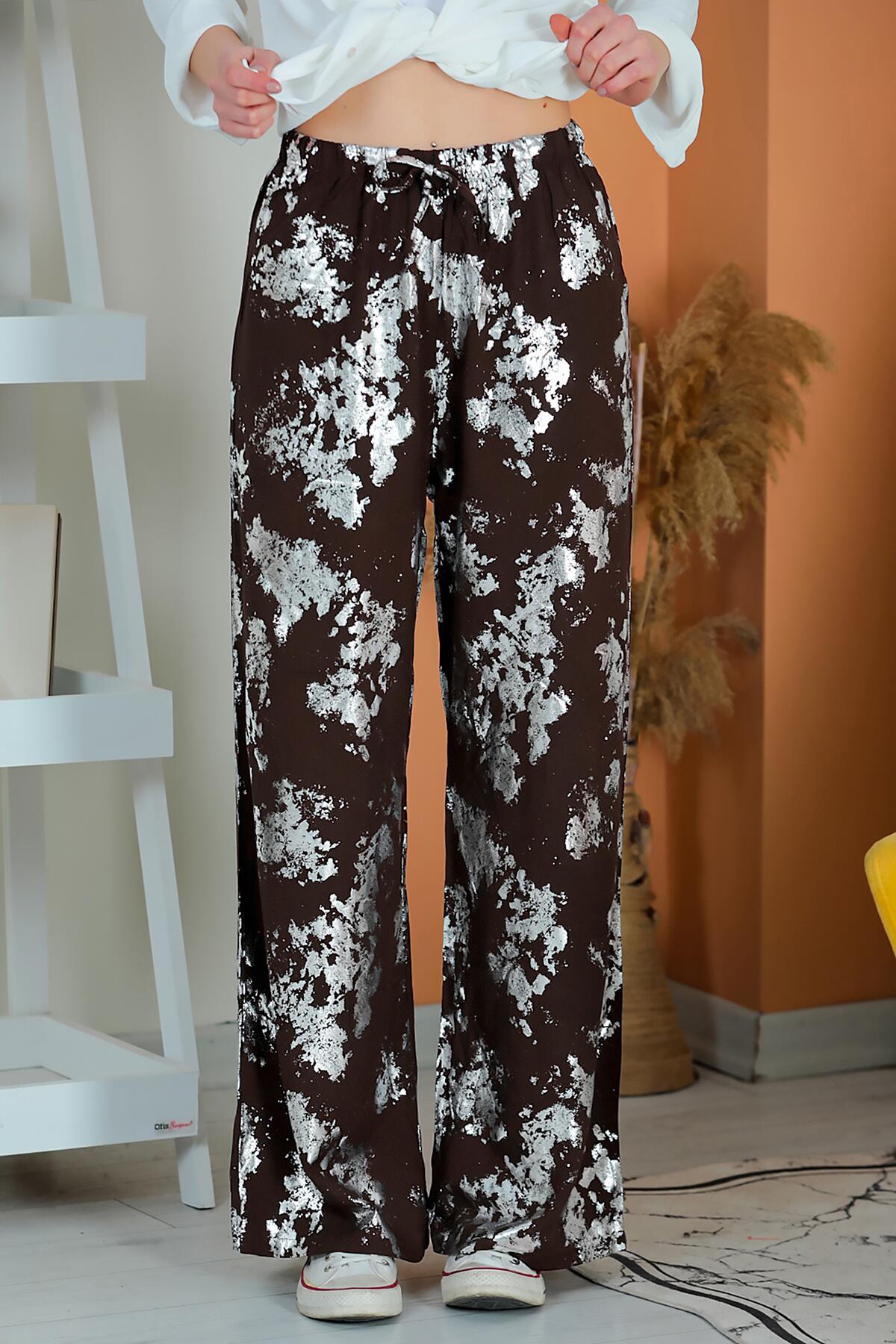 Kadın Bol Paça Pantolon Kahverengi