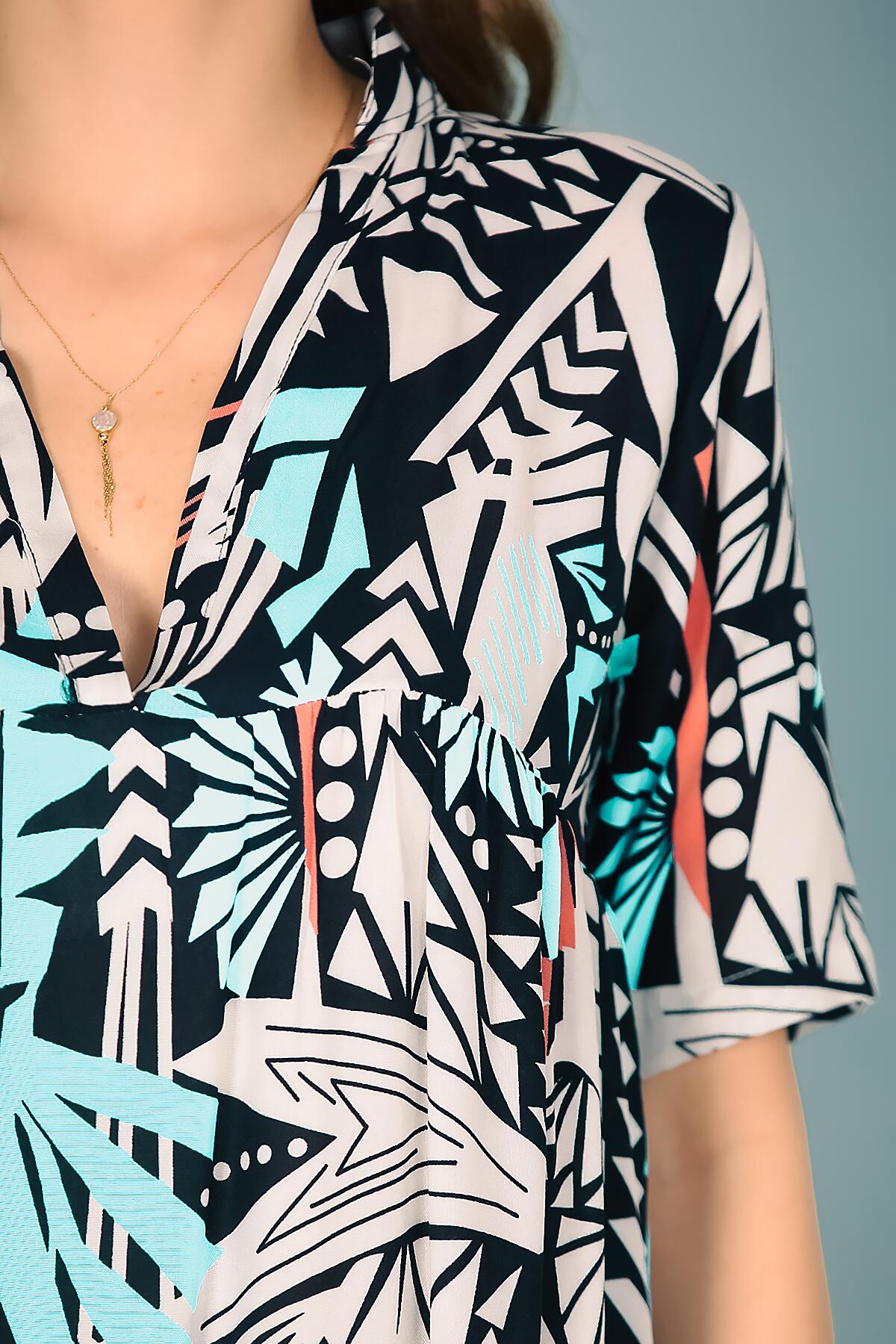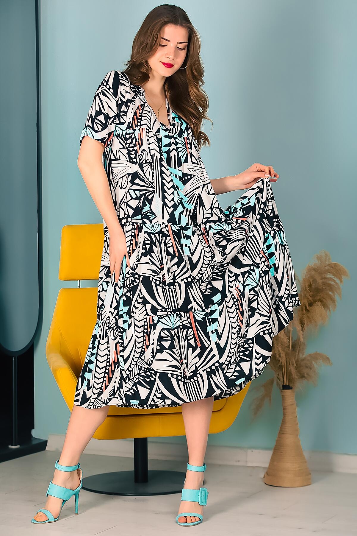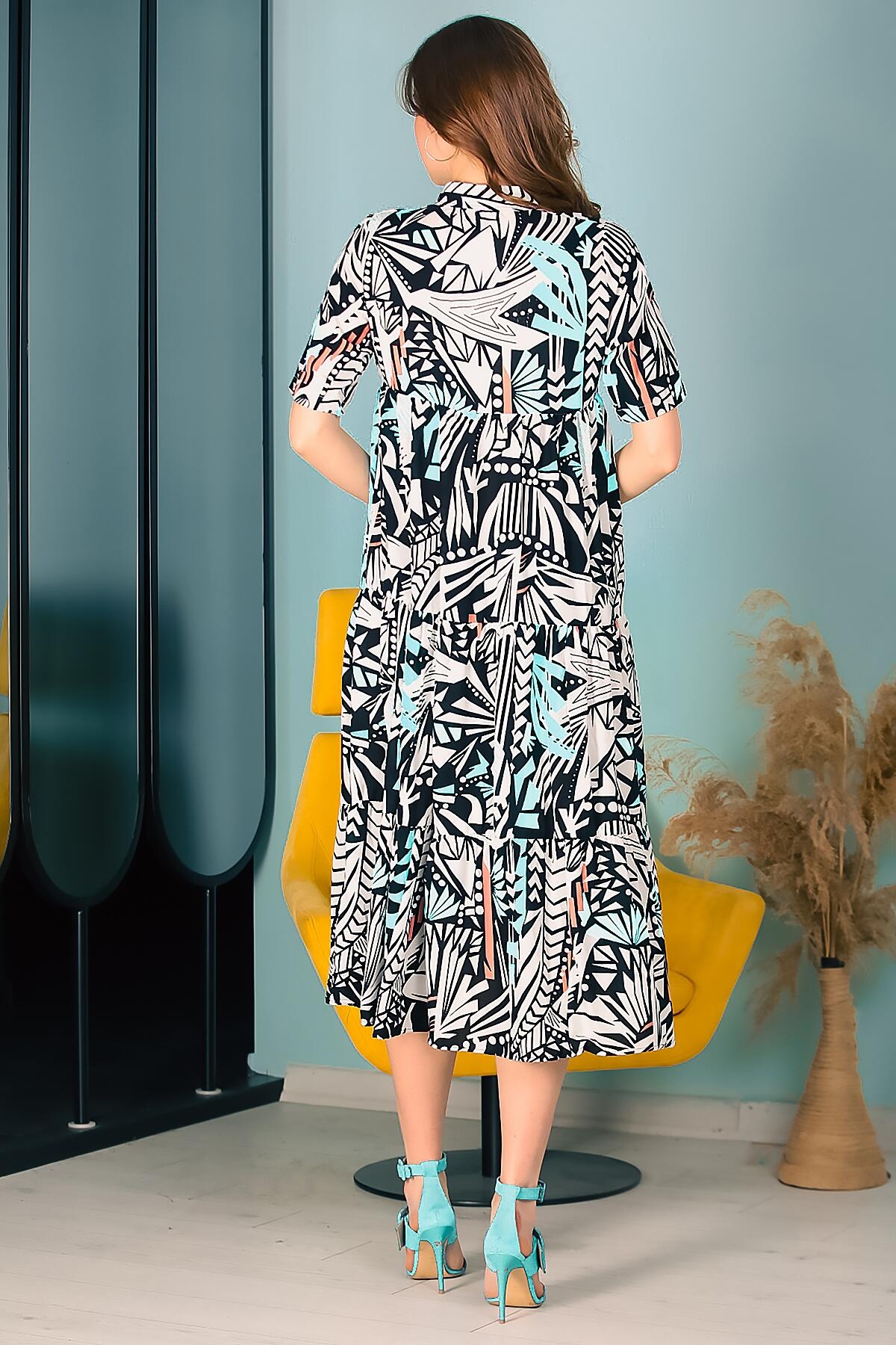 Kadın Kısa Kol Midi Boy Elbise Turkuaz