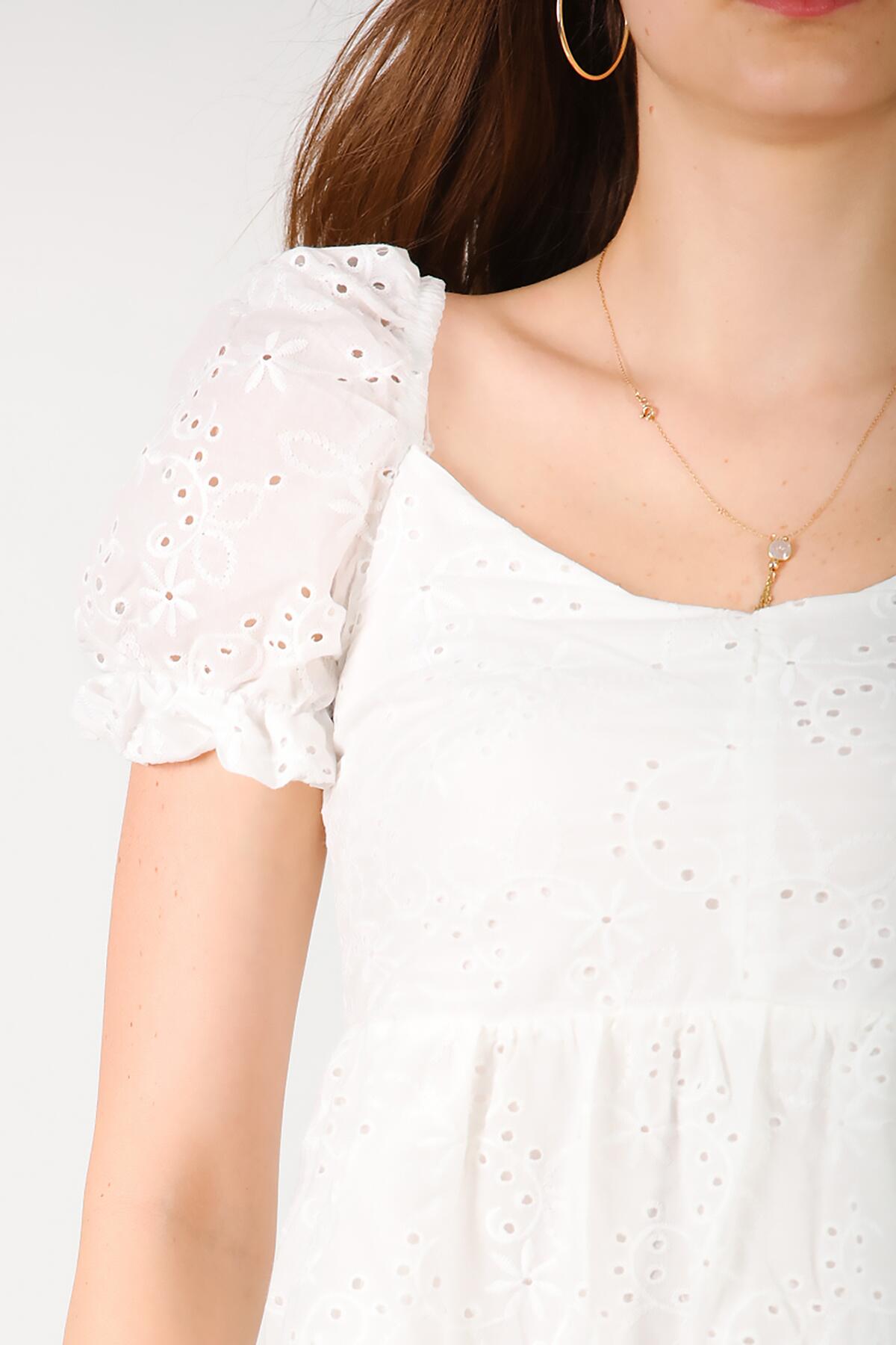 Kadın Önü Büzgülü Güpürlü Elbise Ekru