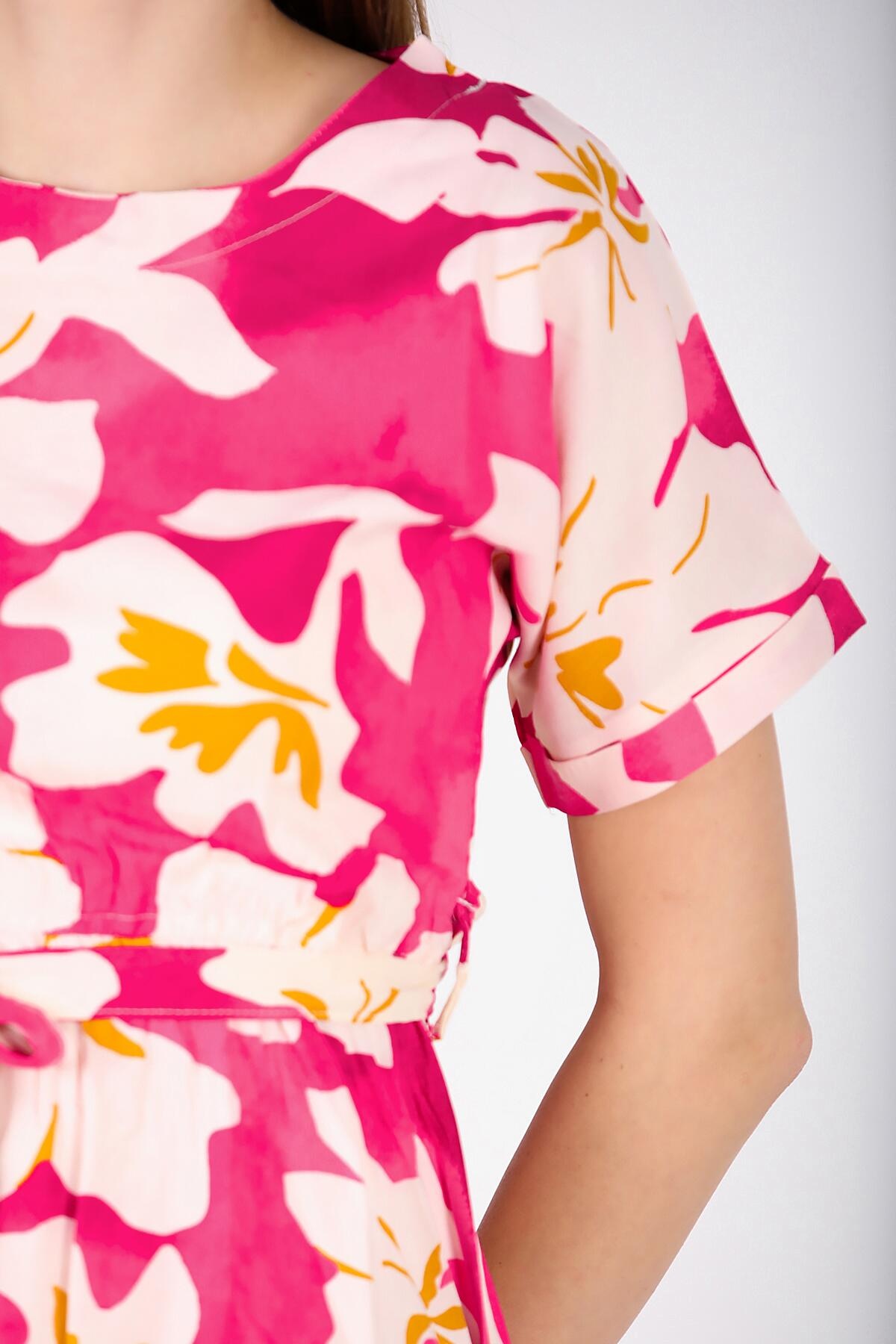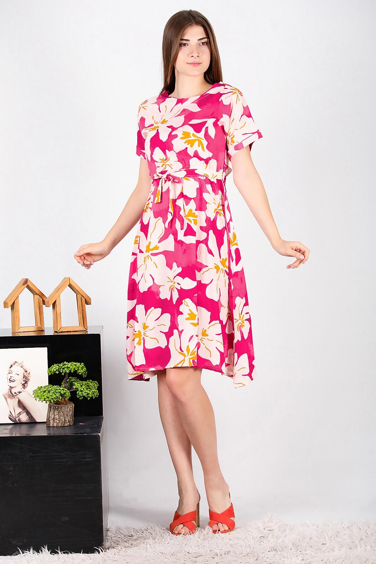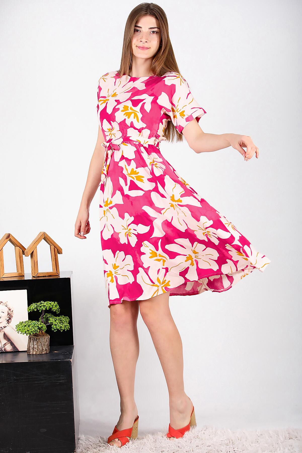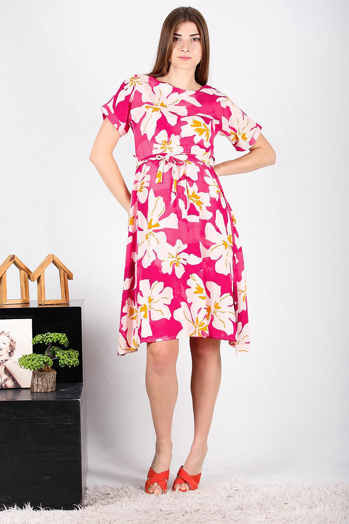 Kadın Viskon Duble Kol Elbise Fuşya