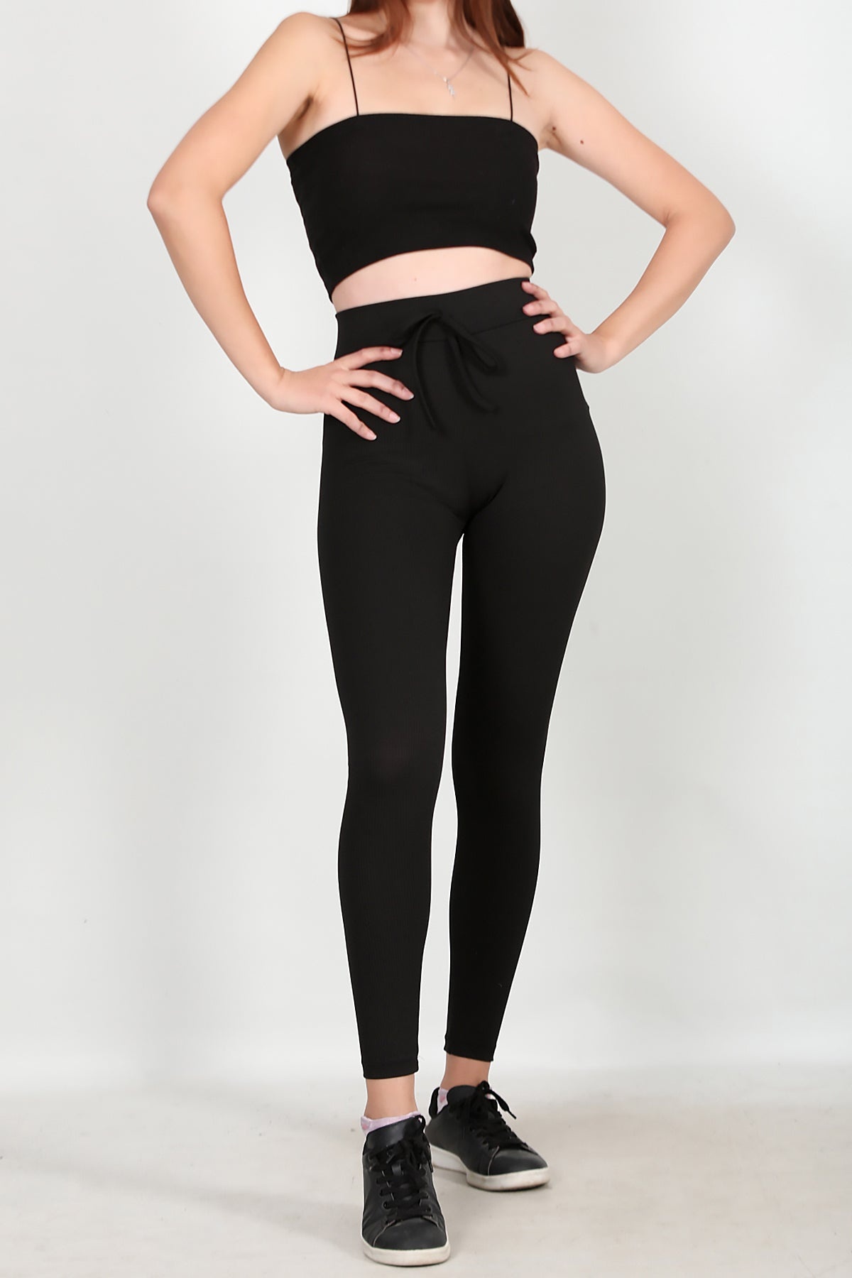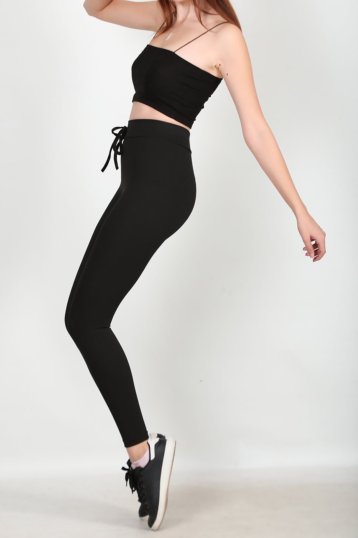 Kadın Fitilli Bağcıklı Tayt Siyah Siyah