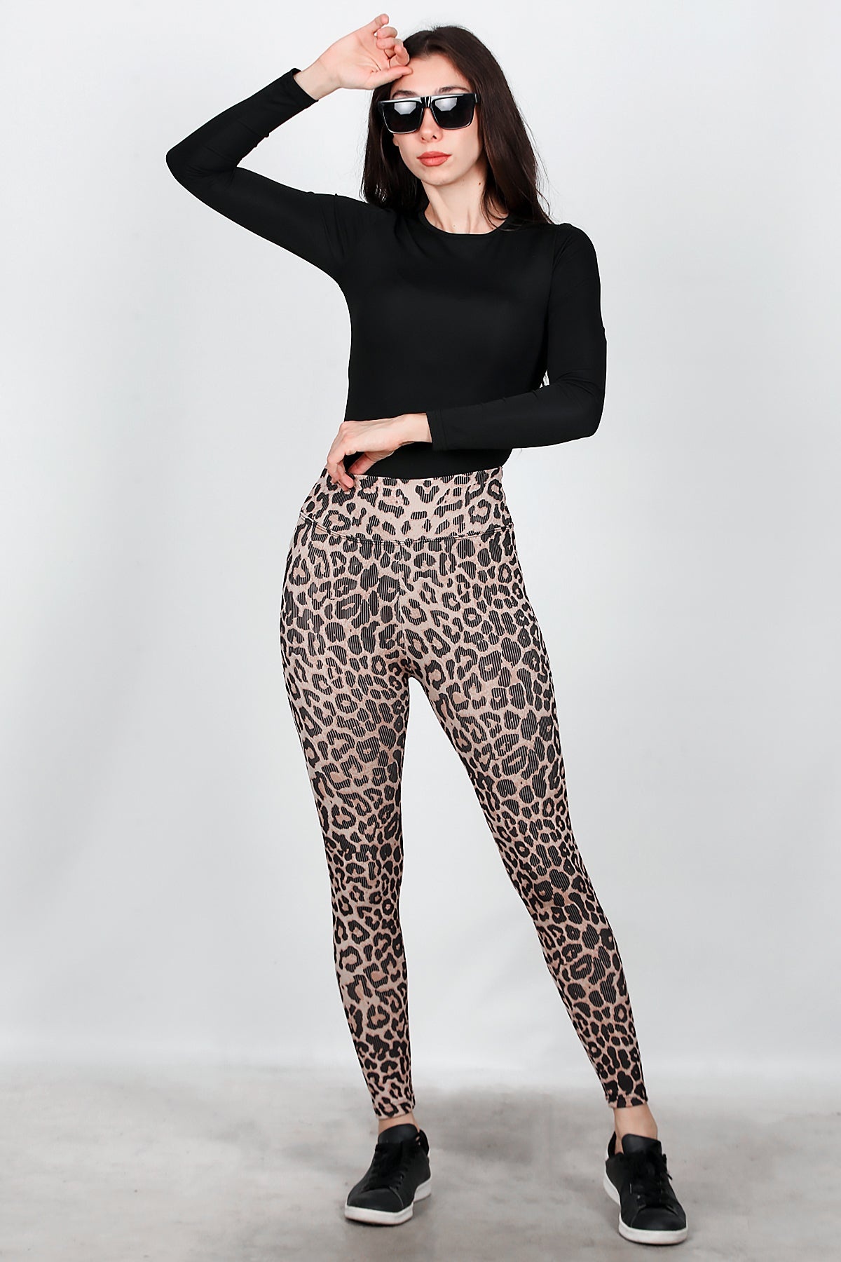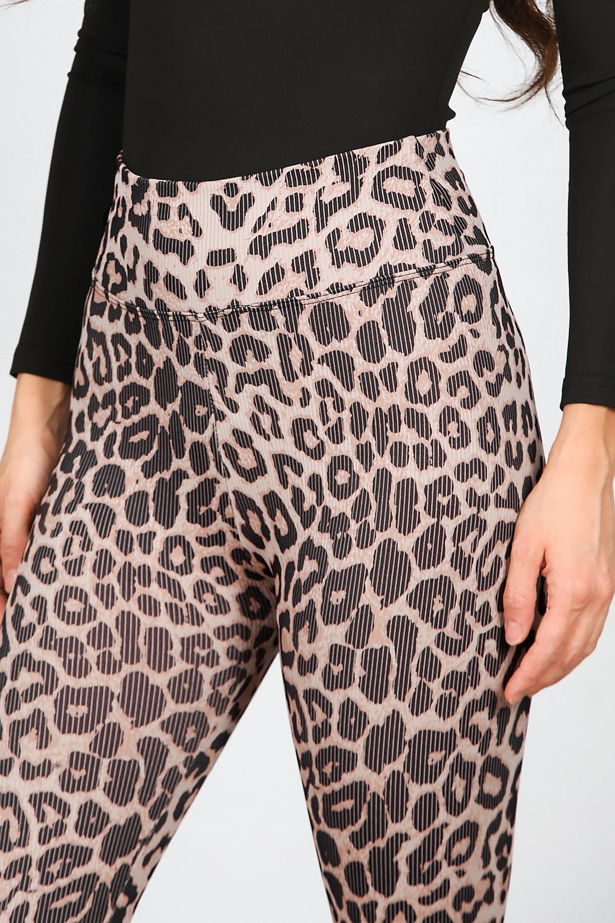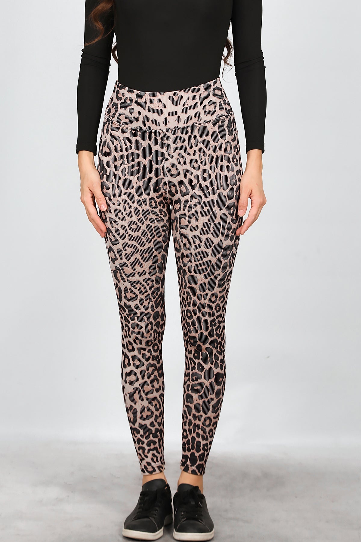 Kadın Fitilli Leopar Desenli Tayt Krem