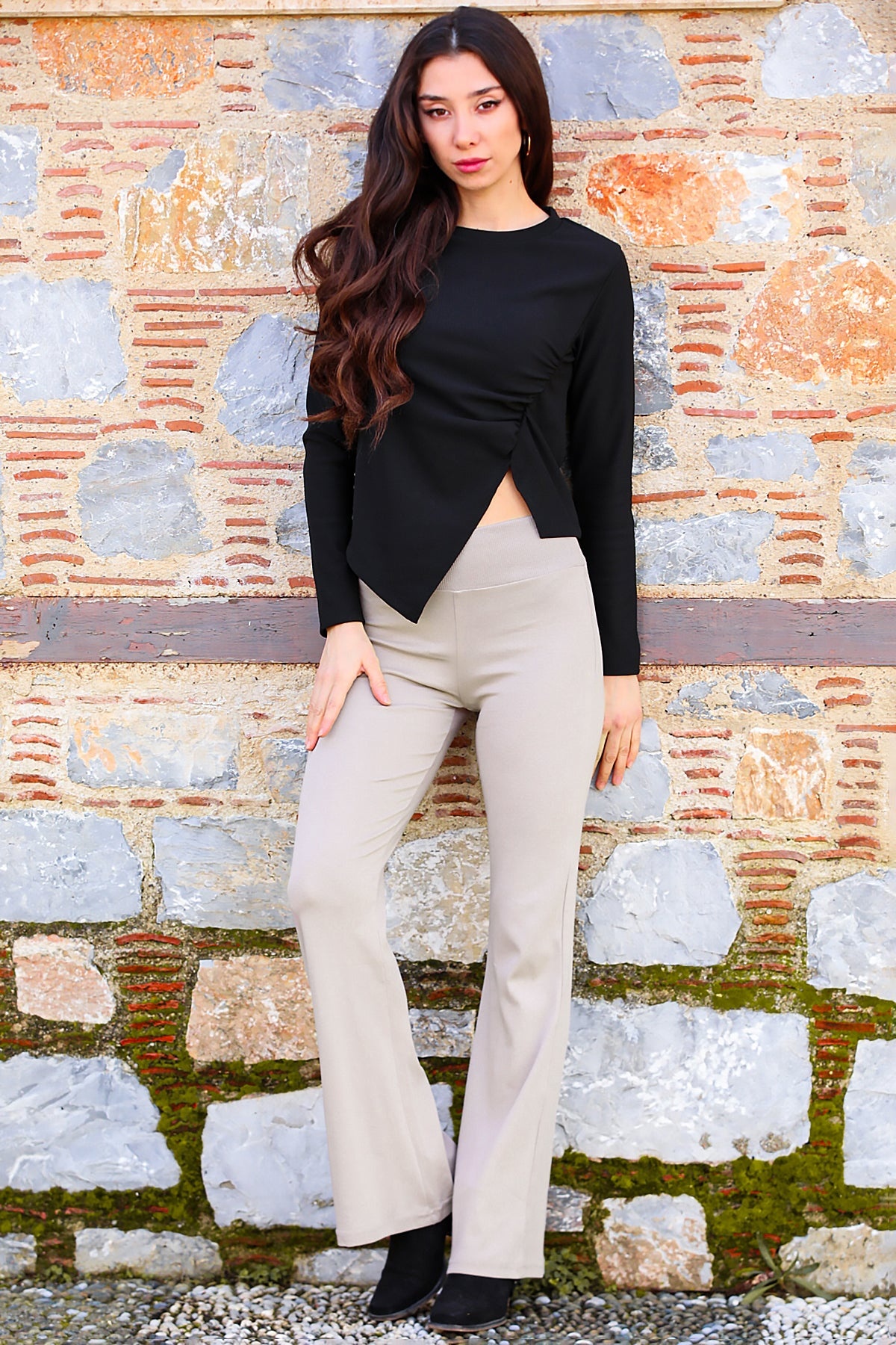 Kadın İspanyol Paça Tayt Vizon