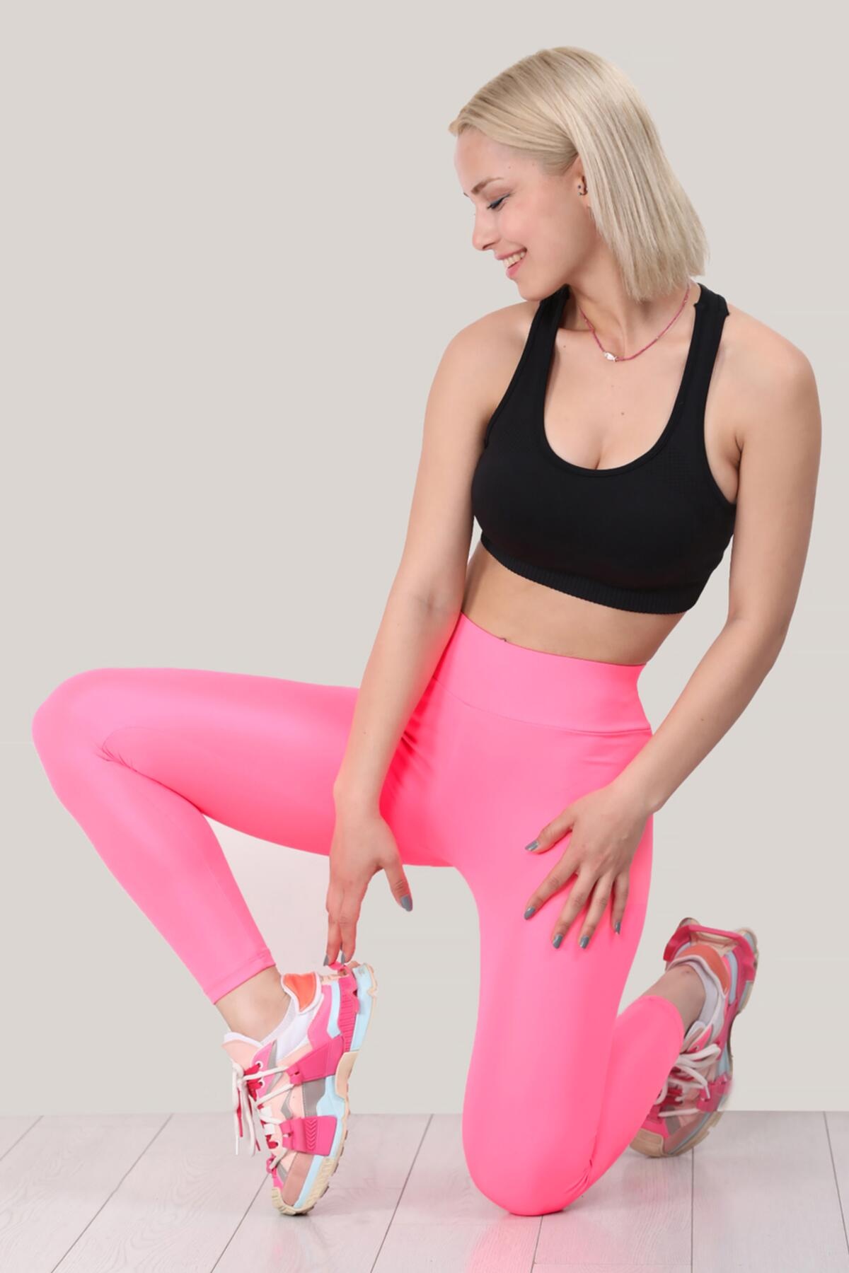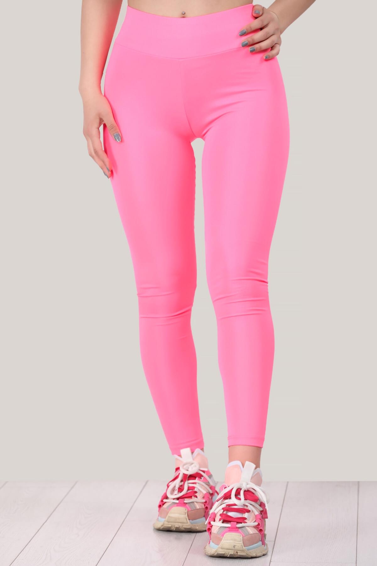 Kadın Parlak Tayt Pembe