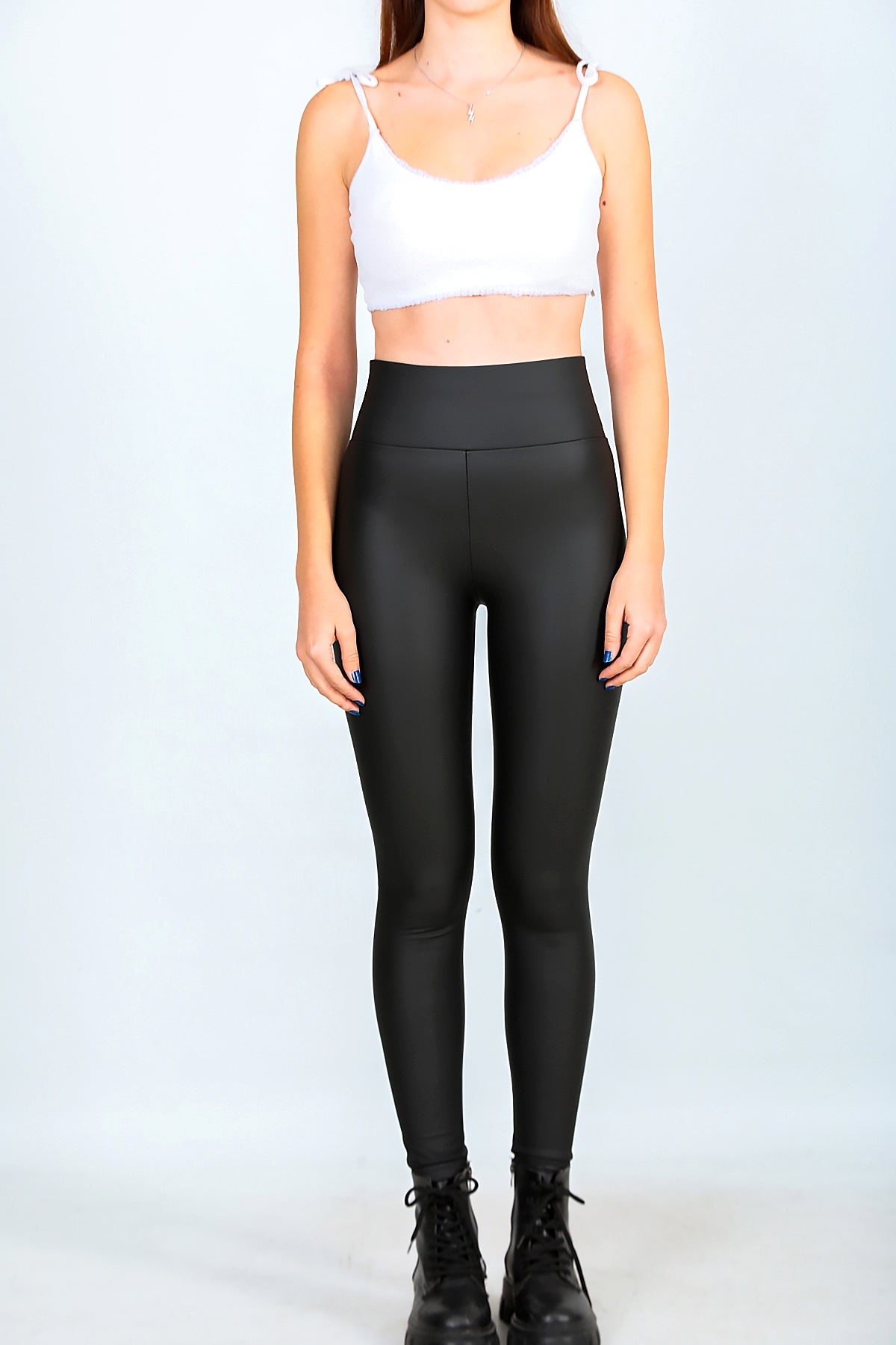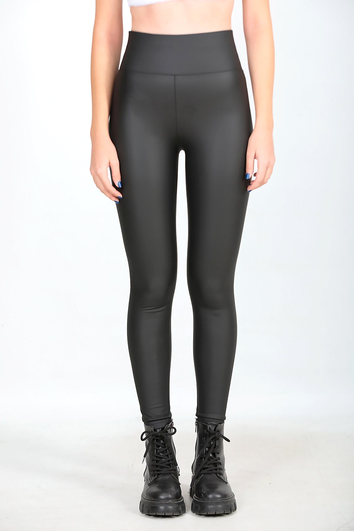 Kadın Yüksek Bel Deri Tayt Siyah Siyah